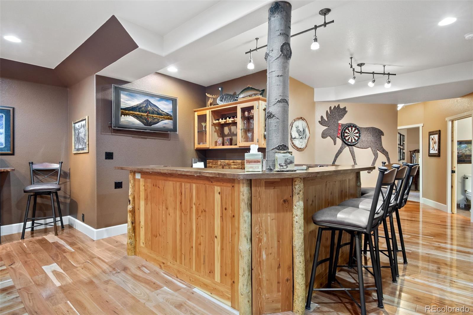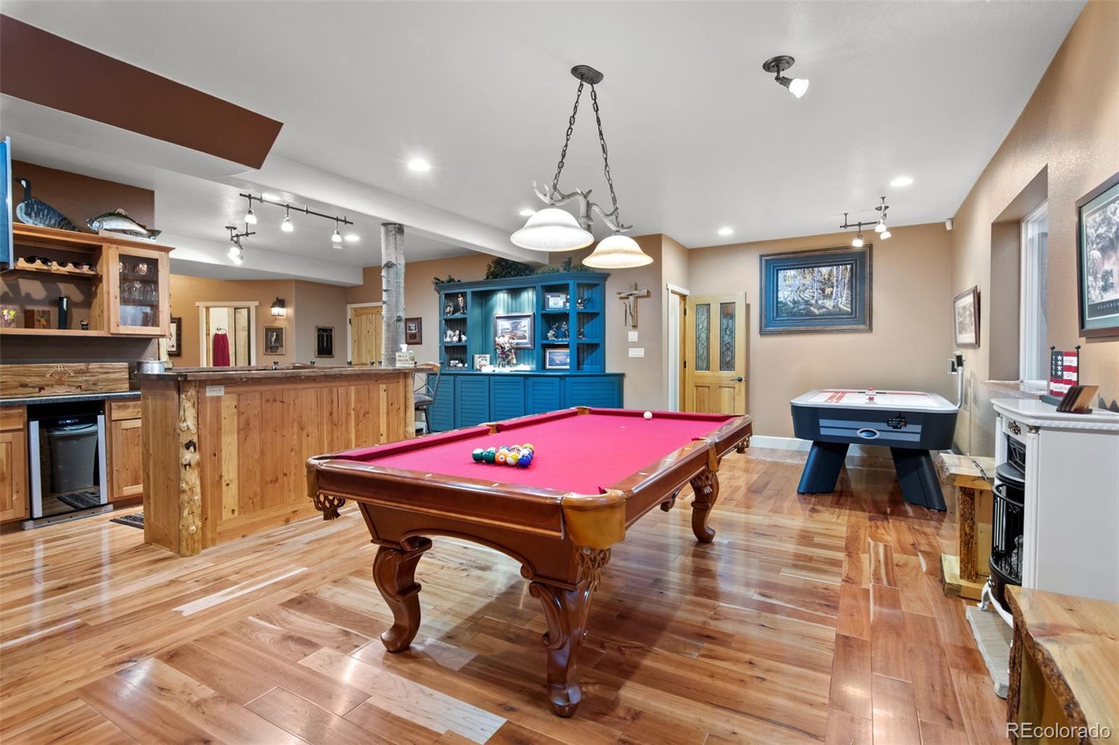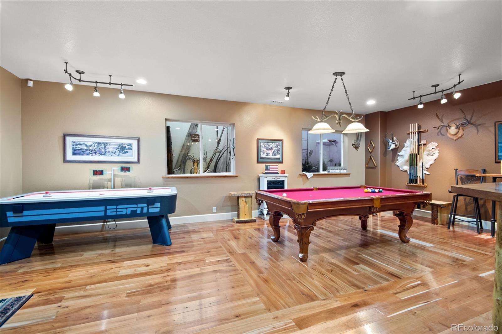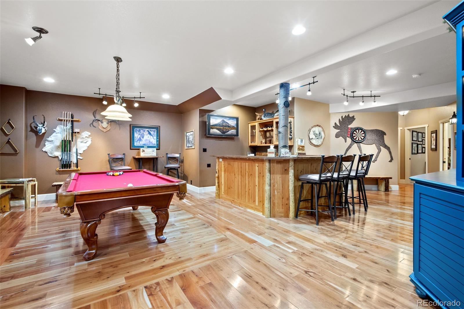Welcome to 6160 Virgil St. in Arvada, a stunning ranch-style home perfectly positioned near the base of North Table Mountain in Golden. This beautifully maintained 3 bed, 3 bath, 3-car garage home features the wide-open floor plan Denver Metro buyers search for, offering high ceilings, great natural light, and seamless flow throughout. The massive kitchen is the centerpiece of the main level, showcasing granite countertops, an oversized island, and extensive cabinetry—ideal for entertaining or everyday living. The private primary suite includes a luxurious 5-piece bathroom with a classic clawfoot tub and a spacious walk-in shower. Additional bedrooms are thoughtfully placed for privacy, with convenient main-level laundry. The finished basement is done to the nines, offering a full bar and large gaming/rec area designed with the warm, inviting feel of a Colorado mountain cabin—perfect for hosting, relaxing, or game nights. A non-conforming bedroom (no closet) adds excellent guest, office, or flex-space options. Enjoy Colorado living with quick access to hiking, biking, parks, open space, and the trail systems connecting Arvada and Golden. Located near top-rated schools, restaurants, shopping, light rail, and major commuter routes to Denver, Boulder, and the foothills. This home blends comfort, location, and true mountain-adjacent lifestyle.