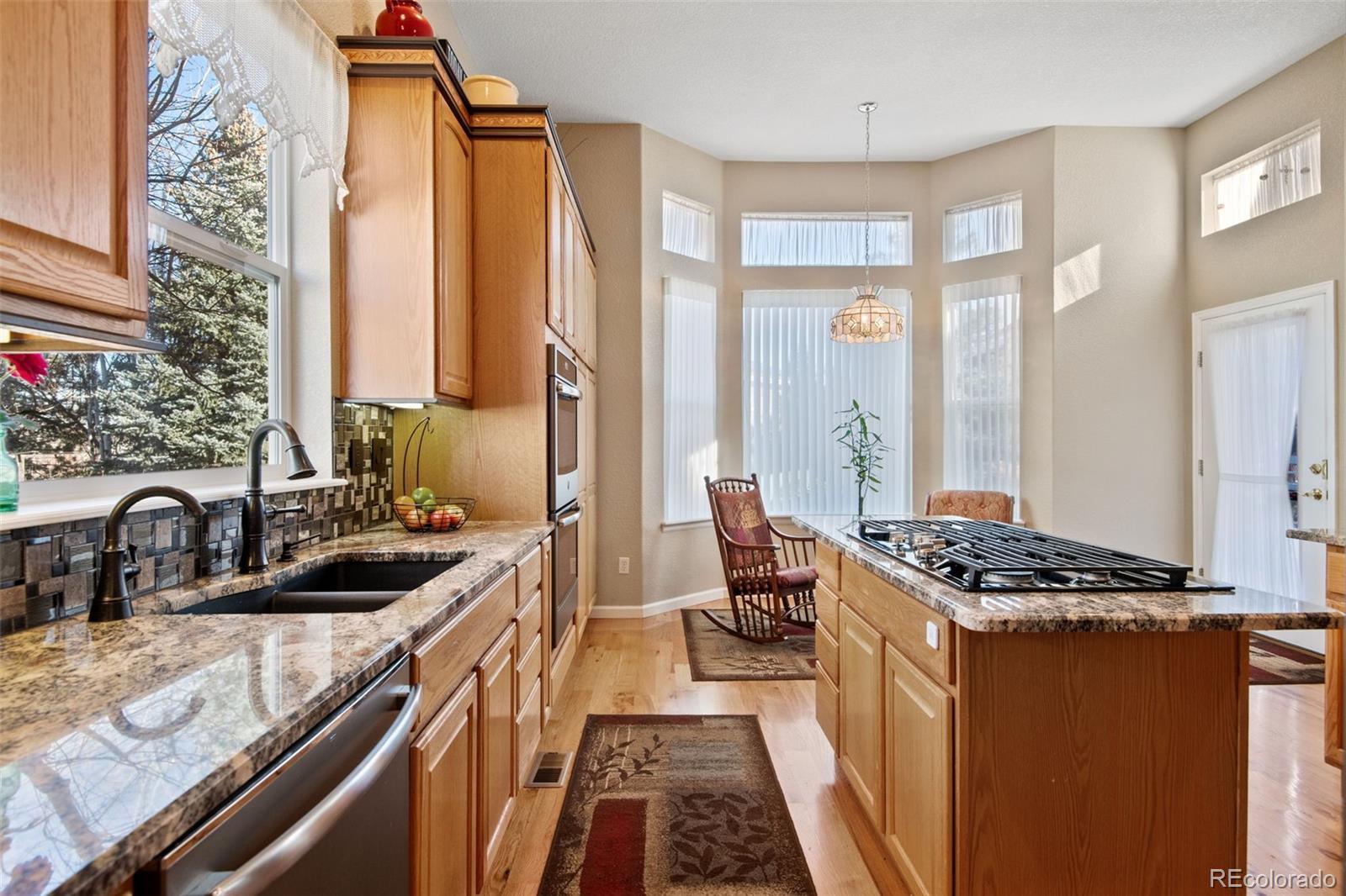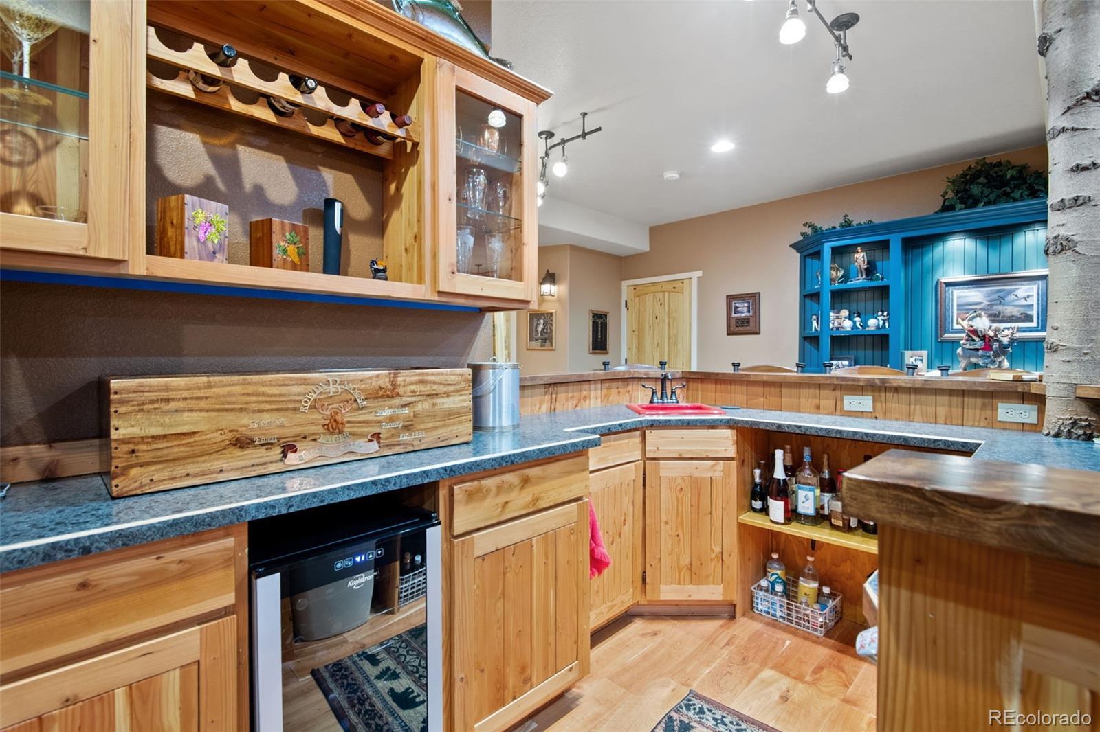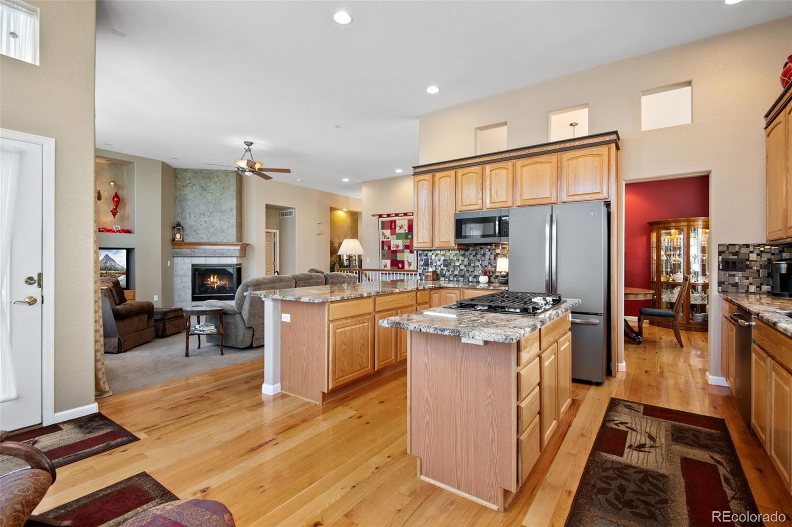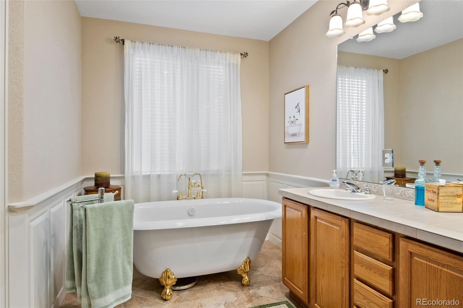Welcome to 6160 Virgil St. in Arvada, a stunning ranch-style home perfectly positioned near the base of North Table Mountain in Golden. This beautifully maintained 3 bed, 3 bath, 3-car garage home features the wide-open floor plan Denver Metro buyers search for, offering high ceilings, great natural light, and seamless flow throughout. The massive kitchen is the centerpiece of the main level, showcasing granite countertops, an oversized island, and extensive cabinetry—ideal for entertaining or everyday living. The private primary suite includes a luxurious 5-piece bathroom with a classic clawfoot tub and a spacious walk-in shower. Additional bedrooms are thoughtfully placed for privacy, with convenient main-level laundry. The finished basement is done to the nines, offering a full bar and large gaming/rec area designed with the warm, inviting feel of a Colorado mountain cabin—perfect for hosting, relaxing, or game nights. A non-conforming bedroom (no closet) adds excellent guest, office, or flex-space options. Enjoy Colorado living with quick access to hiking, biking, parks, open space, and the trail systems connecting Arvada and Golden. Located near top-rated schools, restaurants, shopping, light rail, and major commuter routes to Denver, Boulder, and the foothills. This home blends comfort, location, and true mountain-adjacent lifestyle.