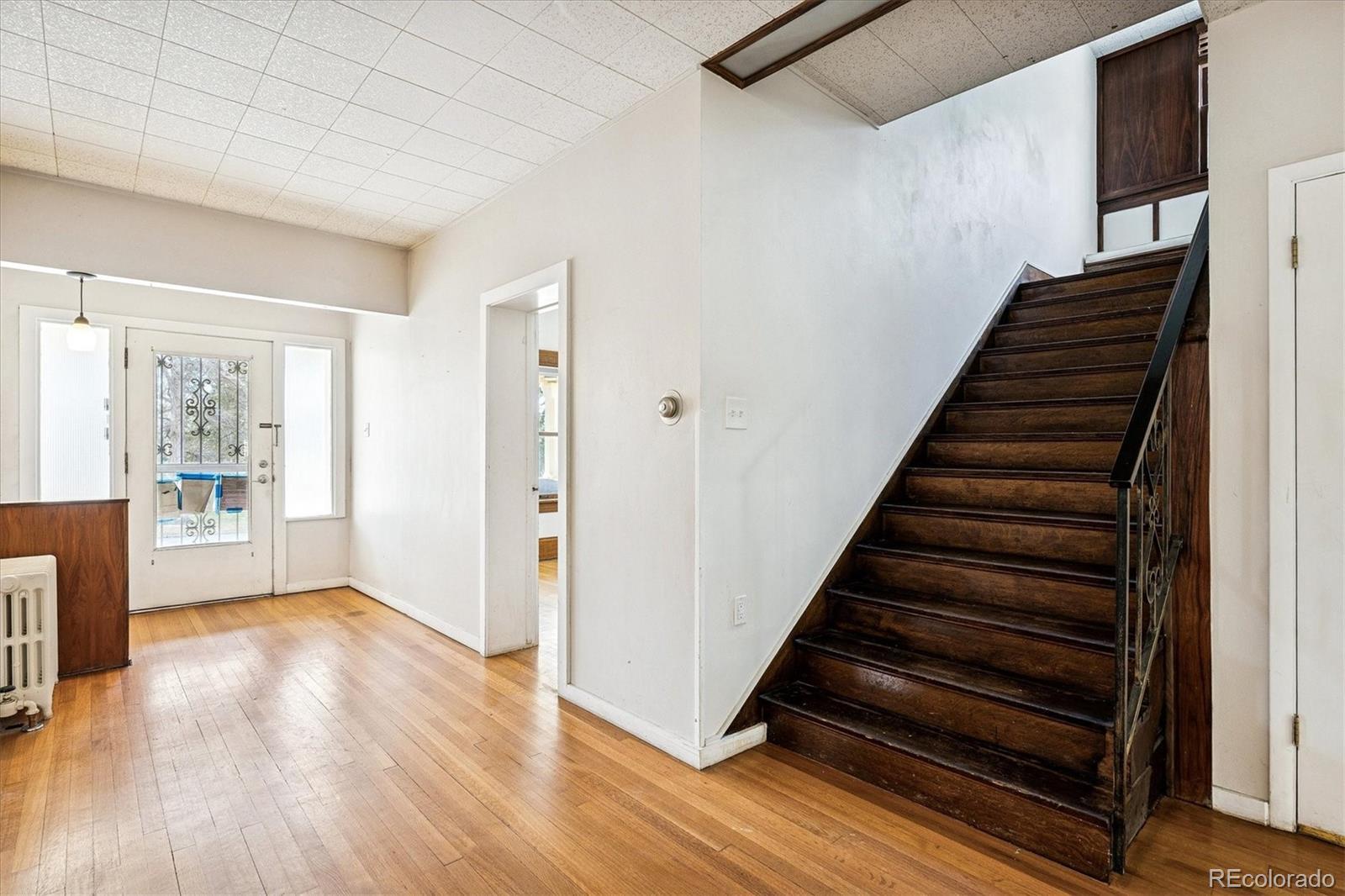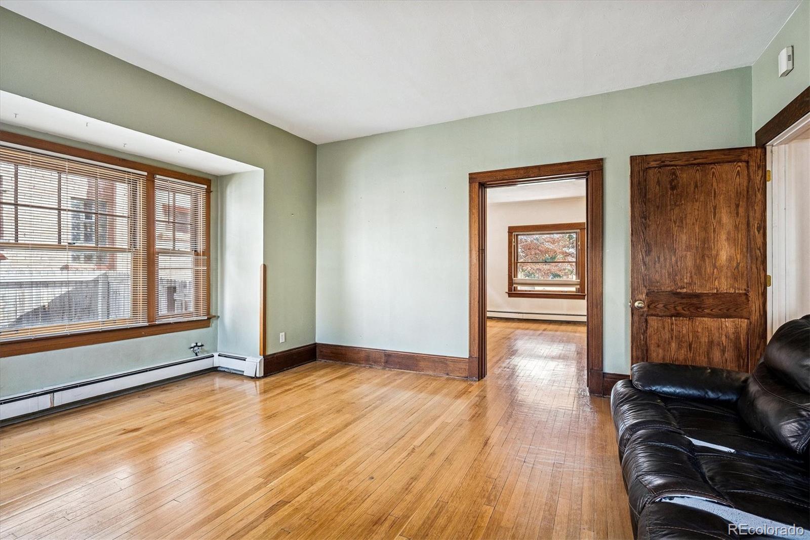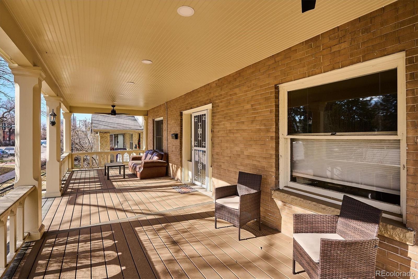 4033 E 17th. Ave Pkwy is a true 1911 American Foursquare style mansion in Park Hill. Located just steps from City Park, this unique property boasts old-world charm such as rich solid wood finishes, tall ceilings, and large spaces. This classic Denver Square brings big curb appeal thanks to its newly rebuilt, massive front porch - perfect for summer days. This home features over $200k in intelligent upgrades including a class 4 roof, updated electrical, concrete, and french drain among others. This home was previously used as a triplex and features a kitchen on each level, along with additional access points for each floor via the walk-out basement and upper balcony staircase. Similar homes have sold for $2.3-2.5M after remodel. Inside you'll enjoy a spacious main level with unique features such as solid wood pocket sliding doors, original hardwoods, and large living and dining room areas with tall ceilings; potential to open for a modern feel. The main level offers a large bedroom with en-suite bath, which could be used as an office, guest room or even a main level primary. Upstairs you'll find a large landing area, three bedrooms, a full bath, and a secondary kitchen and living room area. Buyers looking for a custom finish may find converting the upstairs kitchen/living area into a primary suite to be highest and best use, which would offer a 4 bedroom second story. There is a large unfinished attic located above the second floor. Downstairs the basement offers a a third kitchen, a full bath, laundry room, non-conforming bedroom and a living room which could also be used as a bedroom. The basement can be accessed both from the interior and walk-out exterior. The backyard offers a private patio area and a detached 4 car garage - very unique for Park Hill. This home could be great for an investor or an owner-occupant looking to build equity in one of the hottest areas in Denver.