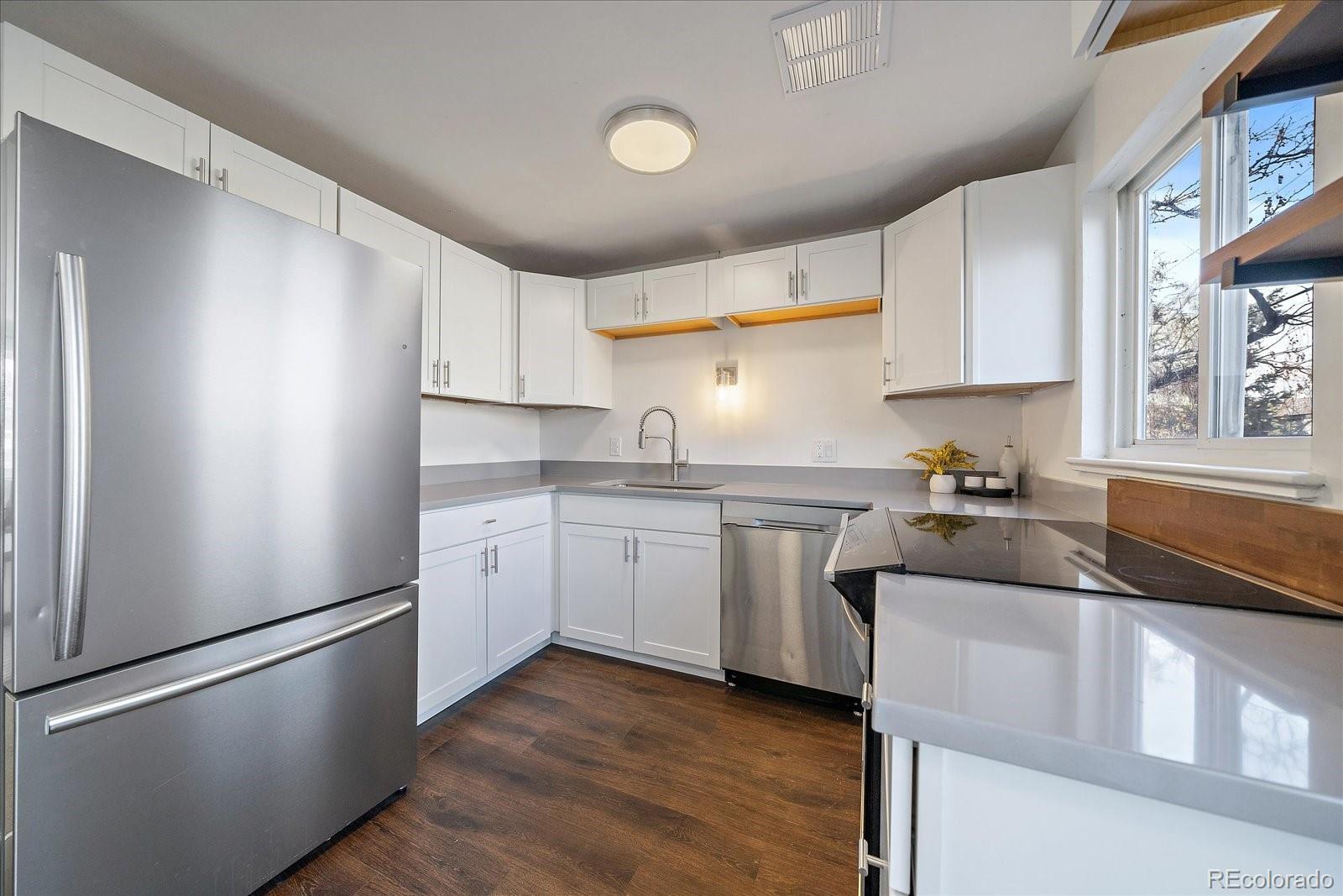 Modern Living Meets Ideal Location Along Babbling Creek. Discover a serene yet connected lifestyle in this fully renovated townhome community, nestled in a peaceful cul-de-sac with the soothing sounds of a small creek right outside your window. These townhomes feature private entrances, fenced backyards, 2 reserved parking spaces, and stylish updates, including durable vinyl flooring, fresh paint, white cabinetry, stainless steel appliances, quartz countertops, and custom backsplashes. The upper level offers a spacious primary bedroom with dual closets, a guest bedroom, and a modern bath, while the fully finished basement adds versatility as a home office, rec room, or nonconforming bedroom, complete with a powder bath, stackable laundry, and storage. Ideally located near Applewood, with easy access to major highways, downtown Denver, and weekend mountain getaways, this community also offers walking distance to Starbucks, restaurants, grocery stores, and plenty of options for an active lifestyle. Modern convenience, natural beauty, and a prime location—your dream home awaits! HOA includes heat!