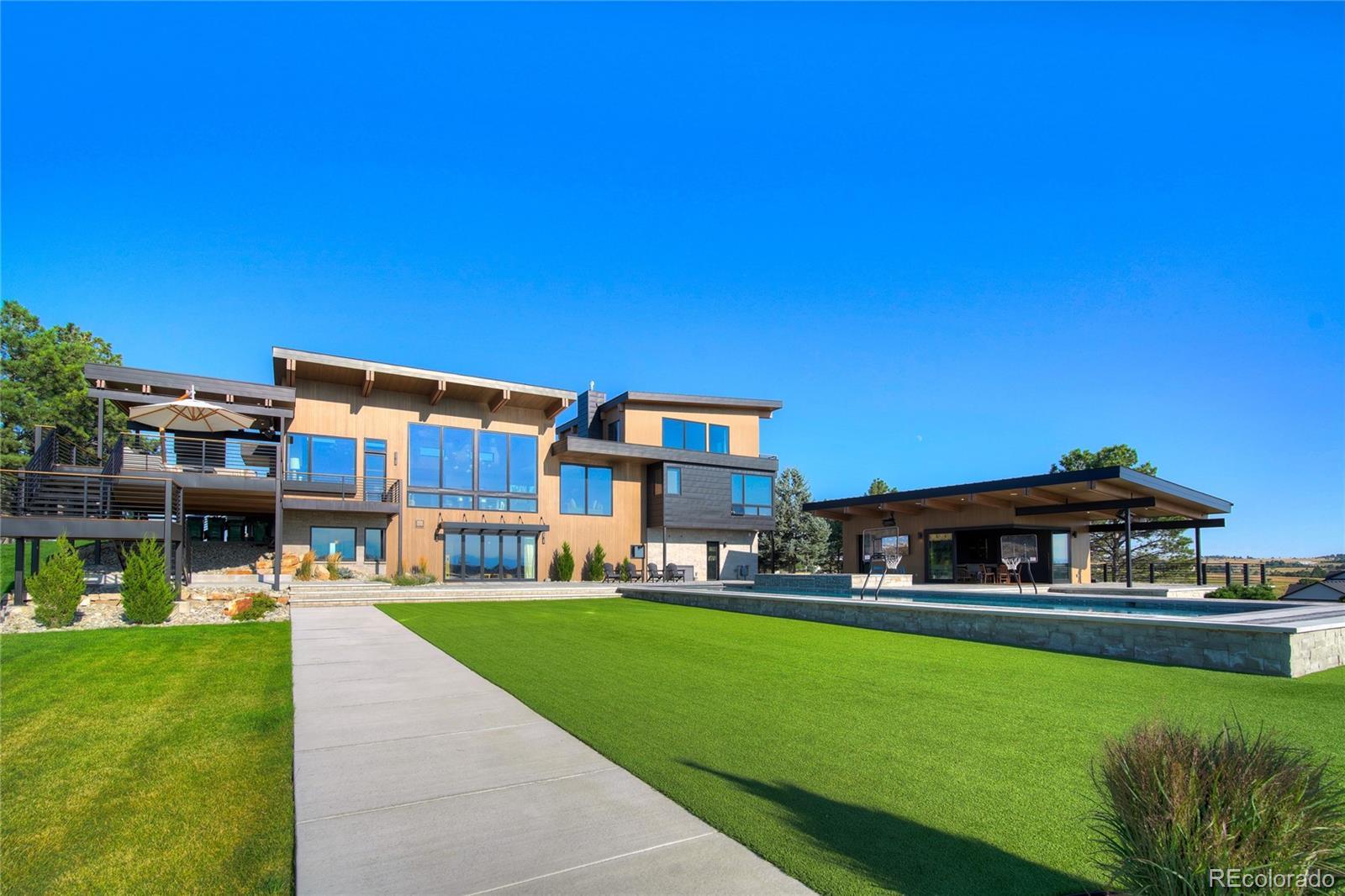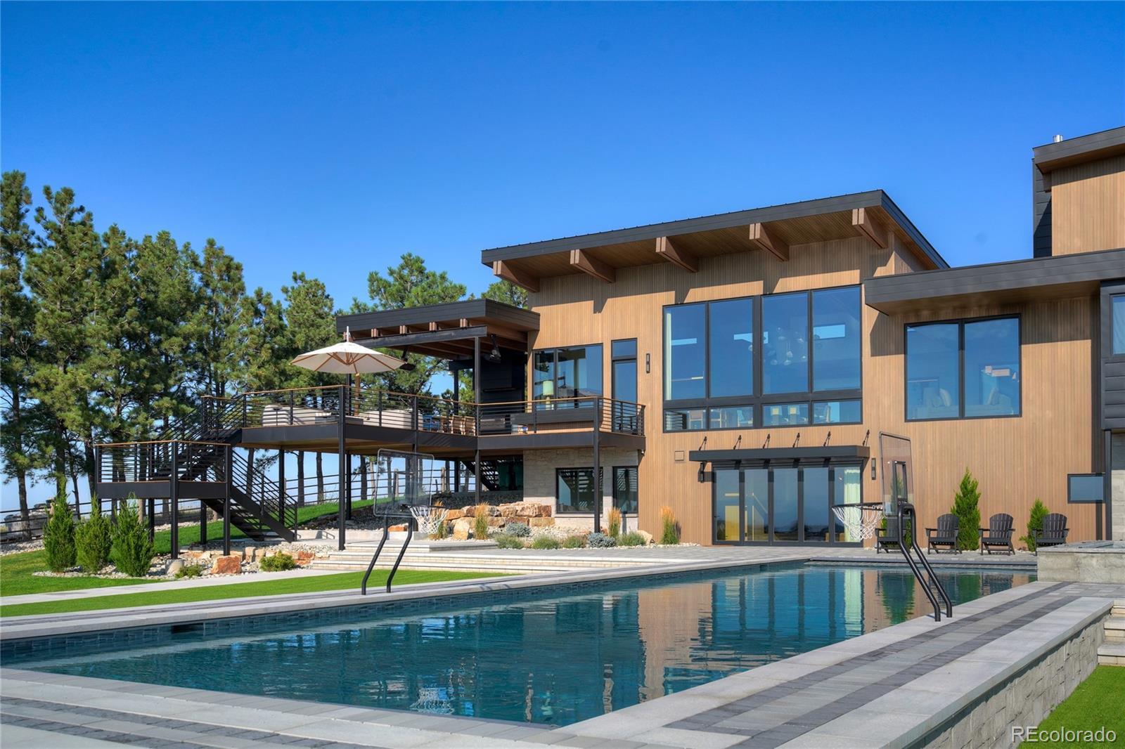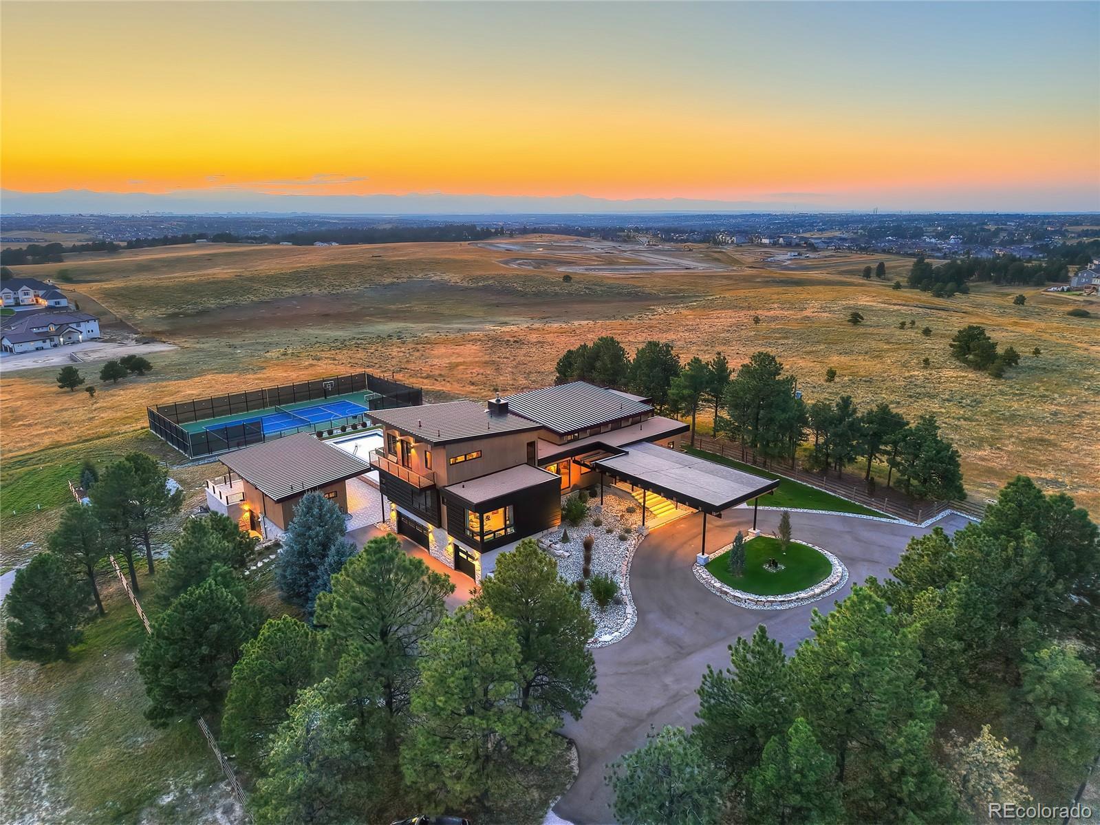 Welcome to Summit Haus. A true family resort style Estate on TWO lots totaling almost 5 acres with HUGE Denver Skyline Views. As soon as your private gate opens you will be taken away by the private oasis feel and amenity packed compound including FULL size 20 Meter Swimming Pool, Full size Basketball Court, Full size Tennis Court, In ground Trampoline, Pool house and separate LOT that is fully sodded and ready to use as your own private football field or build another Home. Separate lot is shovel ready and can break ground immediately or in the future! 10811 Shadow Pines is something Parker has never seen till now. BRAND New Construction in 2023, an architectural masterpiece designed for entertaining and family gatherings. Truly TOP of the hill sitting on two of the highest elevated lots in ALL of Douglas County with huge views of the Foothills and Downtown Denver. Walk into the front door and be immediately drawn to the floor to ceiling windows facing west looking right at the beautiful mountains and 100 acres of OPEN SPACE. A once in a lifetime opportunity that can NOT be duplicated, this custom Parker Home perfectly positioned just 5 minutes from Southlands Shopping Center, 24 Minutes to Denver International Airport, and only 19 minutes to the Centennial Private Airport gives you the best of everything! A thoughtful floor plan with 6 bedrooms plus a separate pool house, guest house, office or gym gives you a flexible 7 bedroom plus 7 bathroom home. You must come walk the grounds and see the attention to detail to really appreciate this luxury estate. This is the best of Parker, your dream home awaits now. Schedule your private tour today to see this exclusive rare estate. A MUST SEE! The best views in Parker. Downtown Denver Skyline from your living room is a must see.