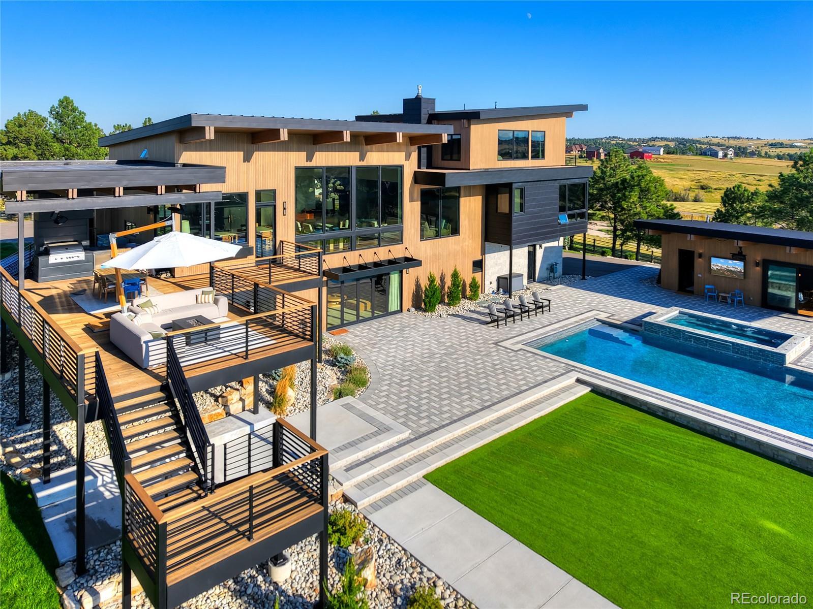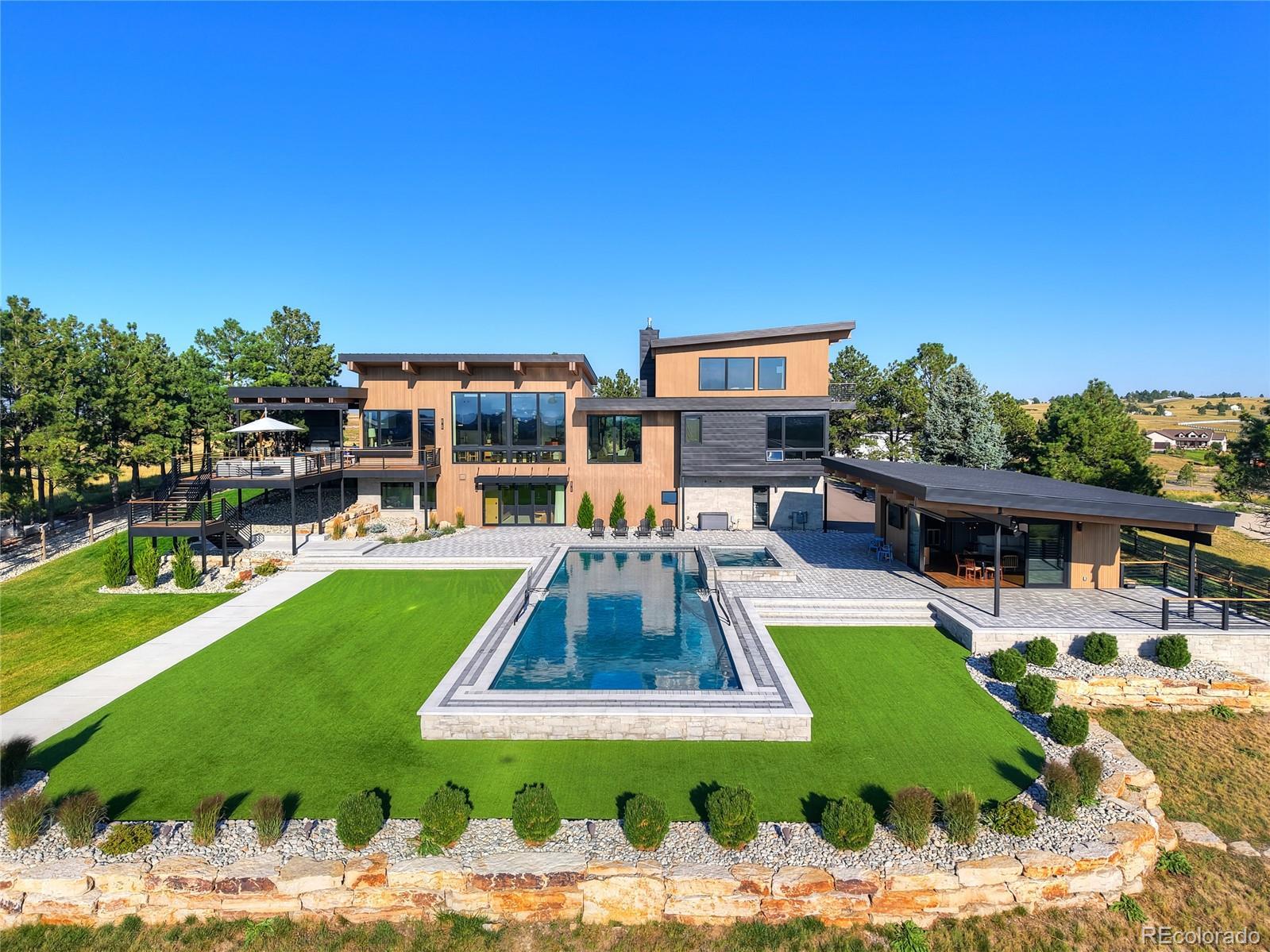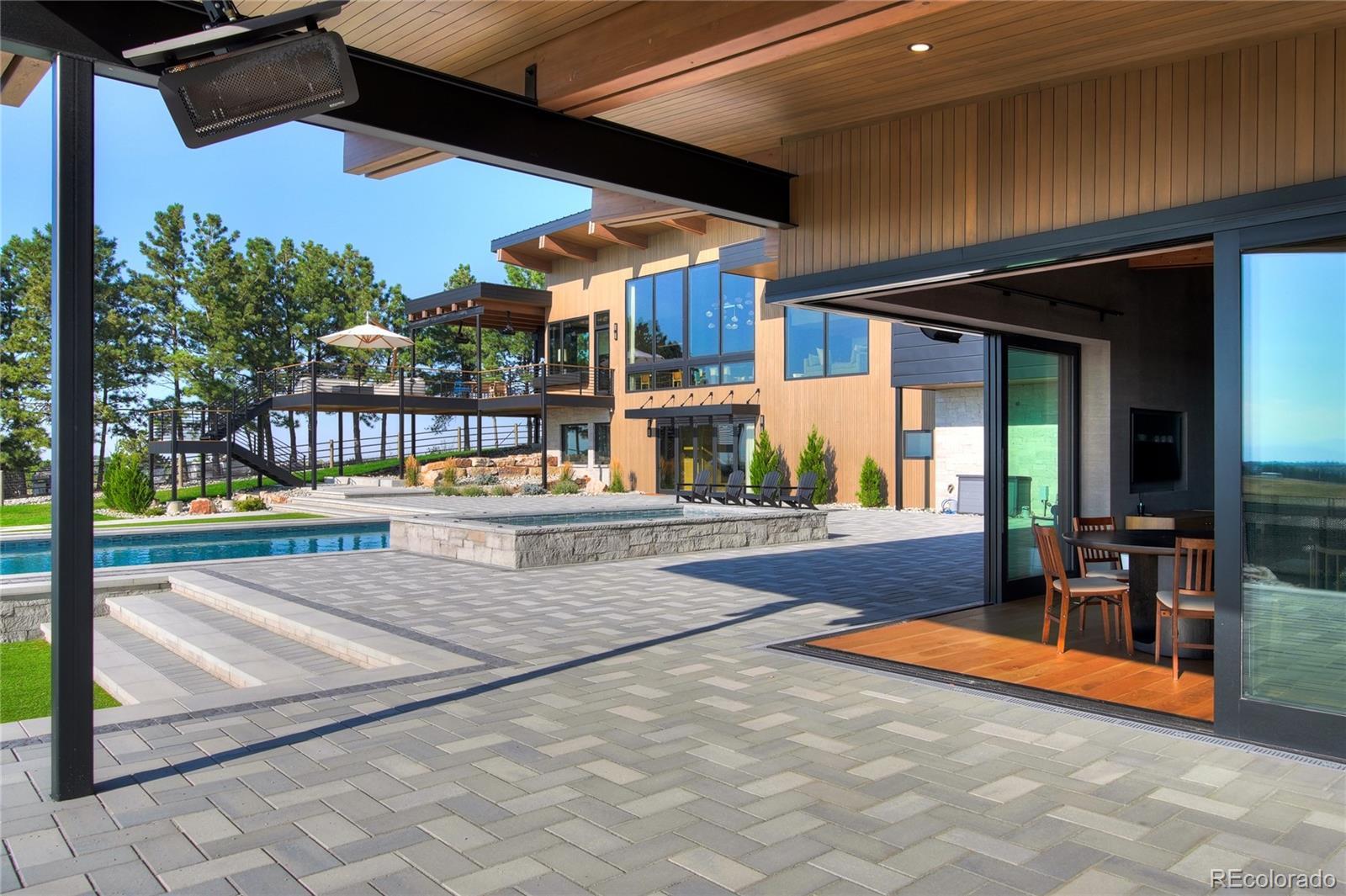 Welcome to Summit Haus. A true family resort style Estate on TWO lots totaling almost 5 acres with HUGE Denver Skyline Views. As soon as your private gate opens you will be taken away by the private oasis feel and amenity packed compound including FULL size 20 Meter Swimming Pool, Full size Basketball Court, Full size Tennis Court, In ground Trampoline, Pool house and separate LOT that is fully sodded and ready to use as your own private football field or build another Home. Separate lot is shovel ready and can break ground immediately or in the future! 10811 Shadow Pines is something Parker has never seen till now. BRAND New Construction in 2023, an architectural masterpiece designed for entertaining and family gatherings. Truly TOP of the hill sitting on two of the highest elevated lots in ALL of Douglas County with huge views of the Foothills and Downtown Denver. Walk into the front door and be immediately drawn to the floor to ceiling windows facing west looking right at the beautiful mountains and 100 acres of OPEN SPACE. A once in a lifetime opportunity that can NOT be duplicated, this custom Parker Home perfectly positioned just 5 minutes from Southlands Shopping Center, 24 Minutes to Denver International Airport, and only 19 minutes to the Centennial Private Airport gives you the best of everything! A thoughtful floor plan with 6 bedrooms plus a separate pool house, guest house, office or gym gives you a flexible 7 bedroom plus 7 bathroom home. You must come walk the grounds and see the attention to detail to really appreciate this luxury estate. This is the best of Parker, your dream home awaits now. Schedule your private tour today to see this exclusive rare estate. A MUST SEE! The best views in Parker. Downtown Denver Skyline from your living room is a must see.