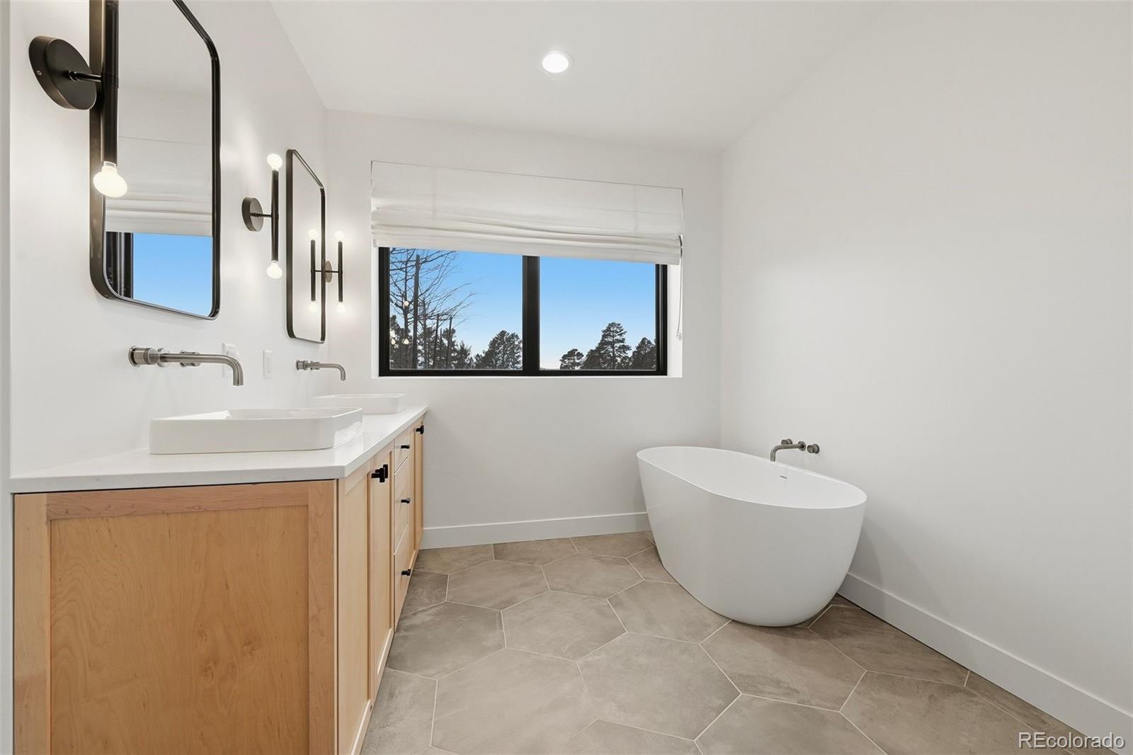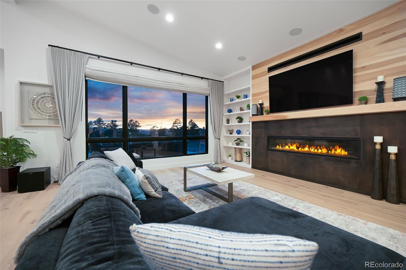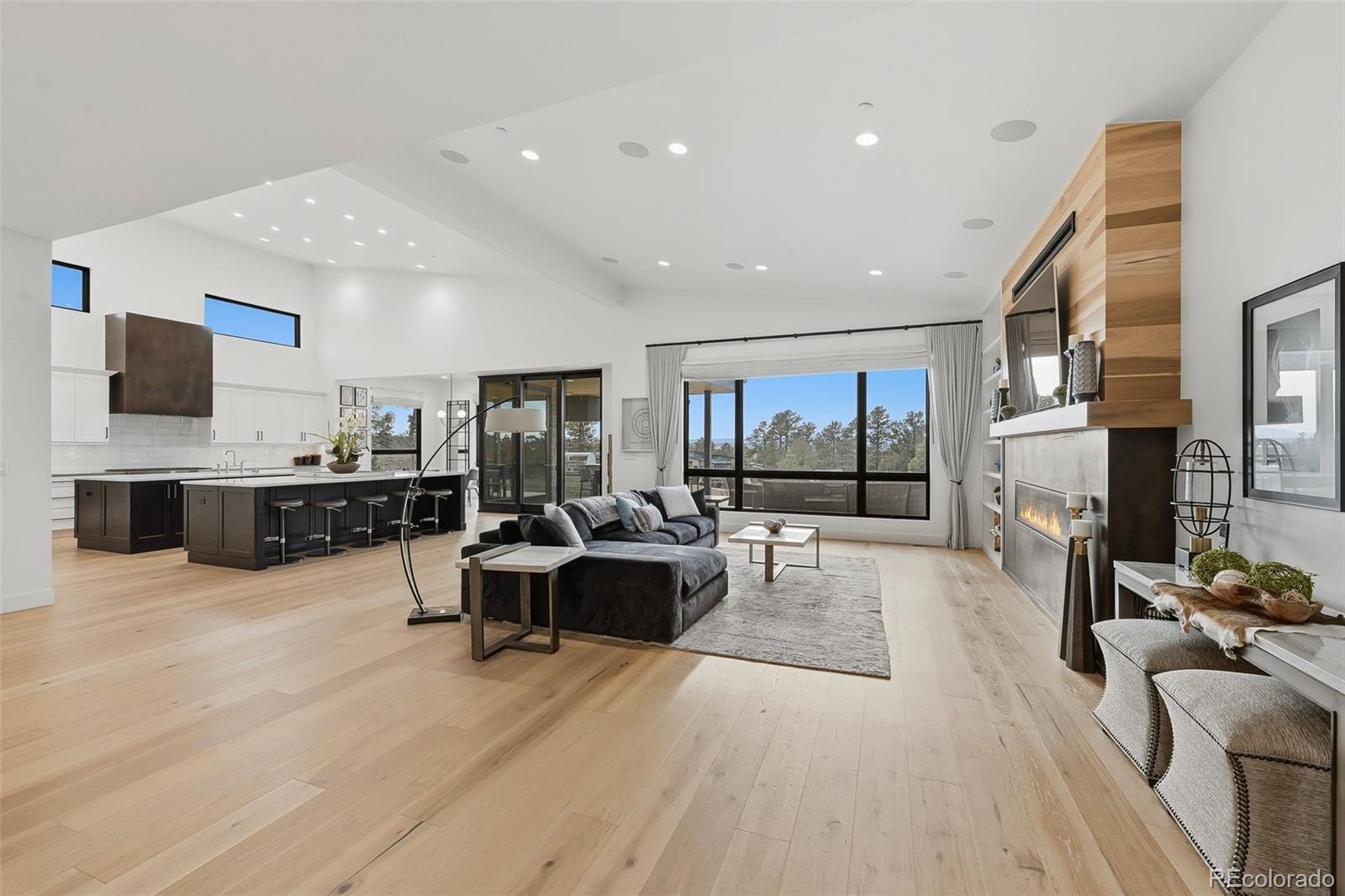 This extraordinary custom residence blends modern architecture, luxury design, and resort-style living on a breathtaking, private setting. Thoughtfully crafted with soaring ceilings, wide-plank hardwood floors, and walls of windows, the home is filled with natural light and showcases stunning mountain and acreage views throughout. The heart of the home is an open-concept living space anchored by a chef's kitchen with bold soapstone double islands, premium appliances, a cleverly concealed behind seamless cabinet front walk-in pantry, and seamless flow into elegant dining and gathering areas-perfect for both everyday living and grand entertaining. The primary suite is a true retreat, offering a serene bedroom, spa-inspired bath with soaking tub and dual vanities, a gorgeous walk-in closet, and a convenient main-level laundry just steps away. Additional bedrooms are spacious and beautifully appointed, providing comfort and flexibility for family and guests. The lower level is an entertainer's dream, featuring a full custom bar, expansive recreation space, media area, and a private guest suite with an attached designer bath, coffee bar with beverage refrigerator-ideal for visitors or multi-generational living. Outdoor living rivals that of a luxury resort with a covered patio complete with built-in grill, covered dining area, multiple seating zones, firepit and panoramic views. The grounds are equally impressive, offering a sports court, pool area, hot tub, terraced patios, and tranquil spaces to unwind and take in Colorado's natural beauty. A gated dog run, stunning landscaping, and expansive 5- car heated garage complete this exceptional property. This is more than a home-it's a lifestyle of elegance, comfort, and unforgettable living.