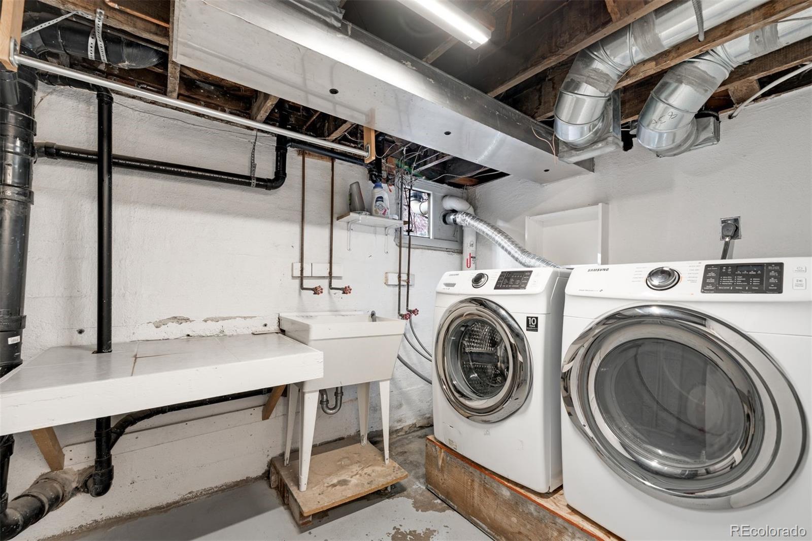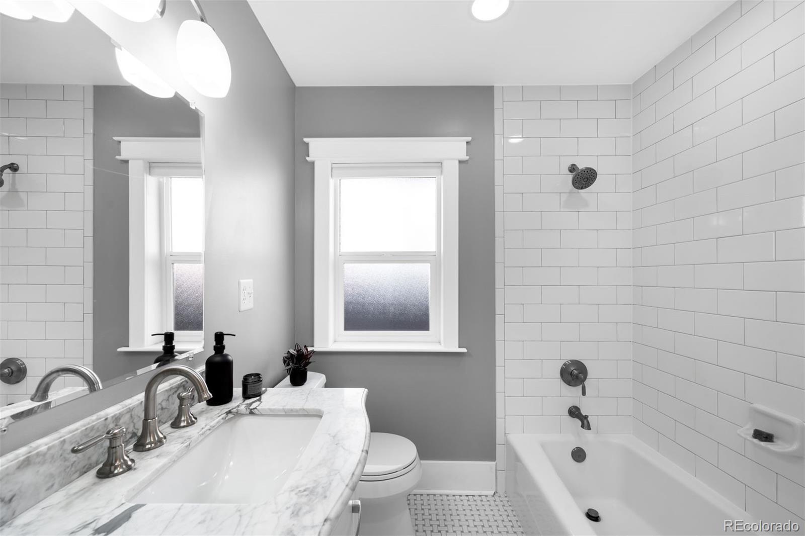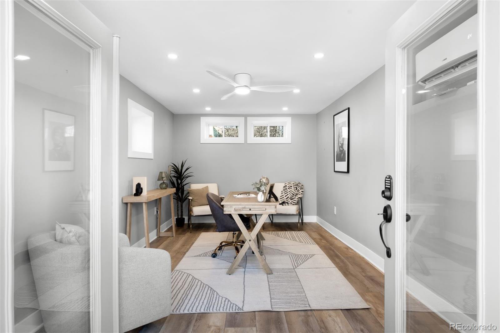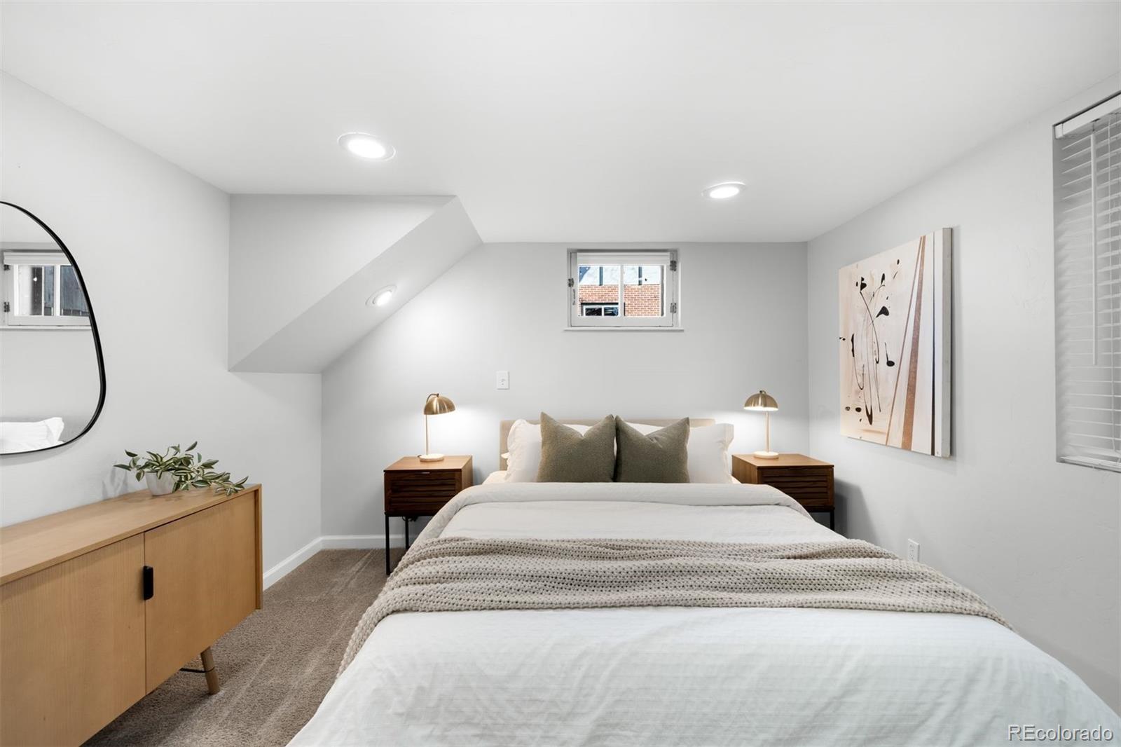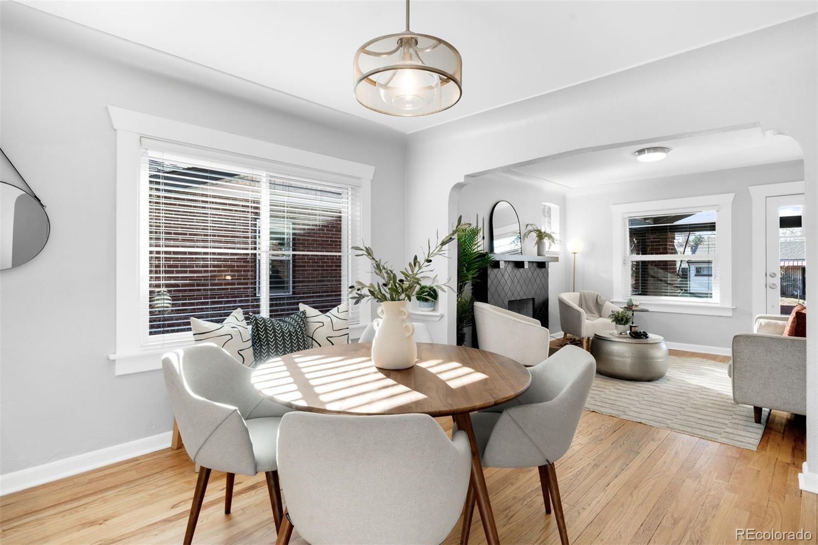 Welcome to 4580 Clay Street, a beautifully remodeled brick bungalow in the heart of Sunnyside. This 4-bedroom, 2-bath single-family home sits on a quiet, tree-lined block and blends classic 1925 character with thoughtful modern upgrades. Inside, the main level welcomes you into a bright, open living area with large windows throughout that bring in abundant natural light. The recently updated kitchen opens directly to the living and dining rooms, creating an easy layout for entertaining, with granite counters, stainless steel appliances, and plenty of cabinet space. Two bedrooms and a full bathroom complete this floor, including a primary bedroom large enough to accommodate a king-size bed—a rare find in a bungalow of this era. The finished basement significantly expands the home’s functional living space with an additional bedroom with a walk-in closet, a secondary living room, a flexible bonus room, a 3/4 bath, and a laundry room with utility sink. A newly converted detached ADU adds exceptional versatility, perfect as a private home office, creative studio, or additional guest bedroom. Adjacent to the ADU is a two-car garage with ample room for parking and storage. Outside, the fully fenced backyard is framed by mature trees and features a spacious flagstone patio ideal for outdoor dining and entertaining. The home is set back from the street, allowing you to enjoy the low-maintenance, xeriscaped front yard from the covered front porch. Notable improvements made during the seller’s ownership include: ADU conversion (2023), addition of central A/C (2021), kitchen remodel (2019), and new furnace & hot water heater (2018). Located just blocks from all the restaurants and shops along 44th Avenue, this home offers excellent walkability and convenient access to parks, downtown Denver, and I-70 for quick trips to the airport or the mountains. Don’t miss your chance to own a move-in-ready home in one of the most desirable locations in Sunnyside!