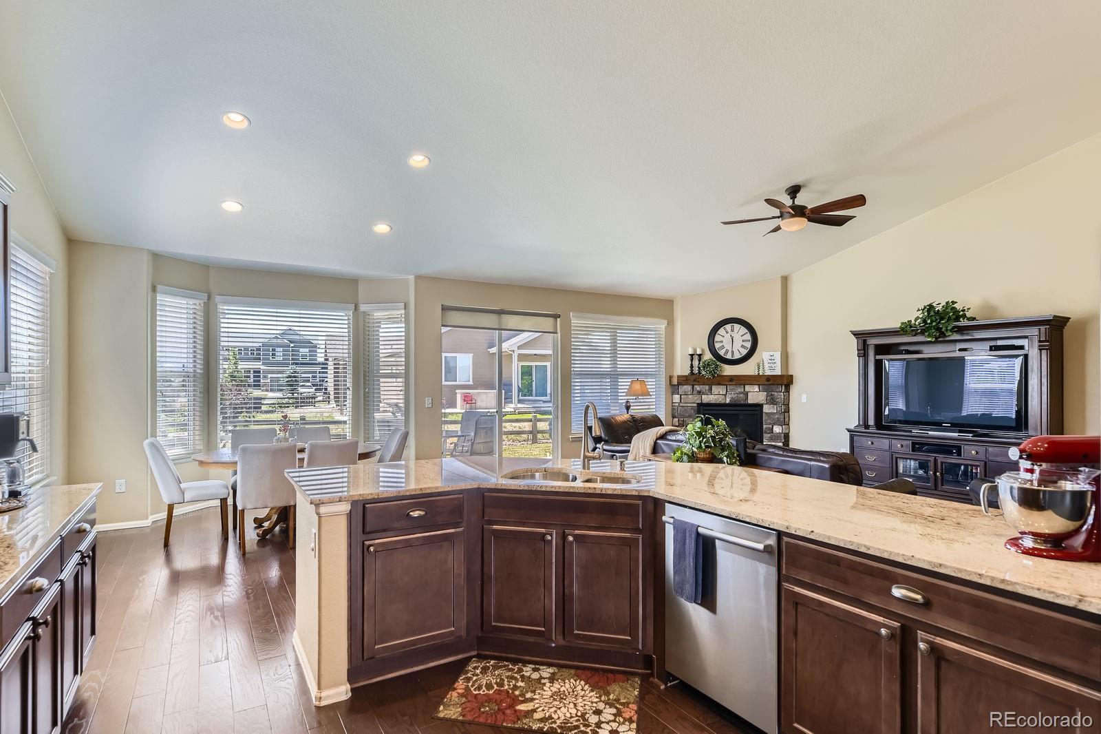Spectacular Ranch Home in Spring Valley Golf Community – Close to Town, Surrounded by Nature Welcome to this immaculate ranch-style gem on nearly 1/3 acre in the desirable Spring Valley Ranch community. With vaulted ceilings and an open floor plan bathed in natural light, this home offers the perfect blend of comfort and elegance. Enjoy a cozy living room with fireplace and durable LVP wood flooring, while the gourmet kitchen impresses with an oversized island, slab granite counters, gas stove, double ovens, Bosch dishwasher, custom pullout cabinetry, and a walk-in pantry. The formal dining room features custom wainscoting, perfect for entertaining. A main-floor office or optional 4th bedroom adds flexibility. The spacious primary suite includes a luxurious en suite bath and walk-in closet. An expansive unfinished basement awaits your personal touch. The oversized 3-car garage offers built-in cabinets/mudroom setup, and ample storage. Outdoors, you'll love the professionally landscaped yard with front and back sprinklers, fenced yard, patio with covered awning, and even a complimentary snowblower. Additional highlights include A/C, window coverings, and ADT security wiring. Located in a golf course community with walking trails and a clubhouse—just minutes from Elizabeth, Parker, Southlands Mall, and a 40-minute drive to DIA—this is convenient country living at its finest. Schedule your private showing today!