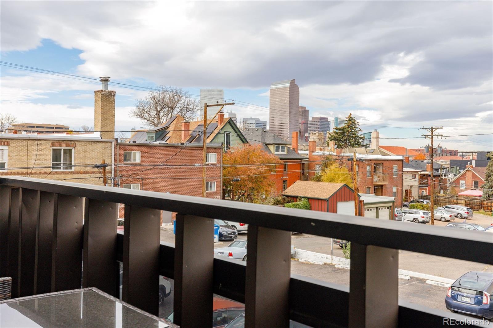 North-Facing 2-Bedroom Condo in the Heart of Capitol Hill! This bright and inviting condo features sliding glass doors that fill the space with natural light. The comfortable living room includes a cozy fireplace, and the dining area, just off the kitchen, opens to a balcony with views of downtown, including the iconic Cash Register Building. The kitchen is clean and full of vintage charm, while the updated bathroom adds a modern touch. A spacious walk-in closet off the hall offers a perfect bonus office or flex space. The unit includes one dedicated parking spot. Located in the desirable London House, this secure building offers outstanding amenities: a strong HOA, community room, indoor pool, fitness area, and a beautifully landscaped outdoor garden with a grill. Enjoy being just blocks from Whole Foods, Potager, Snarf’s, Cheesman Park, and more. Right in the heart of Down town and Capitol Hill!
