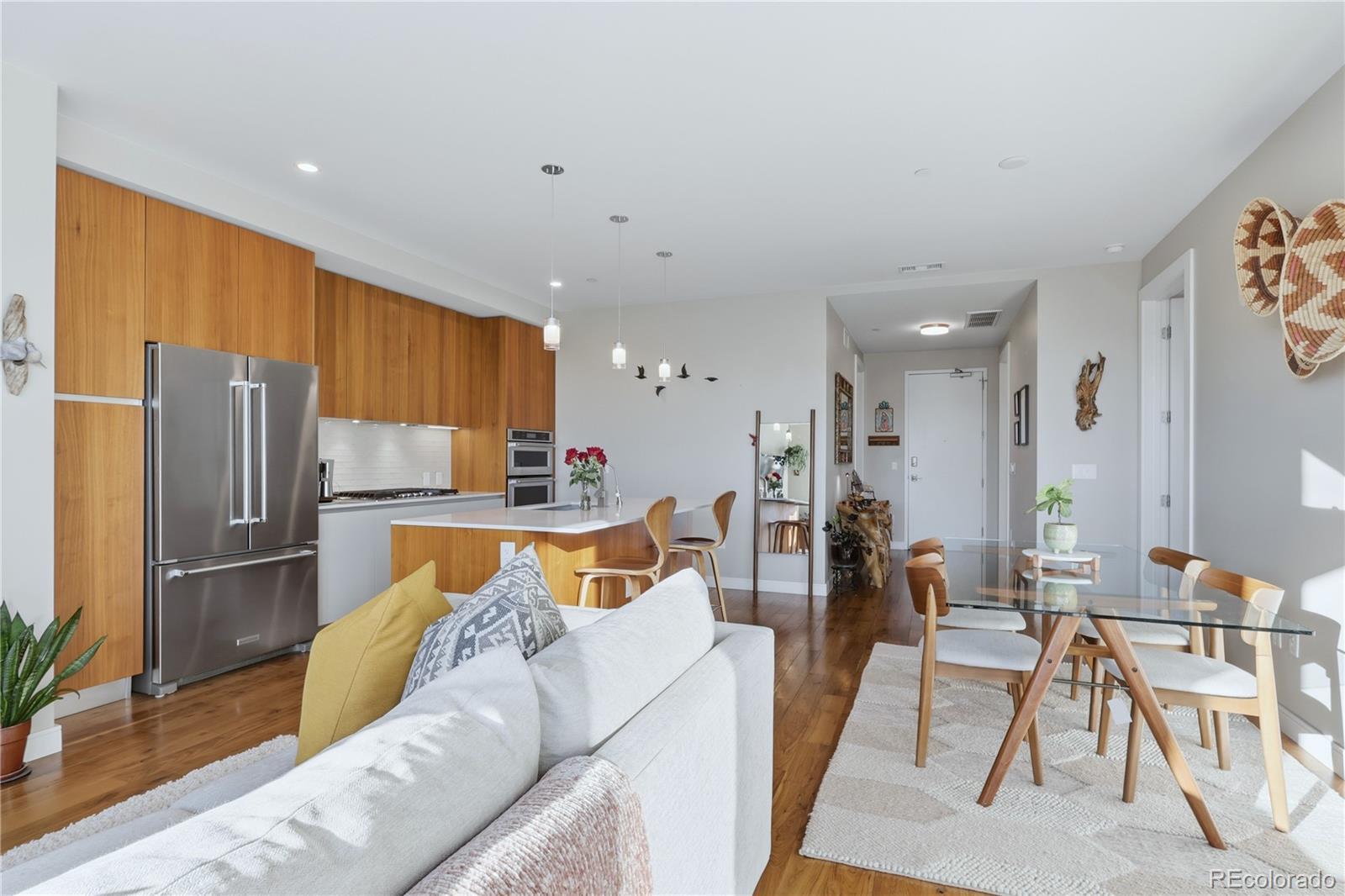 Visit www.DenverLuxuryCondo.com to view the official video, interactive floor plan, and 3D tours for Lakehouse #611. Welcome to Lakehouse 611, a premier Denver luxury condo overlooking Sloan’s Lake. This rare floorplan, one-bedroom, one-bath residence is the largest 1 Bedroom available in Lakehouse Denver, Colorado’s first WELL-Certified condominium community, designed to support comfort, wellness, and modern urban living. Enjoy over 1,000 square feet of open-concept living filled with natural light from floor-to-ceiling windows. The living and dining areas flow seamlessly together, while the private balcony offers tranquility. The chef-inspired kitchen features ItalKraft cabinetry, quartz countertops, and KitchenAid Pro appliances. The spa-style five-piece bath includes a soaking tub, glass-enclosed shower, and double vanity. A walk-in closet and oversized in-unit laundry room with additional storage enhance everyday convenience. As an added bonus, HOA dues are paid through the end of the year for the next owner. Lakehouse at Sloan’s Lake offers one of the most complete luxury condo amenity packages in Denver. Residents enjoy a heated 70-foot lap pool, year-round hot tub, state-of-the-art fitness center, yoga and meditation studios, resident lounge, chef’s kitchen, outdoor grilling areas, an organic urban farm, meditation gardens, and the Harvest Room. A wellness concierge and 24-hour front desk deliver a true resort-style living experience. Additional features include secured garage parking with storage, EV charging stations, a pet spa, ski and bike workshop, and complimentary kayak, tennis, and bike checkouts. Located just steps from Sloan’s Lake Park, Lakehouse offers immediate access to trails, outdoor recreation, and top Denver dining. Cholon and Gusto are located on the ground level, with Odell Brewing, Edgewater Public Market, and Alamo Drafthouse just minutes away. Experience the best of Denver lakeside luxury living at Lakehouse 611.