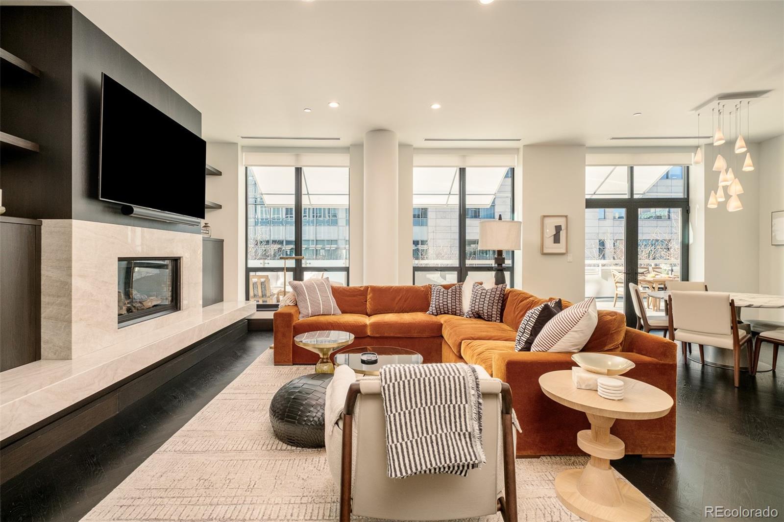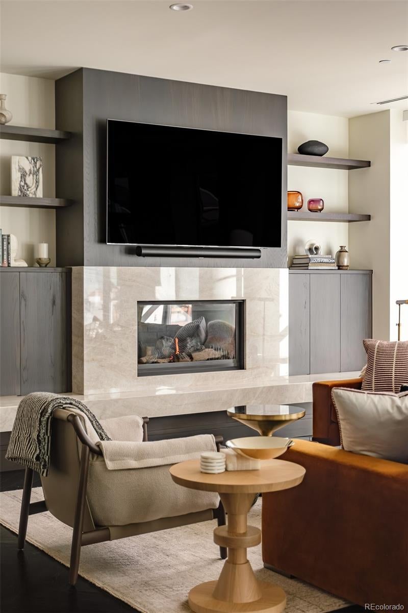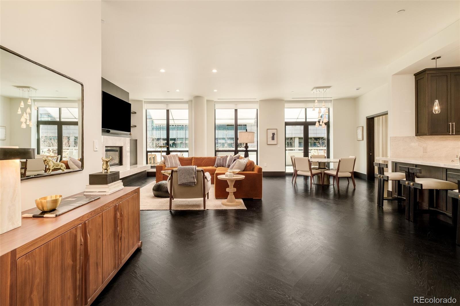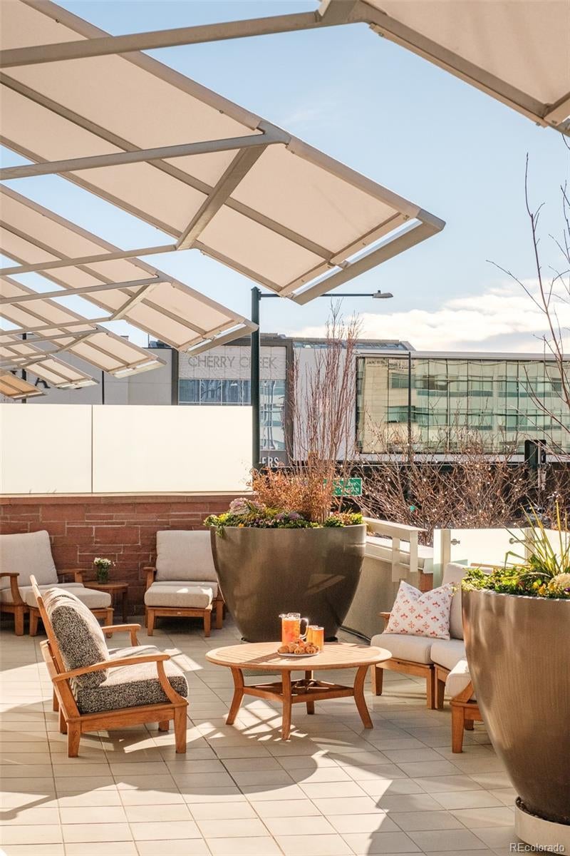 True Luxury whispers its arrival at North Creek, Cherry Creek North's most coveted enclave, this 2 plus bed and 3 bath home underwent a bespoke transformation, completely rebuilt from the studs up with opulent high-end finishes throughout. The moment you are received through the foyer, the great room welcomes you with uncompromising quality, where custom lighting and gas fireplace encased in quartzite anchor warmth flowing into a dining area crowned by a dancing teardrop chandelier that transforms intimate gatherings into unforgettable occasions. This exquisite kitchen redefines culinary artistry with Jenn-Air gas range and appliances, precision Miele dishwasher, and quartzite surfaces while an eat-in island serves both solitary mornings and grand entertaining, adjoined with ample pantry, wet bar and Samsung smart laundry elevating every practical detail. The primary suite, a tranquil retreat illuminated by a stunning chandelier and elegant bedside pendants, features an ensuite boasting extensive marble finishes, spacious steam shower and gorgeous lighting opens directly onto your private 1000-square-foot patio—a Cherry Creek rarity—with new tile, irrigated landscape planters and complete outdoor kitchen featuring transformative Al Fresco grill, warming oven and refrigerator where new exterior canopies orchestrate light seamlessly integrating indoors and out. The gorgeous guest bedroom with ensuite including steam shower, floor to ceiling windows, elegant drapery, linen covered walls and floating marble vanity ensures every visitor experiences thoughtful luxury. A flexible snug adapts as private office or intimate den, adjoining powder room. Two deeded parking spaces plus dual storage complete this curated sanctuary. Nestled within Cherry Creek North's protected community with 24-hour concierge—craftsmanship with soul, exclusivity with substance, functional beauty that enhances every day. Welcome to a narrative so rare it becomes irresistible. Furnishings negotiable