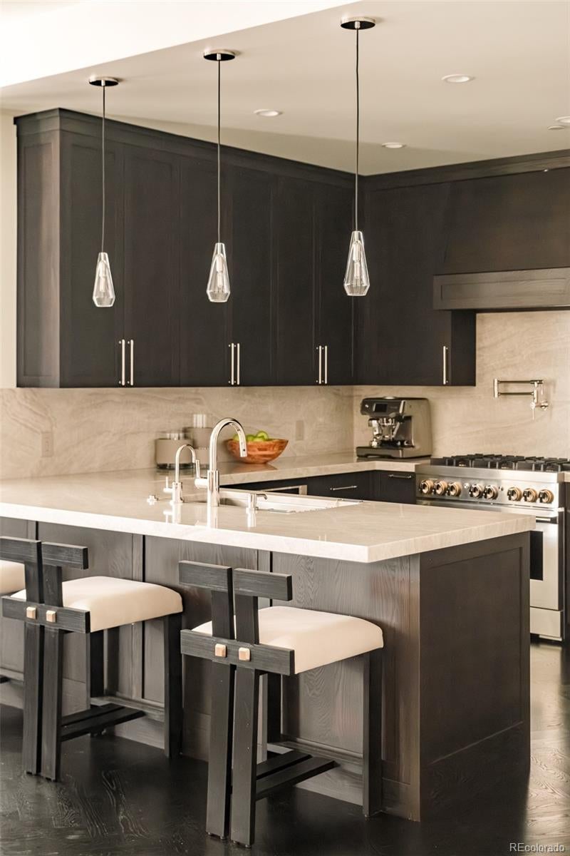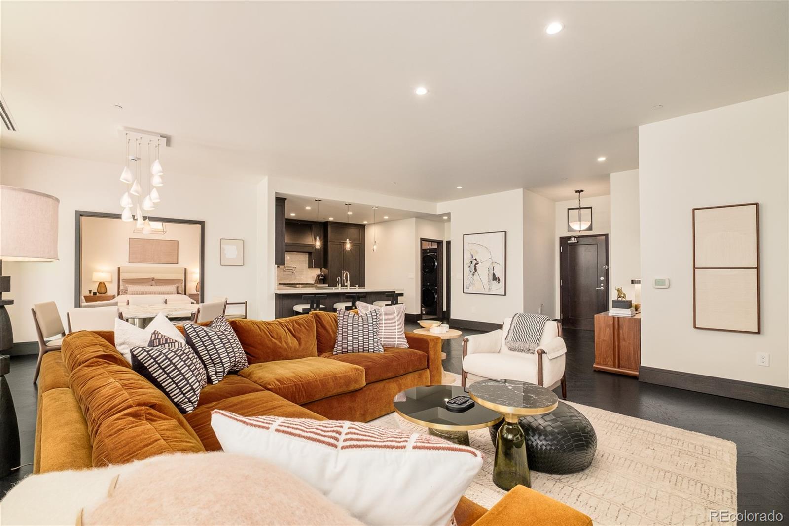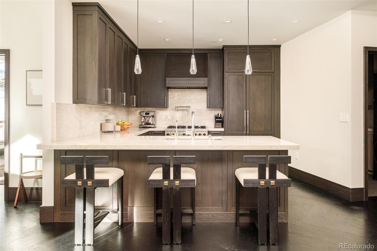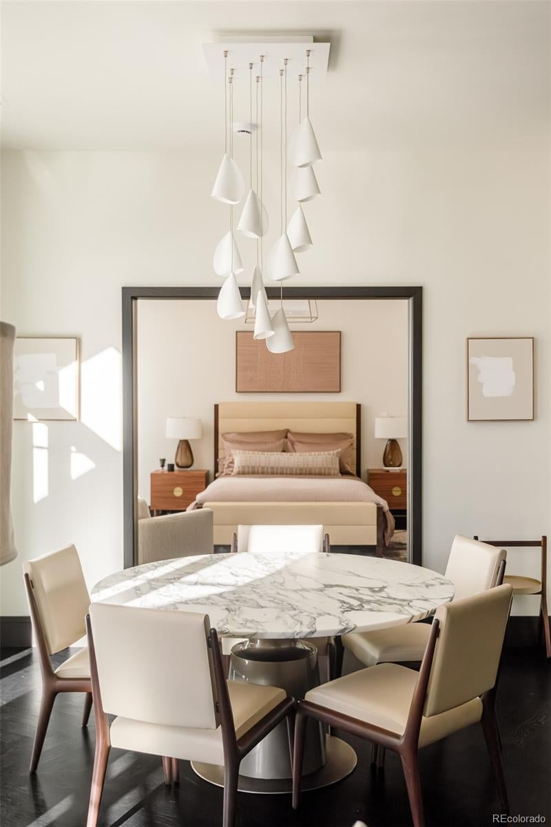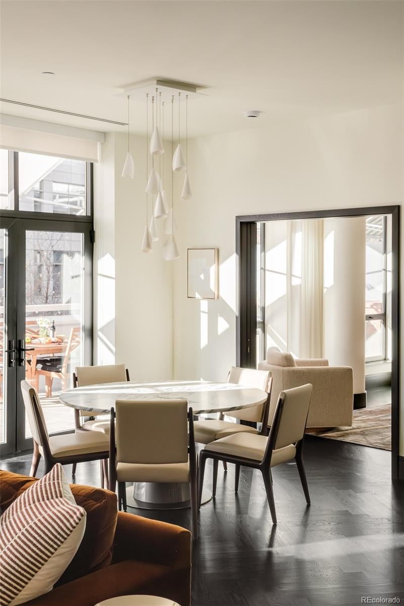 True Luxury whispers its arrival at North Creek, Cherry Creek North's most coveted enclave, this 2 plus bed and 3 bath home underwent a bespoke transformation, completely rebuilt from the studs up with opulent high-end finishes throughout. The moment you are received through the foyer, the great room welcomes you with uncompromising quality, where custom lighting and gas fireplace encased in quartzite anchor warmth flowing into a dining area crowned by a dancing teardrop chandelier that transforms intimate gatherings into unforgettable occasions. This exquisite kitchen redefines culinary artistry with Jenn-Air gas range and appliances, precision Miele dishwasher, and quartzite surfaces while an eat-in island serves both solitary mornings and grand entertaining, adjoined with ample pantry, wet bar and Samsung smart laundry elevating every practical detail. The primary suite, a tranquil retreat illuminated by a stunning chandelier and elegant bedside pendants, features an ensuite boasting extensive marble finishes, spacious steam shower and gorgeous lighting opens directly onto your private 1000-square-foot patio—a Cherry Creek rarity—with new tile, irrigated landscape planters and complete outdoor kitchen featuring transformative Al Fresco grill, warming oven and refrigerator where new exterior canopies orchestrate light seamlessly integrating indoors and out. The gorgeous guest bedroom with ensuite including steam shower, floor to ceiling windows, elegant drapery, linen covered walls and floating marble vanity ensures every visitor experiences thoughtful luxury. A flexible snug adapts as private office or intimate den, adjoining powder room. Two deeded parking spaces plus dual storage complete this curated sanctuary. Nestled within Cherry Creek North's protected community with 24-hour concierge—craftsmanship with soul, exclusivity with substance, functional beauty that enhances every day. Welcome to a narrative so rare it becomes irresistible. Furnishings negotiable