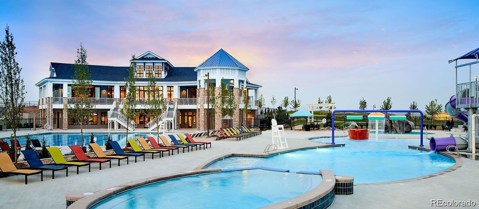 Experience Colorado living at its finest in this stunning home from Toll Brothers, the nation's leading builder of luxury homes. This coveted Dillon model blends modern design and outdoor living perfectly. 5 bedrooms, 4 baths, and a 3-car garage. Cathedral ceilings and a beautiful open concept living room. A delightful chef's kitchen with luxury appliances and an expansive island for your culinary adventures! You'll love entertaining friends in your beautiful dining room and incredible outdoor living space. There's room for everything! A great flex room on the main serves as a bedroom or home office with its own 3/4 bathroom. The upstairs is thoughtfully laid out with space between the primary bedroom and the three additional bedrooms. The primary bedroom features an ensuite 5-piece bath with a standalone tub, beautiful large frameless shower, dual vanities and large walk-in closet. Across the hall, you'll find 3 additional bedrooms. One bedroom with its own ensuite 3/4 bathroom, and two bedrooms that share a Jack & Jill style bathroom. And a full unfinished basement with egress and rough-in to finish to your liking. Located in the highly rated Cherry Creek School District! Two impressive club houses and pools, gyms, trails, parks, fitness classes. A short walk to the Aurora Reservoir trailhead. You'll love living in Southshore!!