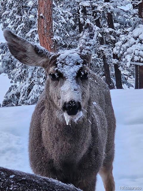 This is the BEST deal in Evergreen! Welcome to your tranquil Colorado mountain retreat! Located just 15 minutes from Evergreen Lake, this beautifully updated home sits on 1.28 gently sloped idyllic acres. After driving up one of the most scenic drives in the world, you arrive at an easily accessible flat paved driveway with this beautiful home at the end! The feeling of serenity is amazing looking over the gorgeous meadow! This property is as practical as it is picturesque—being on one of the very first roads plowed in the winter! Enjoy peace of mind with fire-resistant James Hardie siding featuring a Woodtone wood-look finish, full compliance with the State of Colorado Fire Mitigation requirements, and confirmation letters from both the Evergreen Fire Department and Allstate Insurance. The exterior also boasts a new, expansive Trex front deck with enough room for a carport underneath, a covered concrete patio on one side, a big flagstone patio on the other side, and a covered walkway—all ideal for outdoor living and wildlife watching. The home has been professionally surveyed for clear boundary lines and includes an attached storage shed for convenience. Inside, the fully remodeled kitchen features new cabinets, countertops, backsplash, and stainless steel appliances. The open-concept main floor includes a spacious living room with beautiful wood floors, built-in bookshelves, and a fireplace. The adjacent dining area to the kitchen flows seamlessly into the living room and has a cozy pellet stove—perfect for entertaining. Downstairs, the primary suite offers privacy and comfort, complete with a luxurious full bath, a large family room with a wood-burning stove, a laundry area with a brand new washer & dryer, and a finished storage room. There's great high speed internet through Clear Creek Broadband too! If you're looking for a turn-key mountain home with modern comforts, unbeatable scenery, and thoughtful updates—this is it!