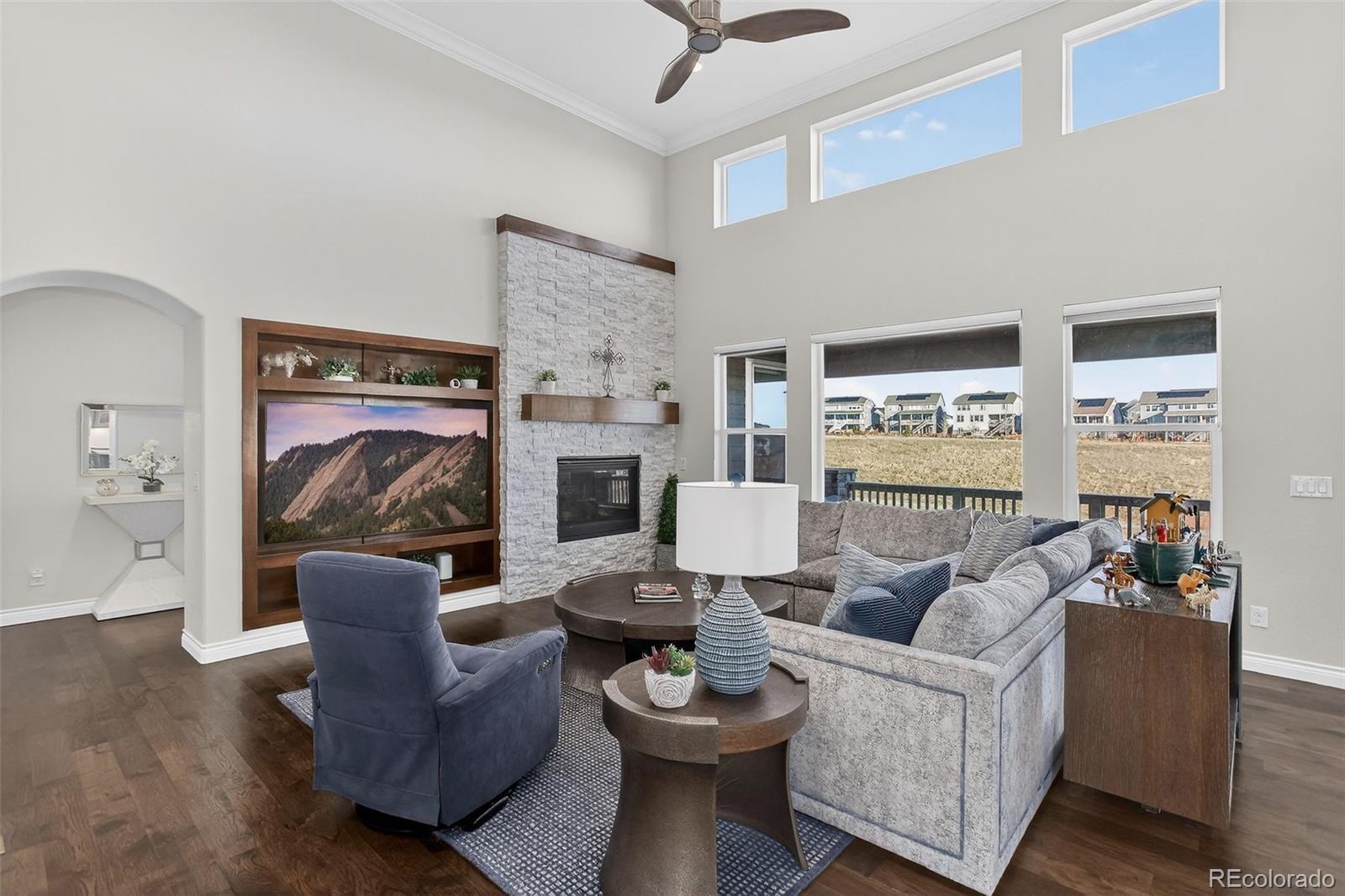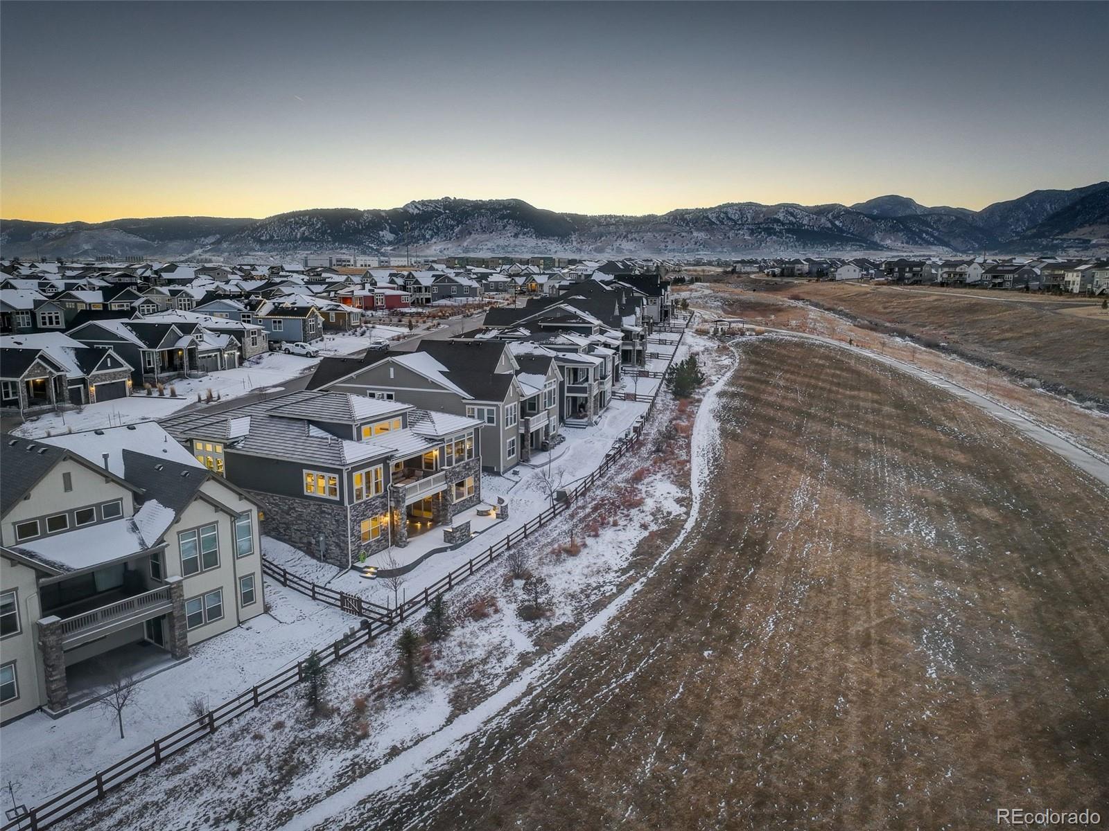 A stunning patio home you do not want to miss! This is a beautifully appointed home that boasts unparalleled upgrades throughout. This home offers low maintenance living at its finest, HOA includes snow removal (2"or more, streets, drive and walks), lawn mowing and landscape maintenance with front and rear irrigation. Meticulously maintained, the main level offers hickory hardwood flooring throughout, an office with French doors, a grand dining area and open concept living area, a spectacular kitchen with quartz counters, high end cabinets, a coffee bar with butler's pantry and stainless-steel high-end appliances. The great room features a cozy gas fireplace and beautifully designed built -ins. The primary bedroom invites you in with large windows, a five-piece bath and 2 walk-in closets with built-ins and organizers. The lower level features a wet bar with quartz counters, a mini fridge, dishwasher, ice maker, an expansive entertainment area, large bright bedrooms with enormous closets, full bathroom and second fireplace. The bonus room offers flexibility to add a movie room, play room, home gym or craft area. The utility room offers tons of space for extra indoor storage. The covered deck and patio offer unrivaled outdoor living with views of the mountains and backing to open space. Custom grill and firepit areas including natural gas hookups, perfect for entertaining. The 3 car garage is beautifully finished with large cabinets, and lots of storage. Hunter Douglas window coverings throughout the home. A concrete roof built to withstand those Colorado hail storms, this is a huge upgrade! The community in Candelas is unlike any other, fitness centers, parks and playgrounds, 2 pools and miles of trails.. this neighborhood has it all!