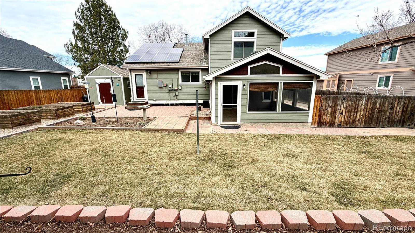 Welcome to this hard to find, move in ready 4 bedroom, 3.5 bathroom home in Highland Park with no HOA. Pride of ownership is evident throughout. The home is in exceptional condition for its age and has been thoughtfully updated, leaving little to be done. All bathrooms were remodeled in 2022, and the kitchen was redesigned in 2012 to create a more open layout featuring natural cherry cabinetry and an induction range. Natural wood flooring flows through the main living areas. Energy efficiency is a major benefit with owned solar panels installed in 2009 and expanded in 2023, significantly reducing electric costs. The roof was replaced in 2017 with Class 4 impact resistant shingles. Outdoor features include an extended front patio, a large RV parking pad, screened in sunroom, extended rear patio, garden beds, low maintenance landscaping, and multiple storage sheds for added functionality. The location offers convenient access to city parks, the Broomfield Community Recreation Center, Bay Aquatic Park, soccer and baseball fields, grocery stores, and retail amenities.