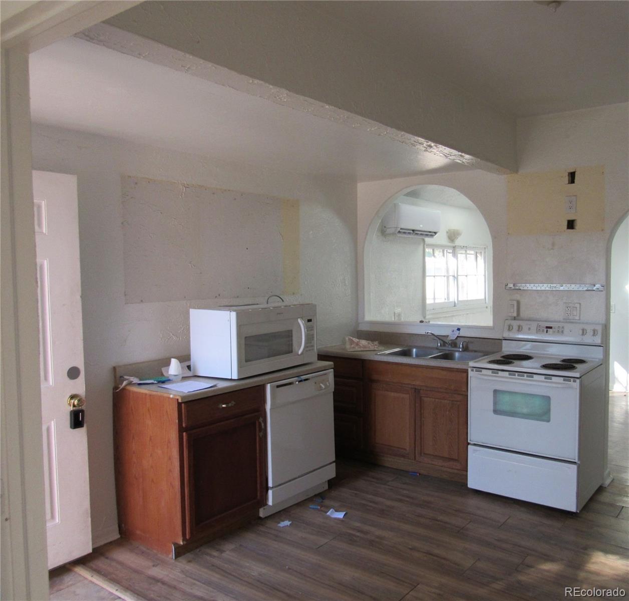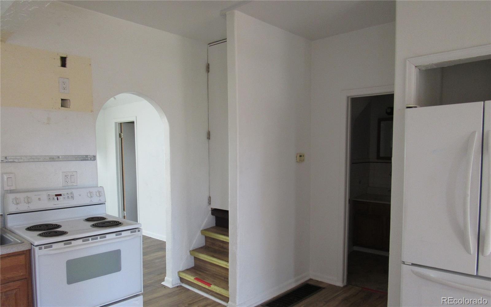 This great place is ready for you to make it your own with convenient access to Hospital, schools and I-25. Laminate flooring throughout the main level make for easy cleaning! The upper level would make a great primary bedroom with a separate sitting area. Unfinished basement area adds extra storage space. Fully fenced back yard for your furry friends. Off-street parking and 1-car detached garage accessed from the alley. Come and take a look at all this property has to offer!