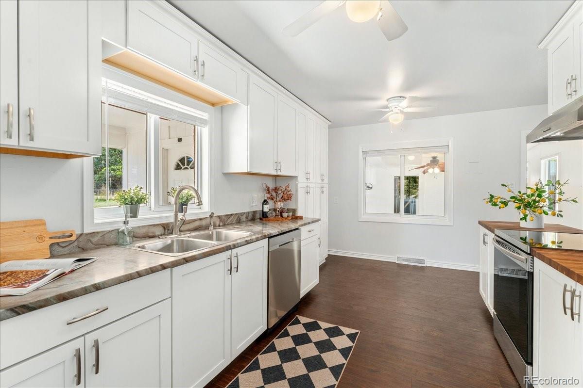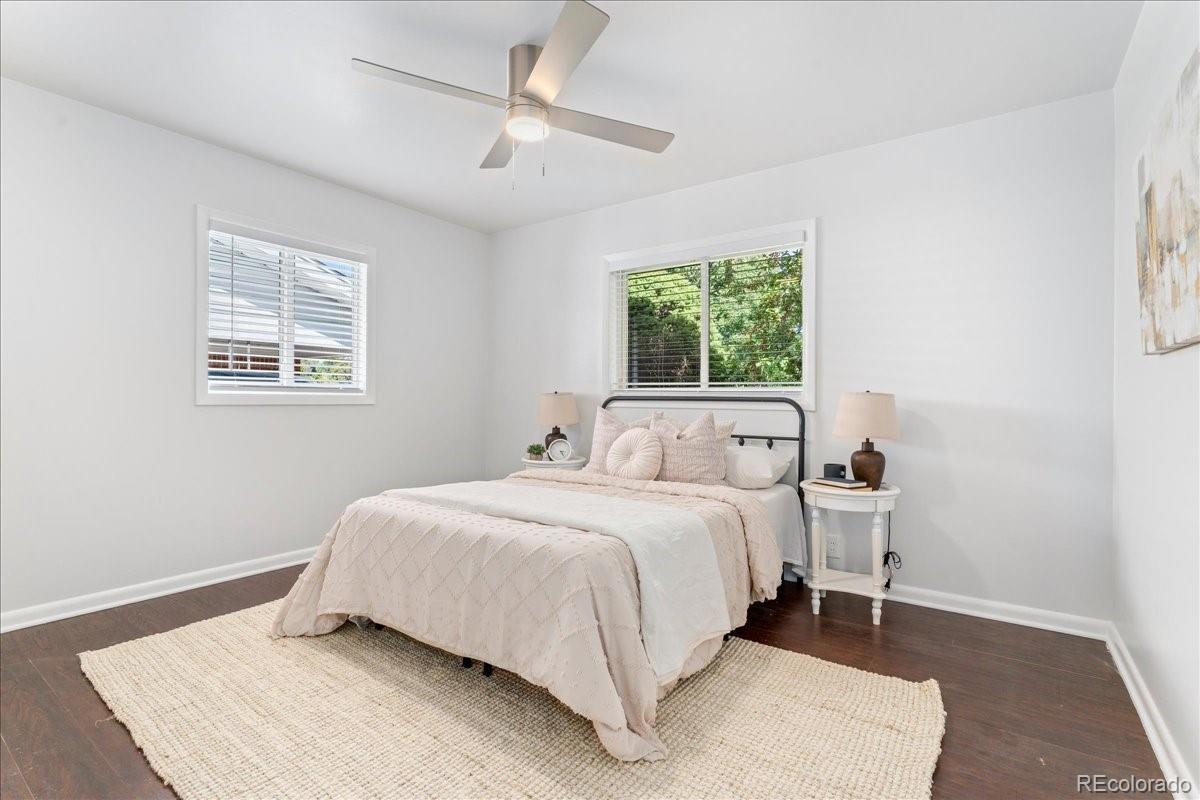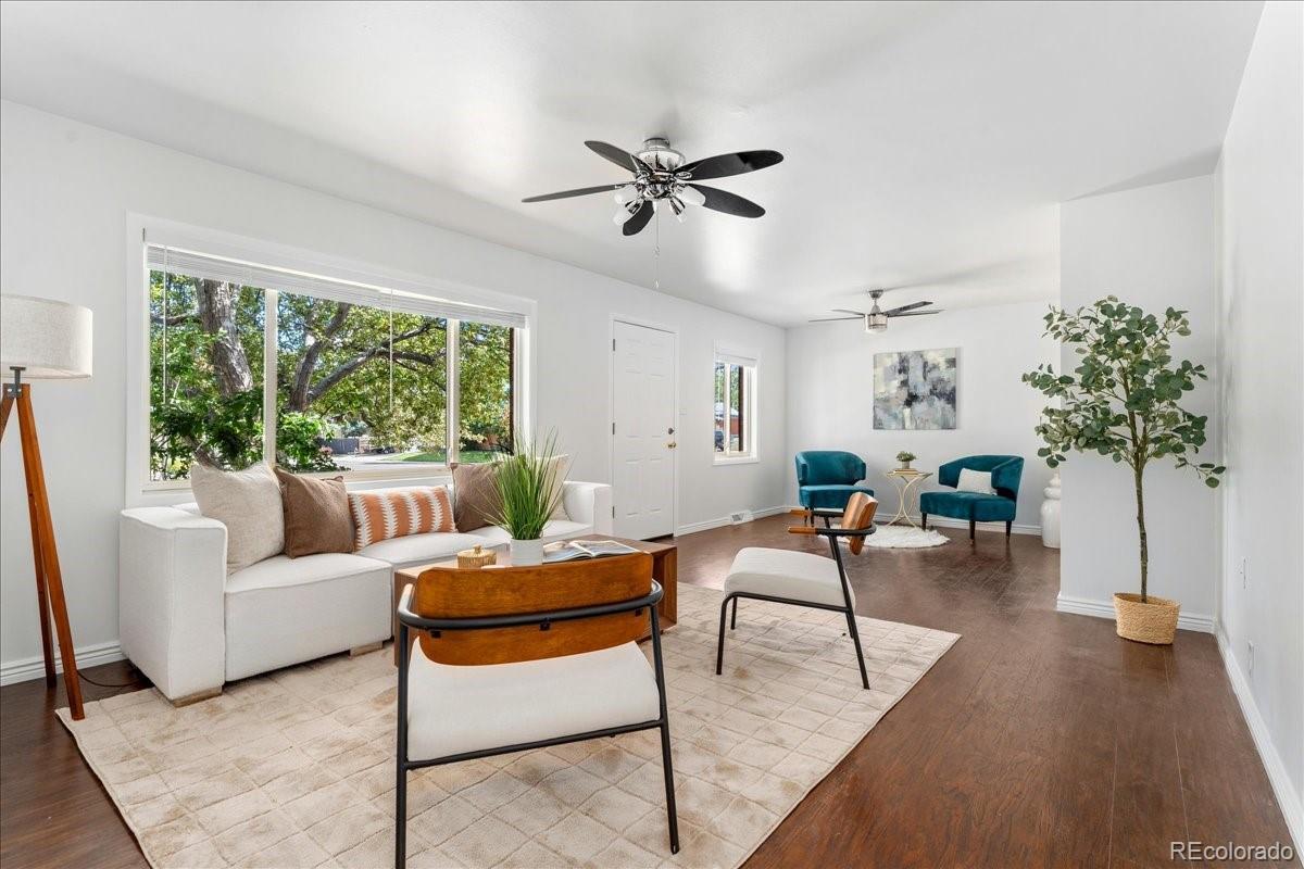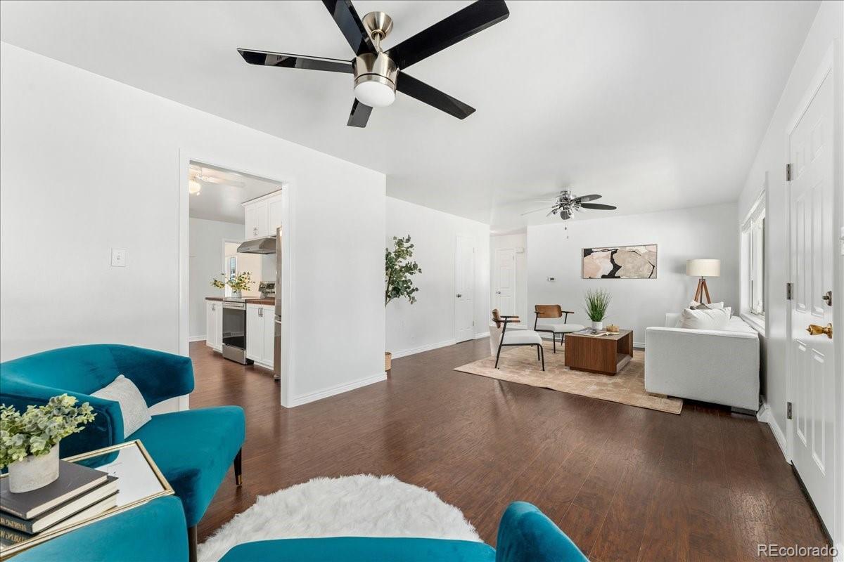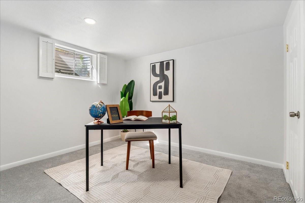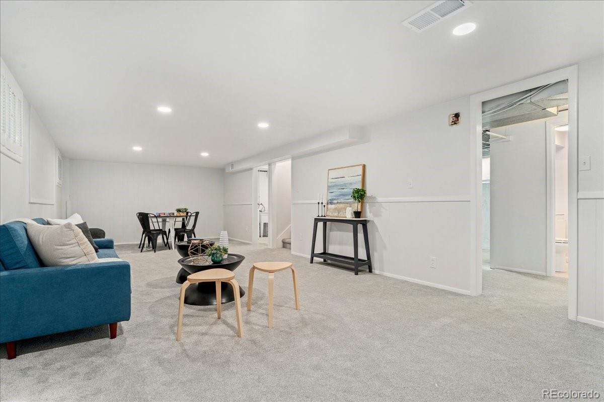 Discover the ideal blend of character and modern updates in this inviting 3-bedroom, 2-bath home on a spacious corner lot in Harvey Park. Inside, fresh paint, new hardwood flooring, crisp baseboards, updated closet doors, and modern hardware create a clean, polished look throughout. The kitchen strikes the perfect balance of style and function with updated cabinetry, granite and butcher block counters, and stainless steel appliances. A spacious dining room makes entertaining easy, while two comfortable bedrooms and a freshly painted full bath complete the main level. Downstairs, the finished basement offers even more living space with a third bedroom, a fully remodeled bathroom, new carpet, and fresh paint. A large laundry room with generous storage keeps everyday life organized, while another nearby storage area in the mechanical room adds even more versatility. One of the home’s standout features is the enclosed breezeway, seamlessly connecting the oversized two-car garage to the house. More than just a passage, it offers a versatile indoor-outdoor space with convenient access to the yard, side yard, and garage—all while keeping you out of the elements. Best of all, you’re just a short walk from Harvey Park Lake and the Rec Center, where trails, playgrounds, and community activities bring the neighborhood to life. With thoughtful updates, flexible living spaces, and a unique layout, this Harvey Park gem truly delivers comfort, convenience, and style. Access to I-25 is a short, 5 minute drive away!