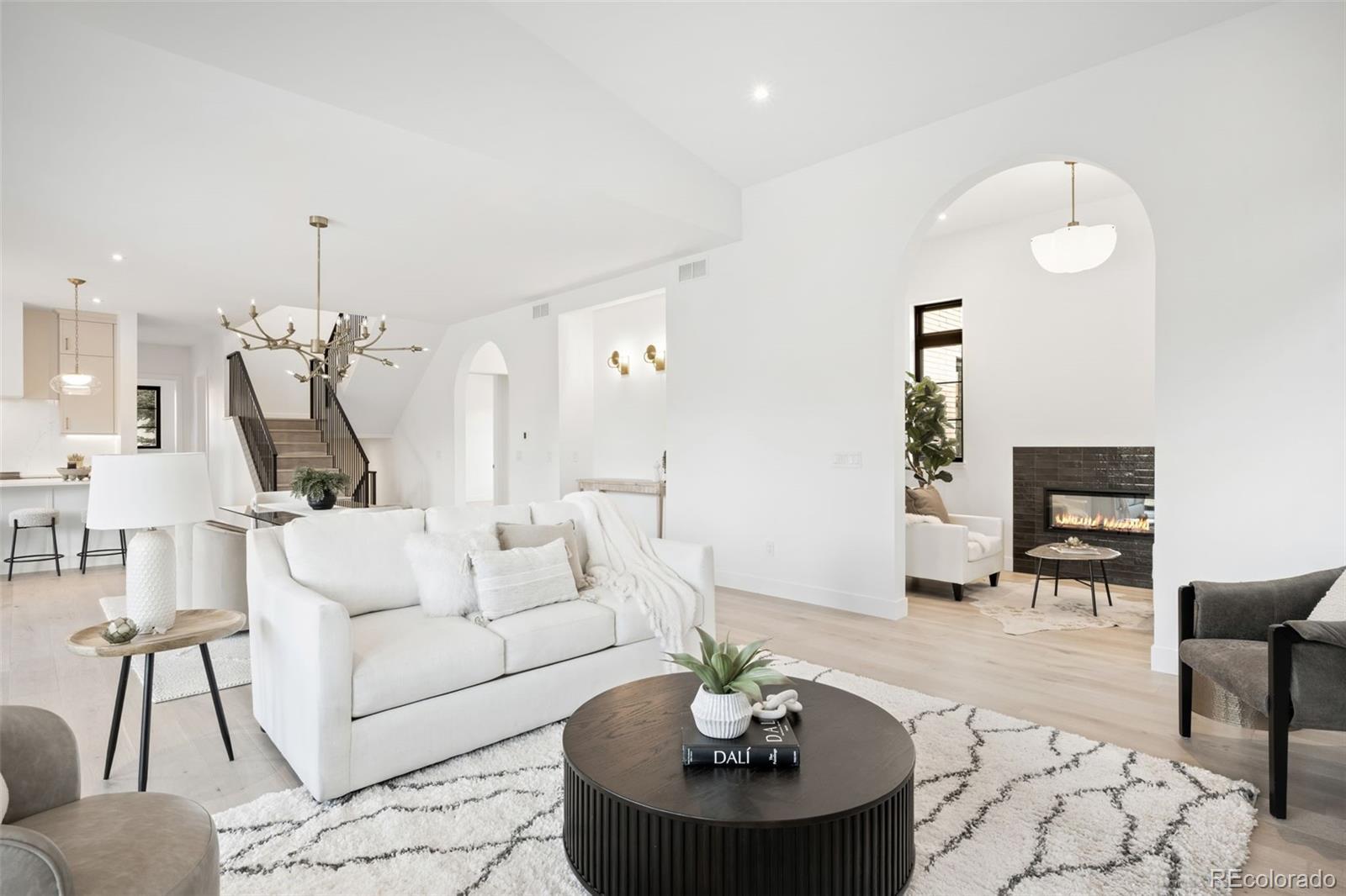Exceptional living on this new one of a kind luxury home that sits on a premier lot close to the Highline canal and Eisenhower park! This home as a stoic exterior and features large light filled open concept living /dining room, corner windows and an intriguing inglenook! Then main floor is also rounded out by a main level bedroom/ second office with an attached bath, a designer mudroom and walk in pantry. Accordion doors open up to a west facing covered patio and a large back yard. The oversized garage has an 3 car stall with extra high door and side mount openers. Set your showing today as this is one great home!