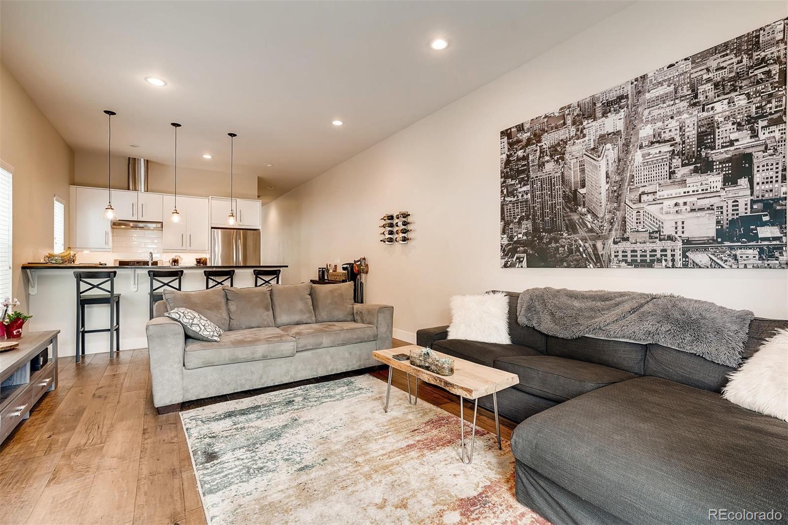 This beautifully refreshed 3 bedroom, 2.5 bathroom townhome at 538 S Lincoln Street blends modern style with everyday comfort in one of Denver’s most convenient locations. The home has just been updated with fresh paint and detailed interior improvements, giving every space a clean, crisp, move-in ready feel. The main level features wide plank flooring, quartz counters, stainless steel appliances, and a gas fireplace that adds warmth and character. The open layout includes a flexible front sitting or office area, a half bath, and a bright kitchen and family room designed for both entertaining and relaxed living. The kitchen offers glossy white cabinetry, a gas burner range, built-in microwave, dishwasher, and a large stainless steel sink, with generous counter space and a seating bar for additional dining options. The adjoining dining and family room receive excellent natural light and offer plenty of room for a large TV setup. A French door leads out to the low-maintenance backyard with a private patio and fencing. Parking includes a detached one-car garage plus an additional uncovered space. Upstairs, three well-proportioned bedrooms provide comfort and versatility. Two share a Jack-and-Jill style bathroom, while the third bedroom enjoys its own private ensuite. Recently refreshed, well cared for, and ideally located, this townhome is ready for its next resident to enjoy the best of Denver living.