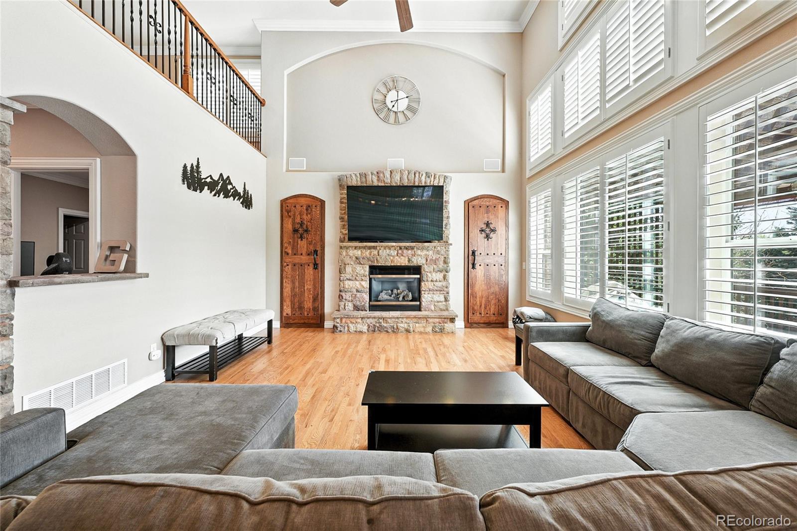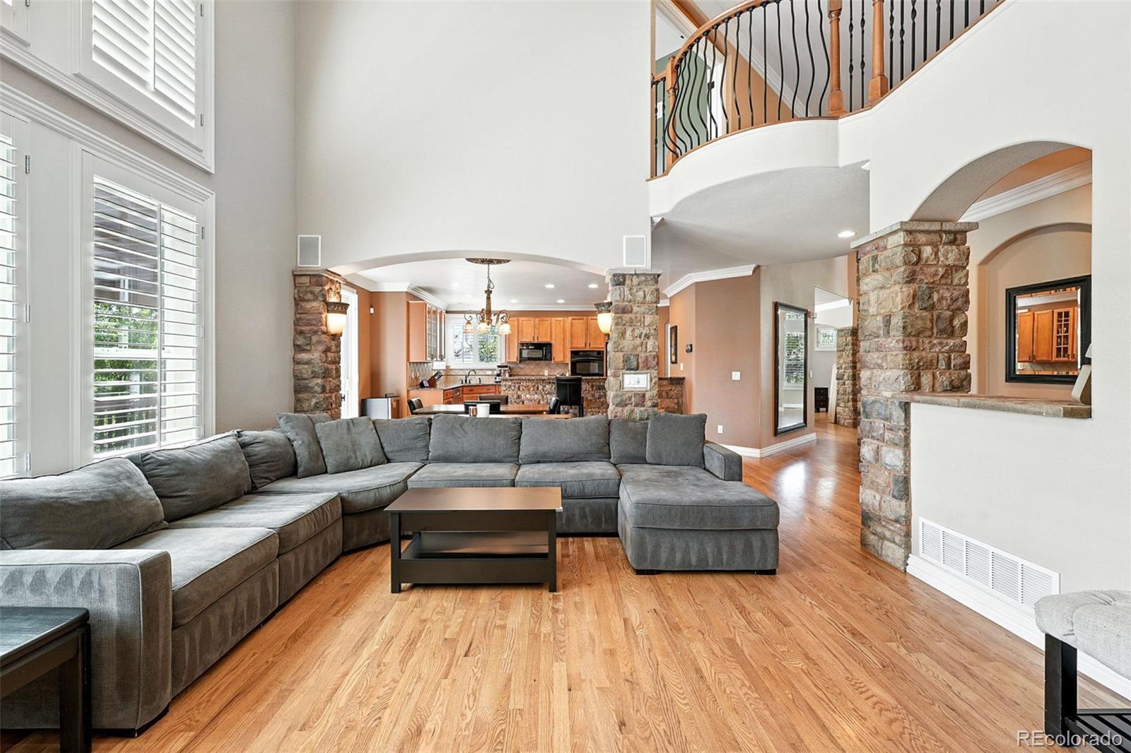 Welcome to 7809 S Coolidge Way, an impressive single-family home offering approximately 5,310 square feet of thoughtfully designed living space, blending elegance, comfort, and functionality. The main level welcomes you with a formal living and dining room before opening into a dramatic second living area featuring soaring ceilings, a gas-log fireplace, and a built-in sound system. The gourmet eat-in kitchen is designed for both everyday living and entertaining, complete with granite countertops, double ovens, a 5-burner gas cooktop, breakfast bar, ample cabinetry, and a walk-in pantry. The luxurious primary suite is a true retreat, featuring a spacious walk-in closet and an exquisite five-piece bath with travertine finishes, copper and oil-rubbed bronze details, dual vanities, a freestanding soaking tub, and a custom glass shower with full body spray. This level also includes two additional bedrooms with en-suite baths, a loft overlooking the living room below, and a dedicated home office. Downstairs, the full unfinished walk-out basement offers endless potential and opens to a covered patio that leads to a fully fenced backyard surrounded by mature trees, perfect for outdoor relaxation or entertaining. Enjoy year-round comfort with central A/C, efficient gas heating, and the peace of mind of a new roof and numerous interior upgrades. A spacious three-car attached garage provides ample room for parking, storage, and recreation. With its stunning views, expansive layout, and timeless design, this exceptional home delivers space, style, and versatility in a desirable Aurora location. Schedule your showing today, this one is not to be missed.