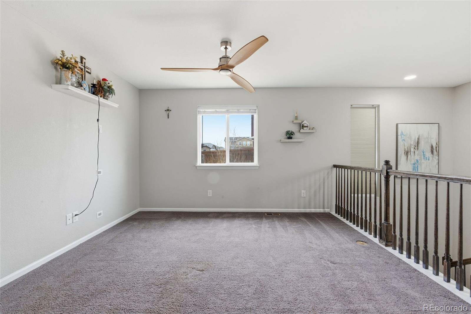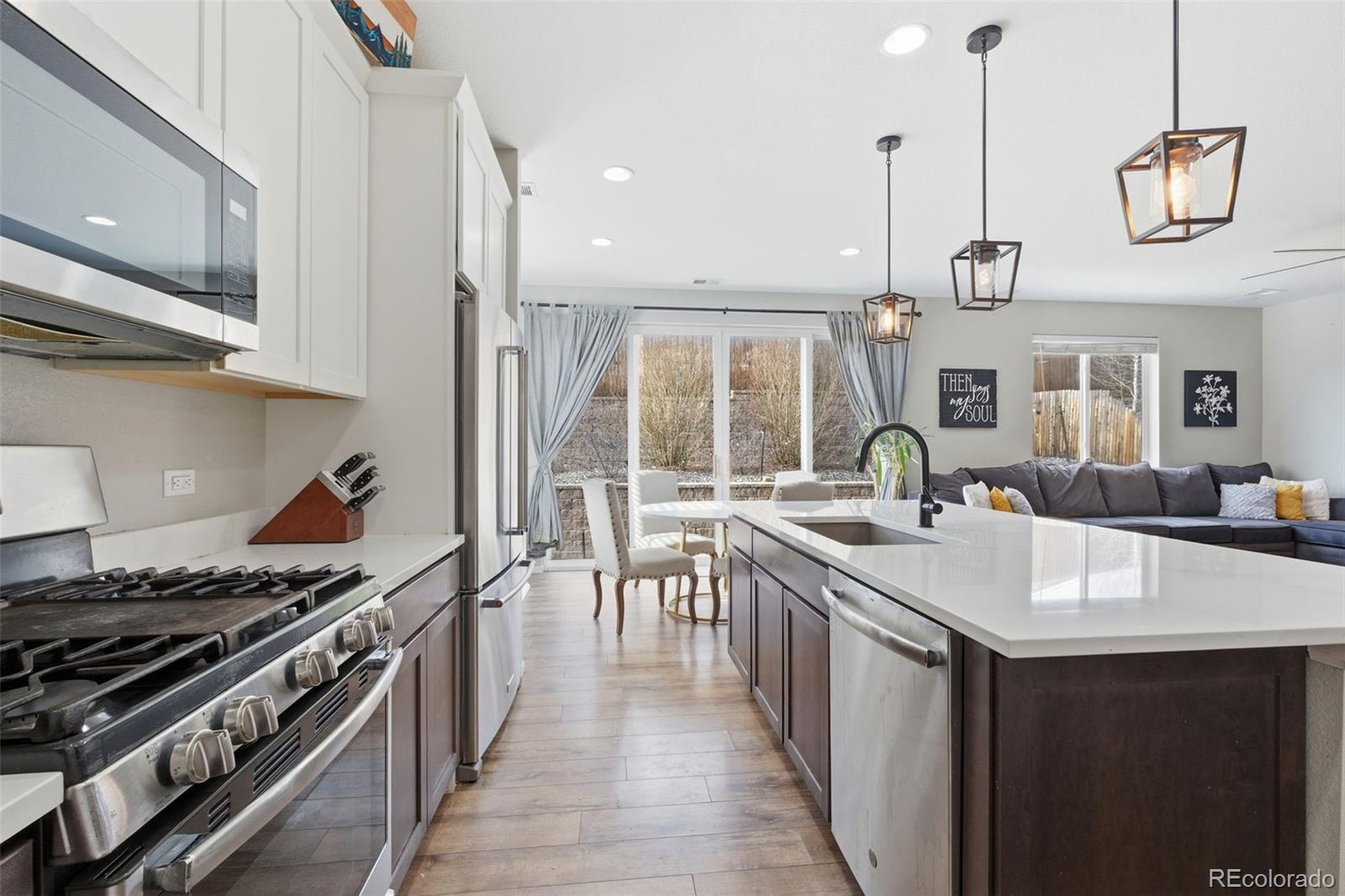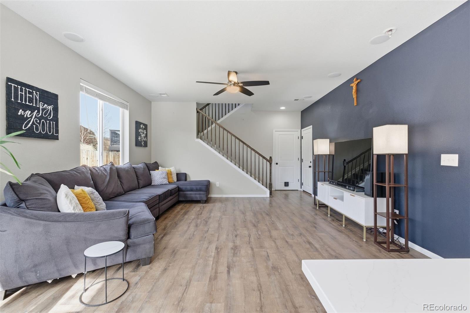 Welcome to 693 Blue Teal Street, a beautifully maintained 3 bedroom, 3 bath home with a 2 car garage in the sought-after Founders Village neighborhood of Castle Rock. This move-in-ready home features a modern kitchen with quartz countertops, a large center island, gas range, and an open-concept floor plan with high ceilings that create a bright and spacious atmosphere. The primary suite includes a walk-in closet and private ensuite bath. Upstairs, a large family room provides flexible space for a second living area, media room, home office, or bonus room. The landscaped backyard features a sprinkler system for easy maintenance and outdoor enjoyment. Community amenities include pool, clubhouse, trails, and tennis courts. Conveniently located near parks, shopping, dining, and major commuter routes, this Castle Rock home offers comfort, functionality, and a prime location.