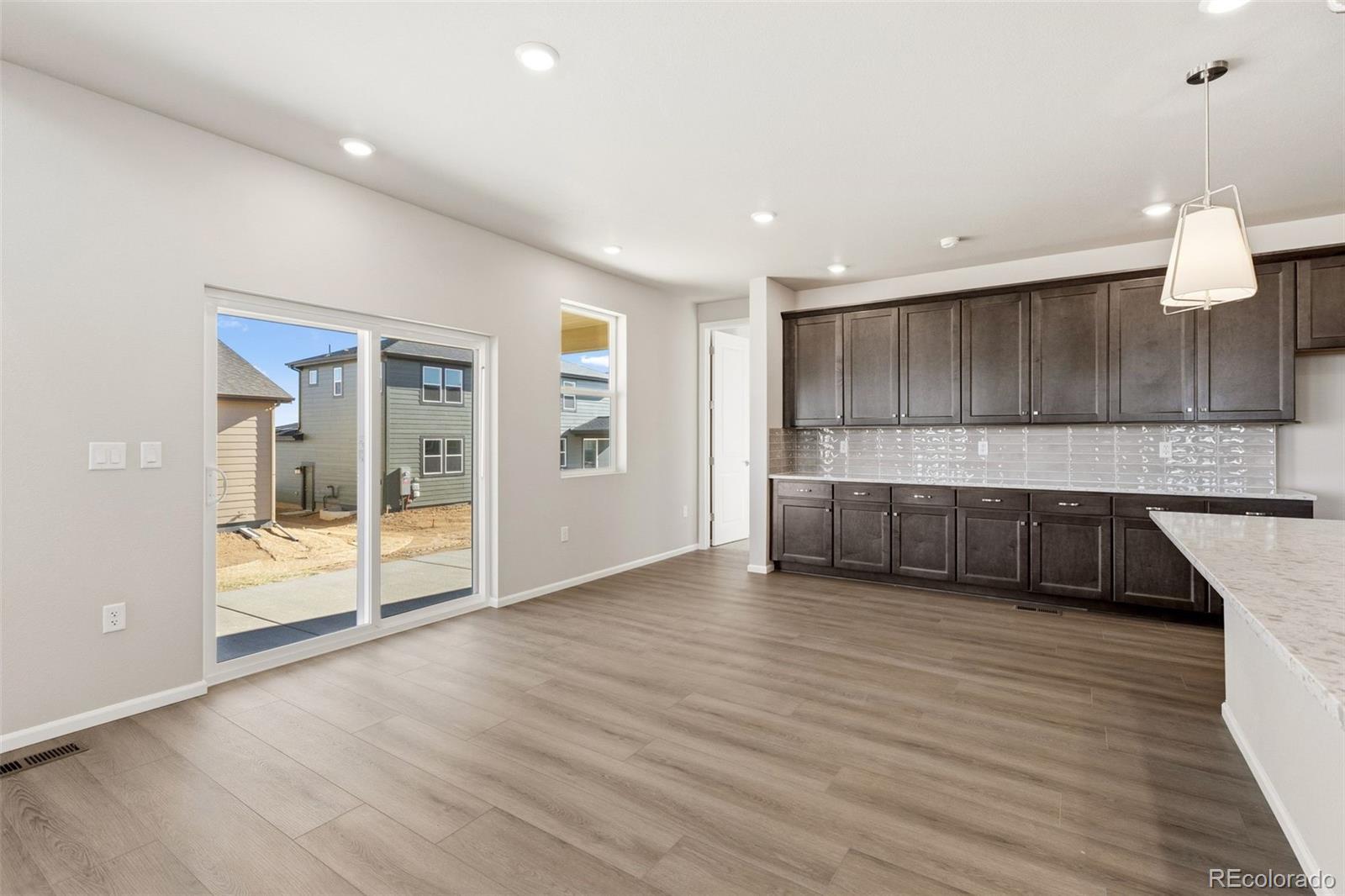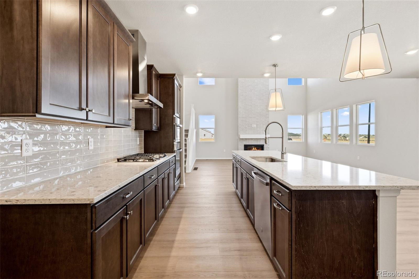 Introducing the highly sought-after 5006 floorplan — a stunning 3,263-square-foot residence offering 6 bedrooms, exceptional design, and remarkable versatility, perfectly positioned on a premium corner lot in Talon Pointe with a full basement. Step inside to a breathtaking two-story great room where soaring ceilings and expansive windows flood the space with natural light. A dramatic floor-to-ceiling tiled fireplace anchors the room, creating a striking architectural focal point and an inviting atmosphere for gathering and relaxing. The chef's kitchen is thoughtfully designed for both elevated entertaining and everyday living, featuring a sleek cooktop with statement hood, abundant cabinetry, generous prep space, and seamless flow into the dining area and great room. Whether hosting holidays or enjoying a quiet evening at home, this layout delivers effortless function and style. Extend your living outdoors to the covered patio — ideal for year-round Colorado enjoyment. With six generously sized bedrooms, this home offers rare flexibility. Two private en-suite bedrooms — including one conveniently located on the main level — provide ideal accommodations for guests or multi-generational living. Upstairs, spacious secondary bedrooms accompany a luxurious primary retreat complete with a spa-inspired five-piece bath designed for comfort and relaxation. Built with care and meticulous attention to detail, every space reflects thoughtful planning and elevated finishes. A three-car garage provides ample storage, while the corner lot enhances privacy and curb appeal. Located just four minutes from E-470, Talon Pointe offers unmatched accessibility to DIA, the Denver Tech Center, downtown, mountain recreation, and exceptional shopping and dining. Residents enjoy a massive community park and integrated trail system, creating the perfect balance of convenience and outdoor lifestyle.