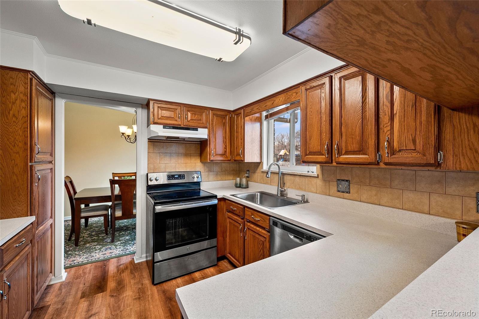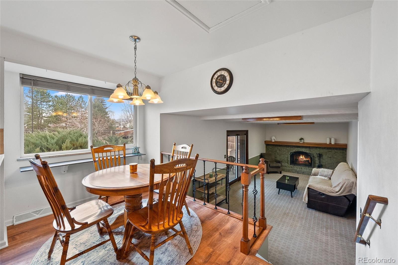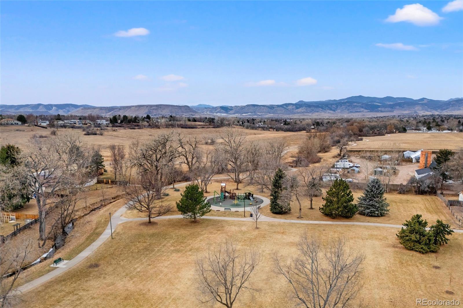 Spacious five-bedroom, four-bath home with 1,672 square feet, ideally situated on a .29-acre corner lot in a cul-de-sac with no HOA. Vaulted ceilings highlight the great room, which flows seamlessly into the dining area and eat-in kitchen. The main level features new wood flooring, while the lower-level den offers a cozy wood-burning fireplace with a classic brick surround. Upstairs, you’ll find three bedrooms, including a primary suite with a beautifully remodeled three-quarter en-suite bath, plus an additional full bath. The basement includes two non-conforming bedrooms, flexible living space, and a remodeled three-quarter bathroom. A brand-new water heater has recently been installed. The backyard is a true retreat, featuring a covered patio wrapped in a flourishing grapevine, raspberry bushes, raised vegetable and herb garden beds with lavender and mint, and multiple fruit trees including apple, peach, and plum. Additional highlights include ample RV parking, with it's own street access gate, and a storage shed. Ralston Creek Trail runs right by the property, with easy access to Kendrick Park and Apex amenities, making this Arvada home a rare blend of space, privacy, and outdoor living.