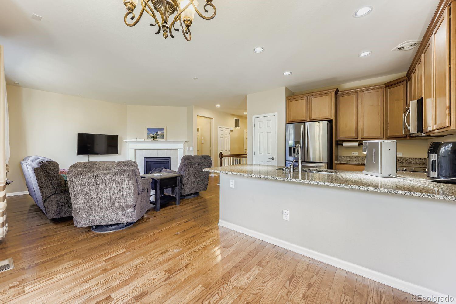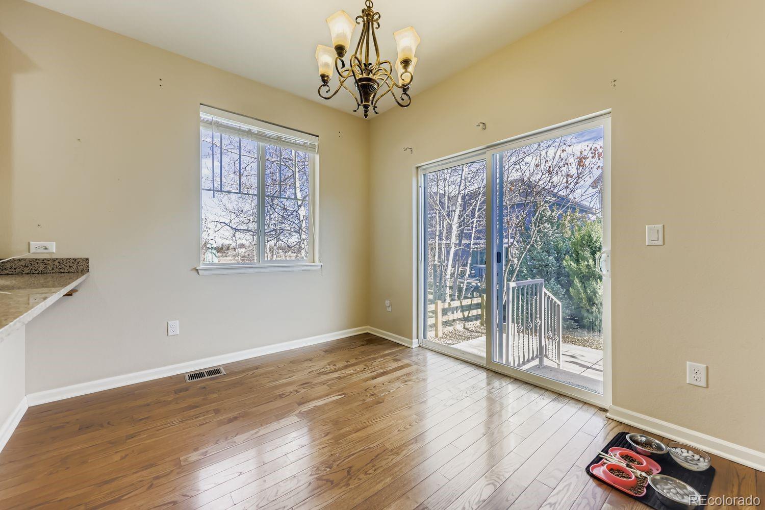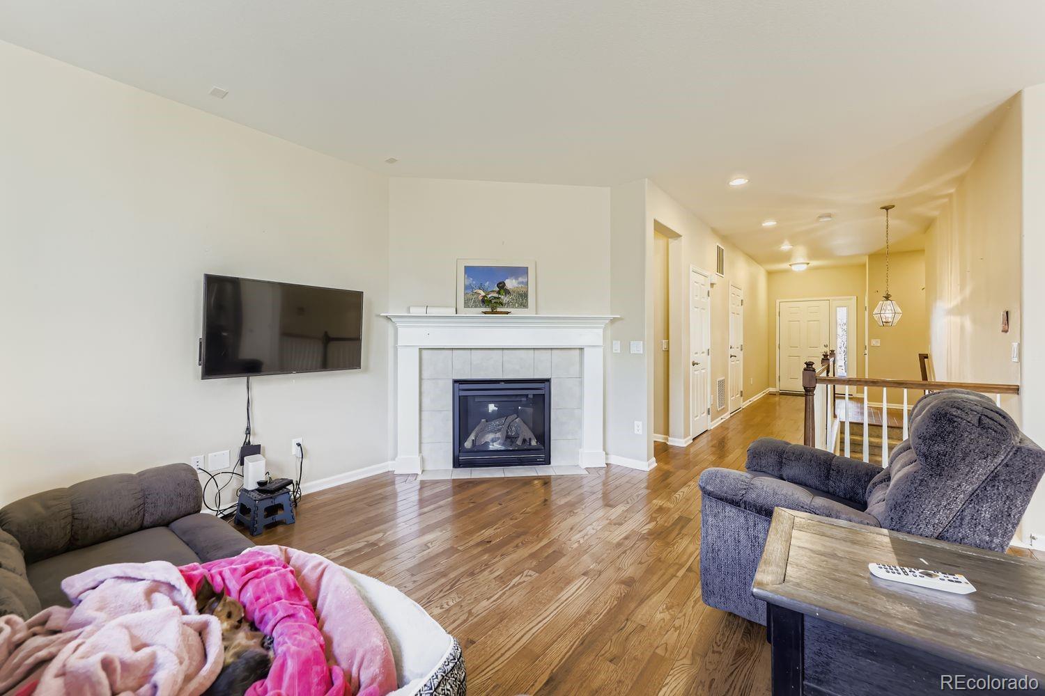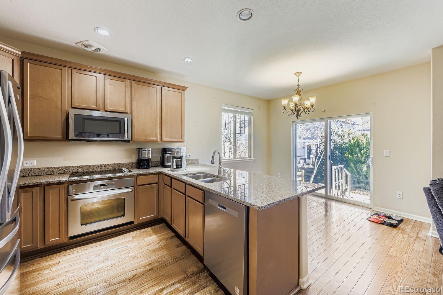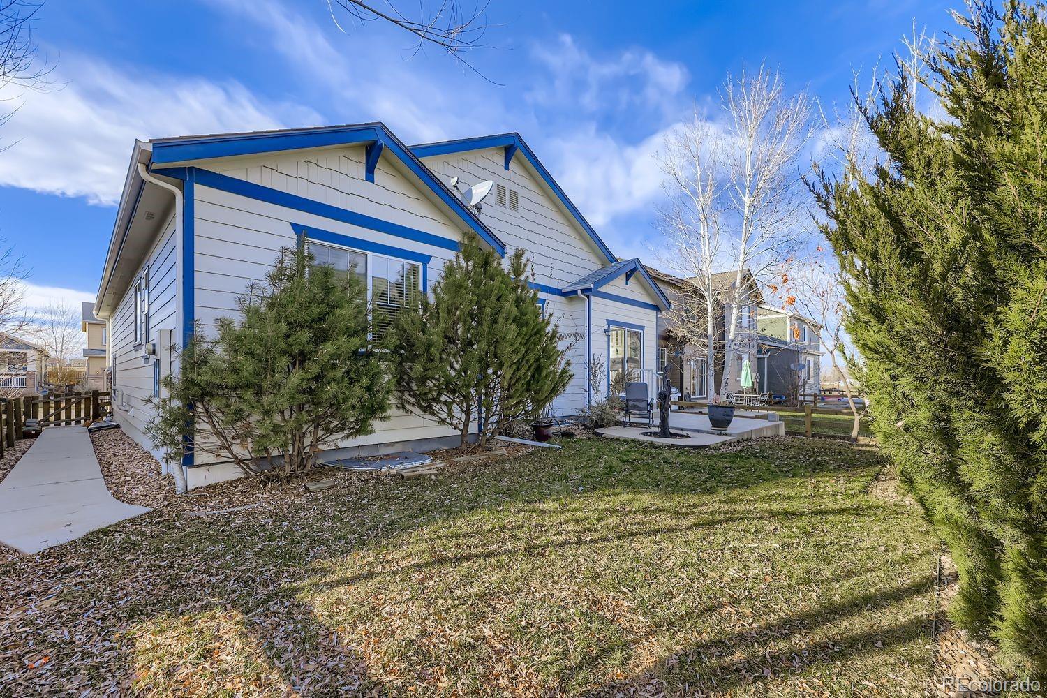 Well-maintained 4-bedroom, 3-bath ranch in Erie Commons, located on a quiet no-through street just steps from Erie Community Park. The main level features an open floor plan with hardwood floors throughout the common areas, plus a kitchen with granite countertops and stainless steel appliances. The primary suite is situated on one end of the home for added privacy, while two additional bedrooms and a full hall bath are located on the opposite wing. The partially finished basement includes a bedroom with an en-suite bath, with the remaining space unfinished and ready for future expansion. Additional highlights include new carpet in the bedrooms, a 2-car attached garage, a Class 3 impact-resistant roof installed in September 2023, and fresh exterior paint completed in November 2023. Erie Community Park offers multiple playgrounds, walking trails, athletic fields, a ballfield complex, pump track, skate park, turf fitness area, sledding hill, and cozy reading nooks. Old Town Erie, with its growing selection of restaurants and shops, is just minutes away. HOA amenities include common area insurance, garbage/recycling service, landscape and snow removal of common areas, community pool, and playground. **Unfinished basement photos not included, but the space can be viewed in the 3D tour.