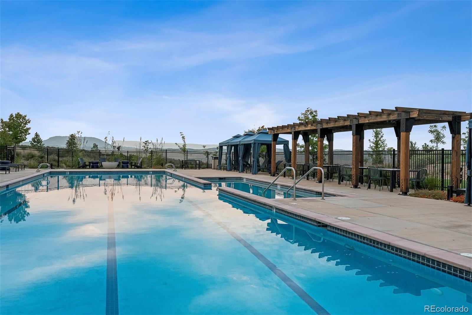 Welcome to the Regency neighborhood of Montaine, a vibrant 55+ community in Castle Rock, recently named one of the nation’s top cities for quality of life. Discover refined living in this Toll Brothers Boyd floorplan, offering 5 bedrooms, 3 bathrooms, and 3,707 square feet of beautifully designed space. This 2021-built home is a rare find. Entertainment at its best. The fully finished basement is an entertainer’s dream, featuring a stylish mini kitchen/bar that makes hosting effortless. Step into your own state-of-the-art home theater, complete with projection video and immersive surround sound system that transforms every night into a movie night. Thoughtful upgrades and finishes throughout. With over $200,000 in post-construction upgrades, this home radiates luxury. The primary suite closet system adds smart organization, while custom built-in shelving and stonework framing the fireplace elevate the living room. The epoxy-finished two-car garage keeps things tidy, while the gorgeous custom bar brings warmth and character to gatherings. Designed for easy living. Low-maintenance landscaping makes this the ideal lock-and-leave retreat for snowbirds and travelers. A fenced yard provides peace of mind for your pets, while the greenbelt backdrop ensures both privacy and tranquility. After a day exploring nearby trails like Plum Creek or Castlewood Canyon State Park, relax and rejuvenate in your soaking tub in the primary retreat. Lifestyle and location at it’s best. Regency at Montaine is more than a neighborhood—it’s a lifestyle. Residents enjoy resort-style amenities including a clubhouse with full-time event coordinator, pool, hot tub, fitness center, tennis and pickleball courts, and miles of trails. With stunning mountain views and easy access to I-25, commuting or traveling is a breeze.