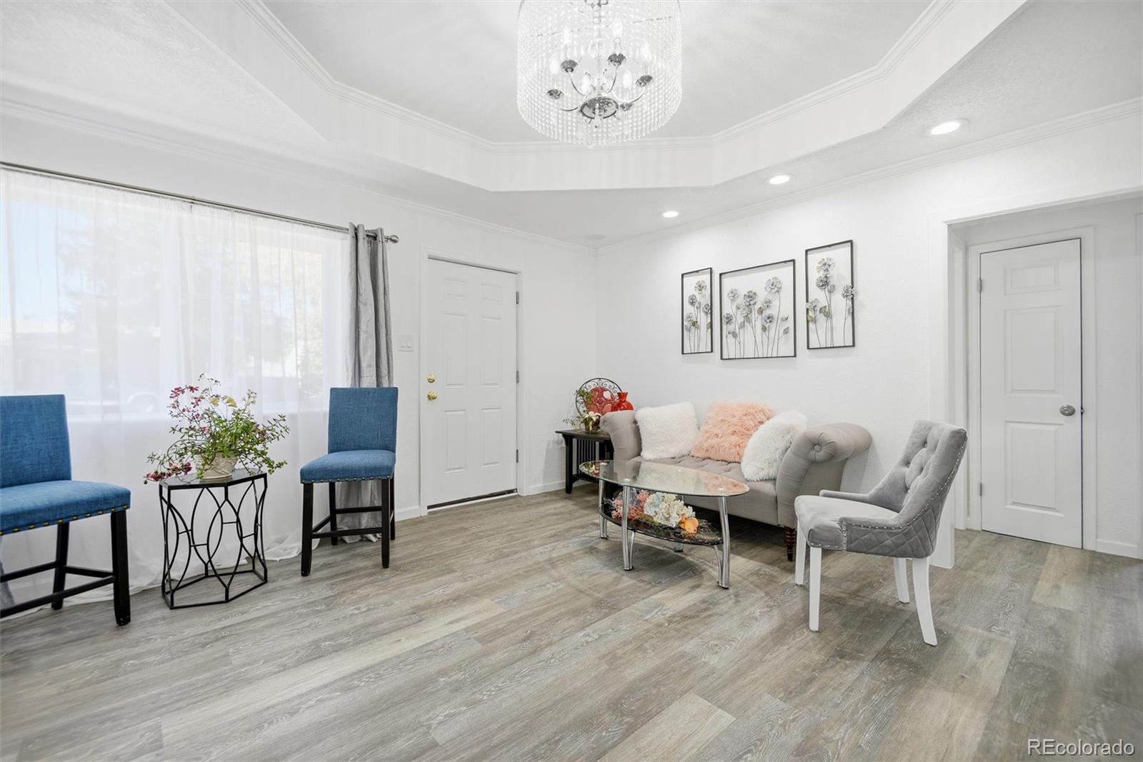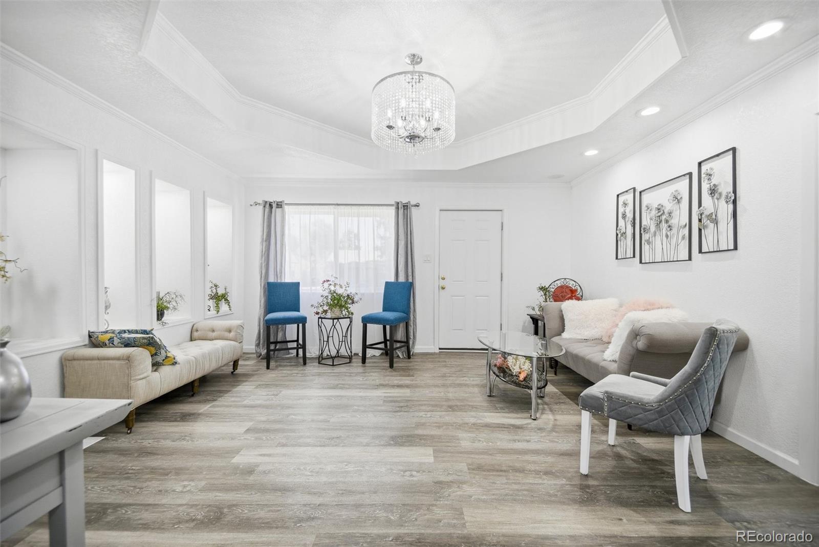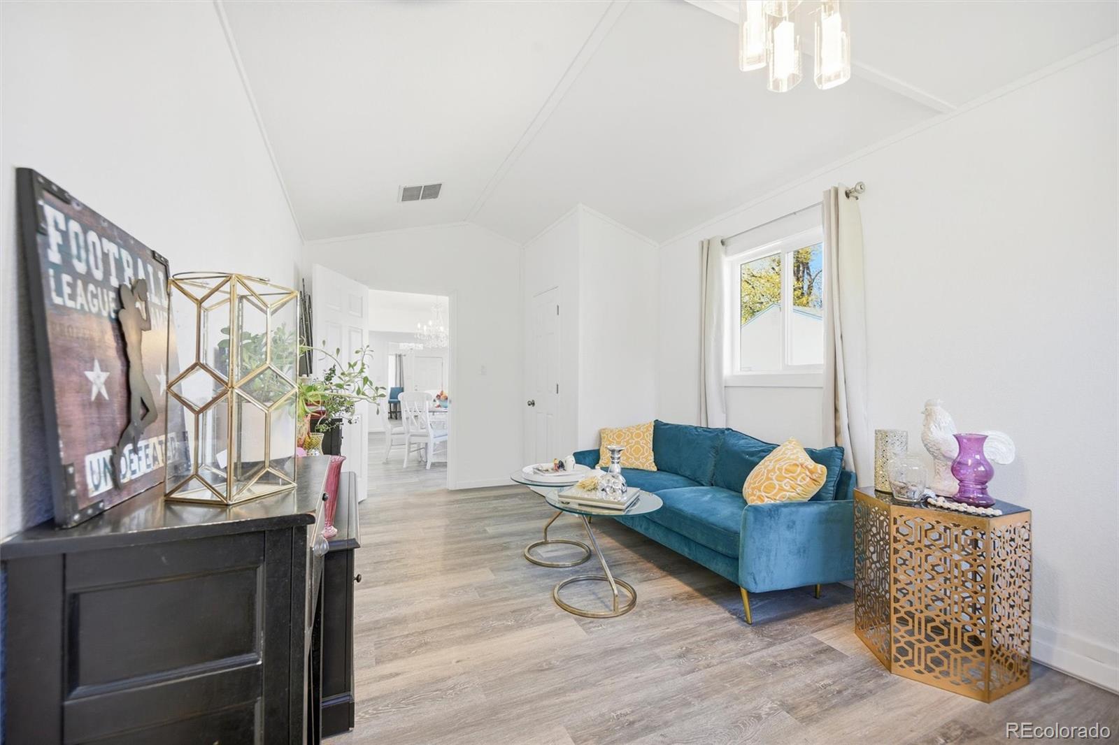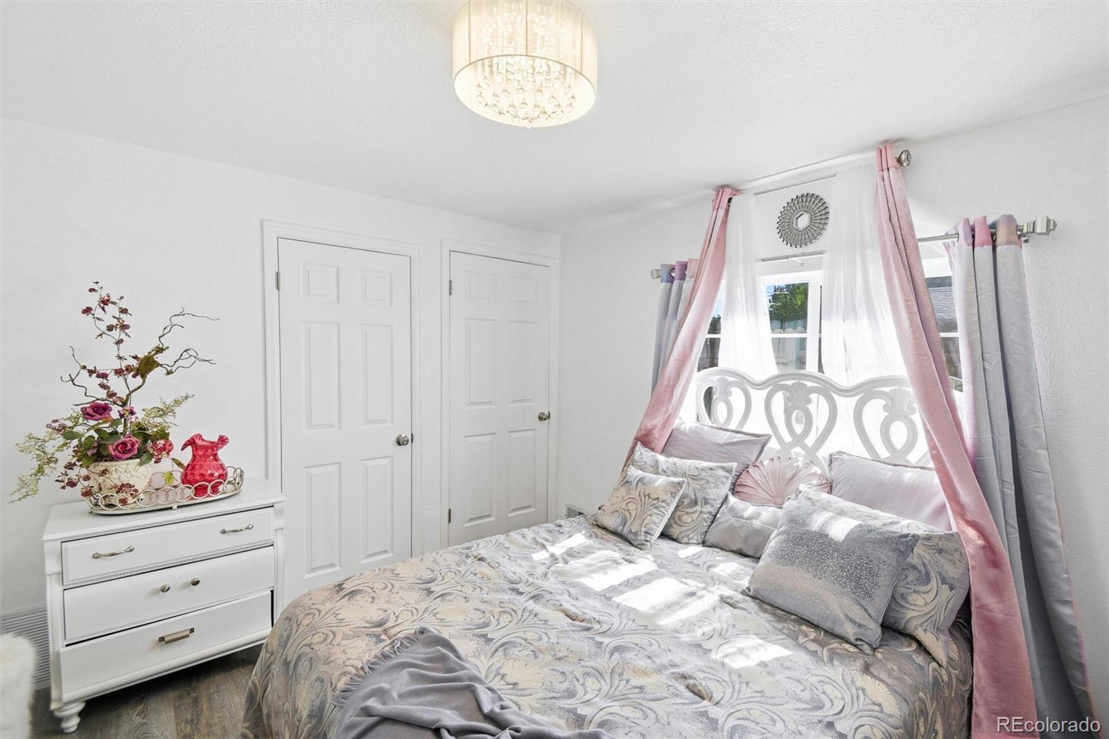 Beautifully Remodeled 4-bedroom Home with Custom Finishes and Ideal Location. Step into modern comfort and style with this completely renovated 4-bedroom, 2 full bath residence, thoughtfully designed for versatility and everyday living. The spacious layout features a private BONUS ROOM off the primary-perfect for a home office, nursery, or a personal retreat. The luxurious primary bedroom boasts 3 LARGE WALK-IN CLOSETS and an impressively large ensuite bath, complete with custom tile work and a spa-like soaking tub. FRONT BATHROOM HAS VAULTED CEILING, VERTICAL TILE TUB SURROUNDING AND BEAUTIFUL CHANDELIER. Three additional bedrooms offer ample spaces, including one with a private exterior entrance-ideal for guests, multigenerational living, or rental potential. Enjoy effortless flow throughout the home, highlighted by a bright and elegant family room with a UNIQUE OCTAGON-SHAPED RECESSED CEILING AND SLEEK CROWN MOLDING. The heart of the home is a brand new custom kitchen featuring quartz countertops, designer cabinetry, and stainless steel GE appliances, seamlessly connected to a stylish dining area-perfect for entertaining or cozy family meals. Additional features include: Spacious 2 CAR ATTACHED GARAGE, back storage attached to the back of house, beautifully landscaped front yard bursting wit vibrant flowers, prime central location just minutes from downtown, local coffee shops, popular restaurants, and with quick access to I-25 for convenient commute. Don't miss the opportunity to own this turnkey gem that combines thoughtful design, premium upgrades, and unbeatable location and price. Schedule a showing today before it gone!