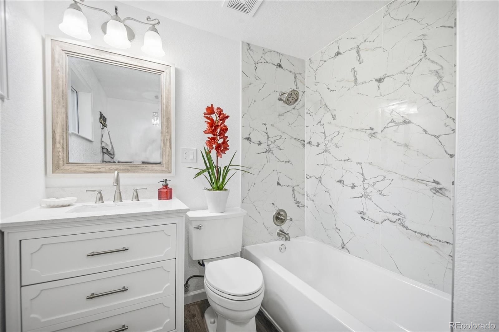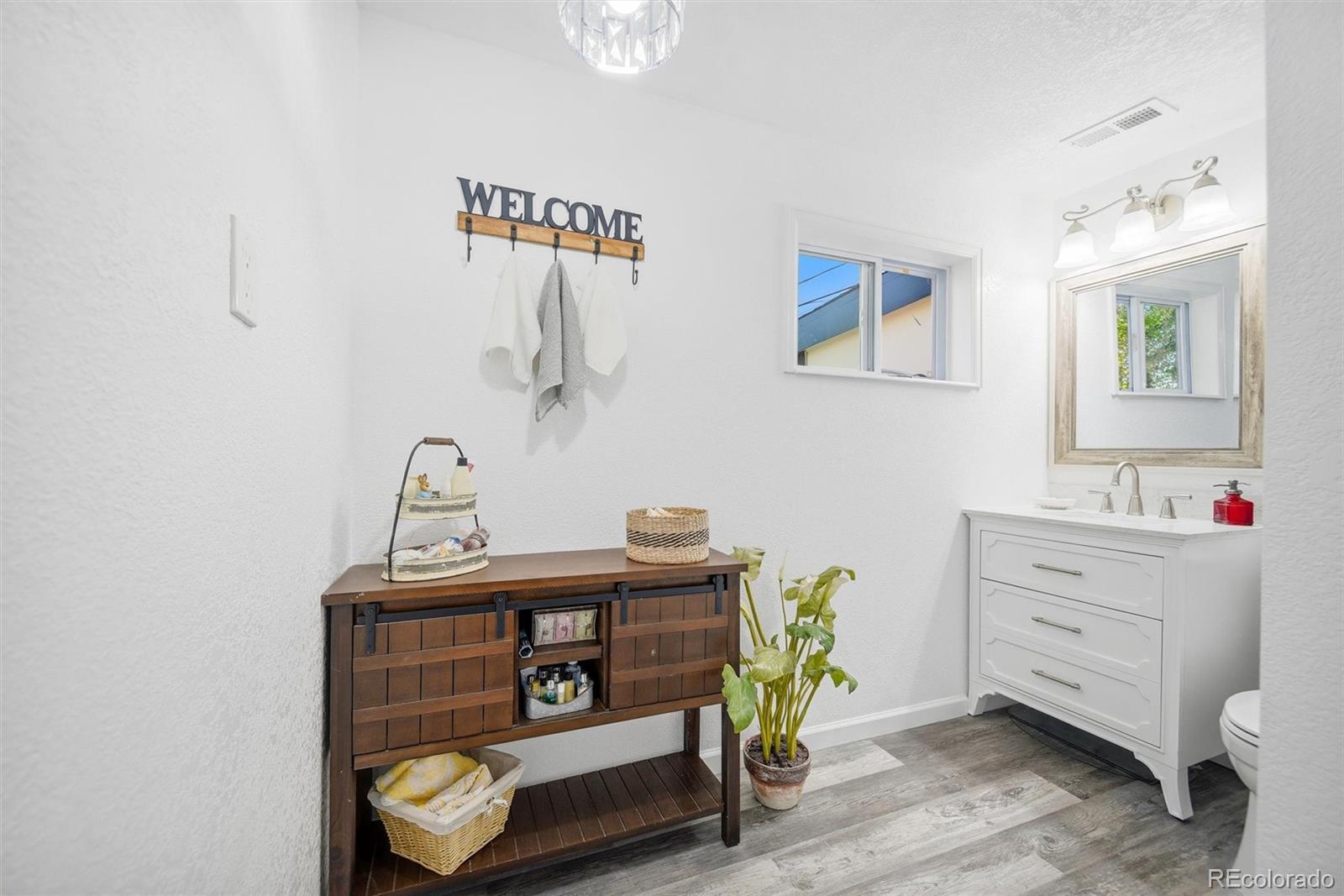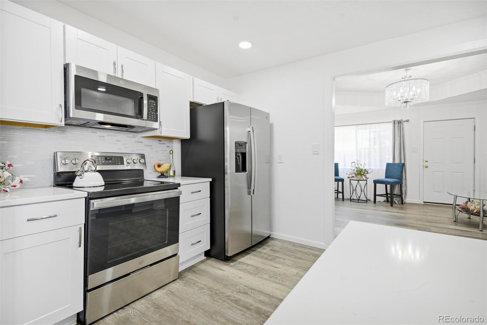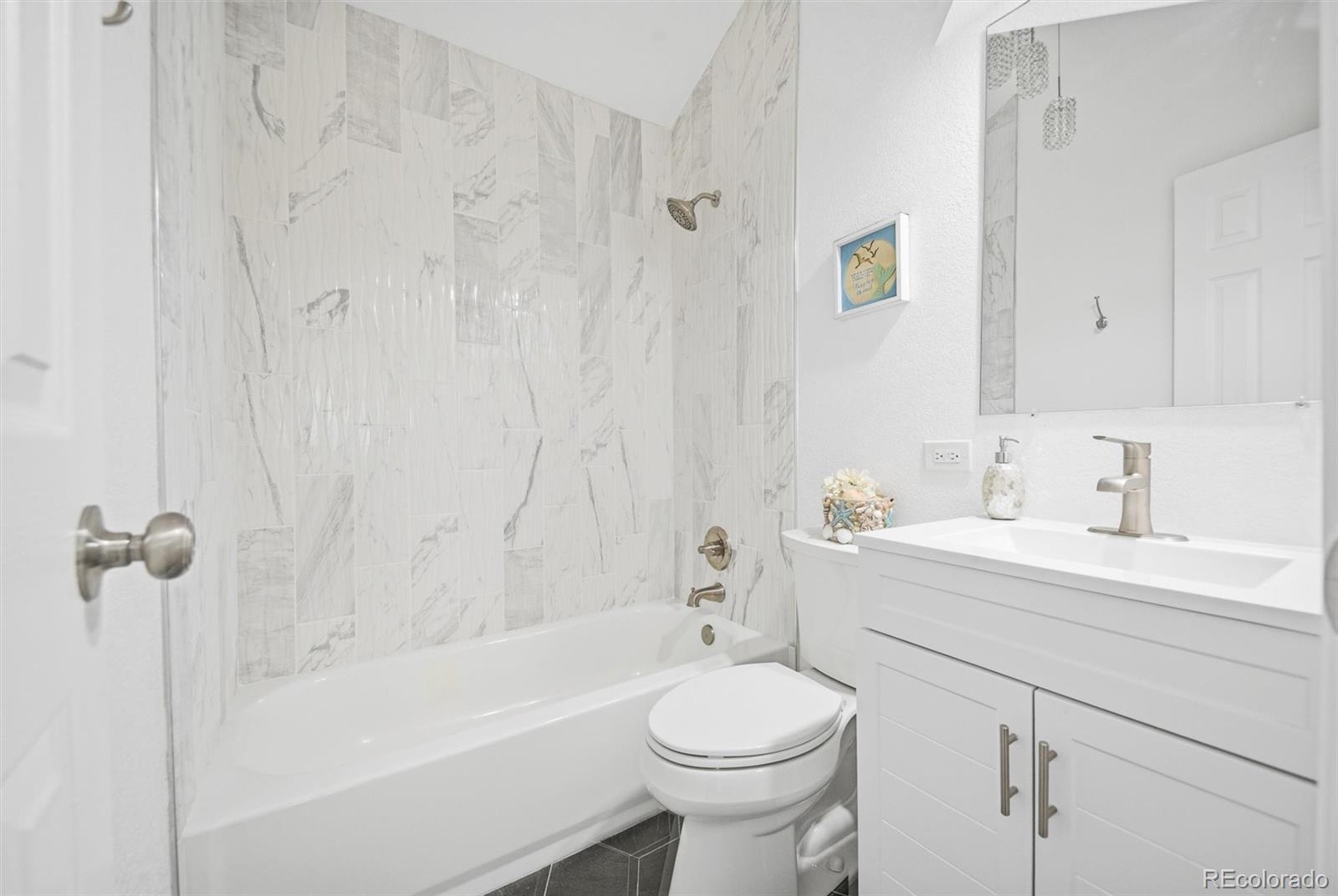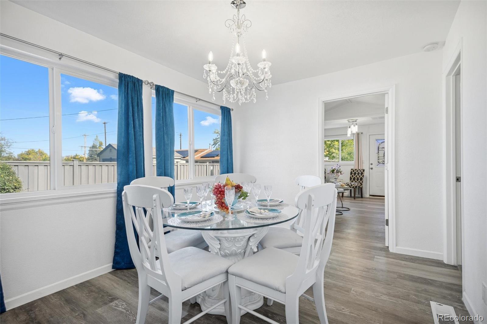 Beautifully Remodeled 4-bedroom Home with Custom Finishes and Ideal Location. Step into modern comfort and style with this completely renovated 4-bedroom, 2 full bath residence, thoughtfully designed for versatility and everyday living. The spacious layout features a private BONUS ROOM off the primary-perfect for a home office, nursery, or a personal retreat. The luxurious primary bedroom boasts 3 LARGE WALK-IN CLOSETS and an impressively large ensuite bath, complete with custom tile work and a spa-like soaking tub. FRONT BATHROOM HAS VAULTED CEILING, VERTICAL TILE TUB SURROUNDING AND BEAUTIFUL CHANDELIER. Three additional bedrooms offer ample spaces, including one with a private exterior entrance-ideal for guests, multigenerational living, or rental potential. Enjoy effortless flow throughout the home, highlighted by a bright and elegant family room with a UNIQUE OCTAGON-SHAPED RECESSED CEILING AND SLEEK CROWN MOLDING. The heart of the home is a brand new custom kitchen featuring quartz countertops, designer cabinetry, and stainless steel GE appliances, seamlessly connected to a stylish dining area-perfect for entertaining or cozy family meals. Additional features include: Spacious 2 CAR ATTACHED GARAGE, back storage attached to the back of house, beautifully landscaped front yard bursting wit vibrant flowers, prime central location just minutes from downtown, local coffee shops, popular restaurants, and with quick access to I-25 for convenient commute. Don't miss the opportunity to own this turnkey gem that combines thoughtful design, premium upgrades, and unbeatable location and price. Schedule a showing today before it gone!