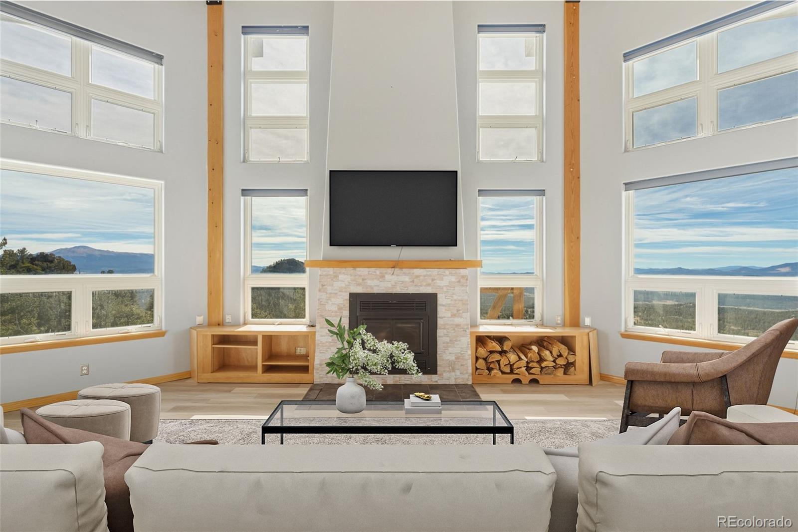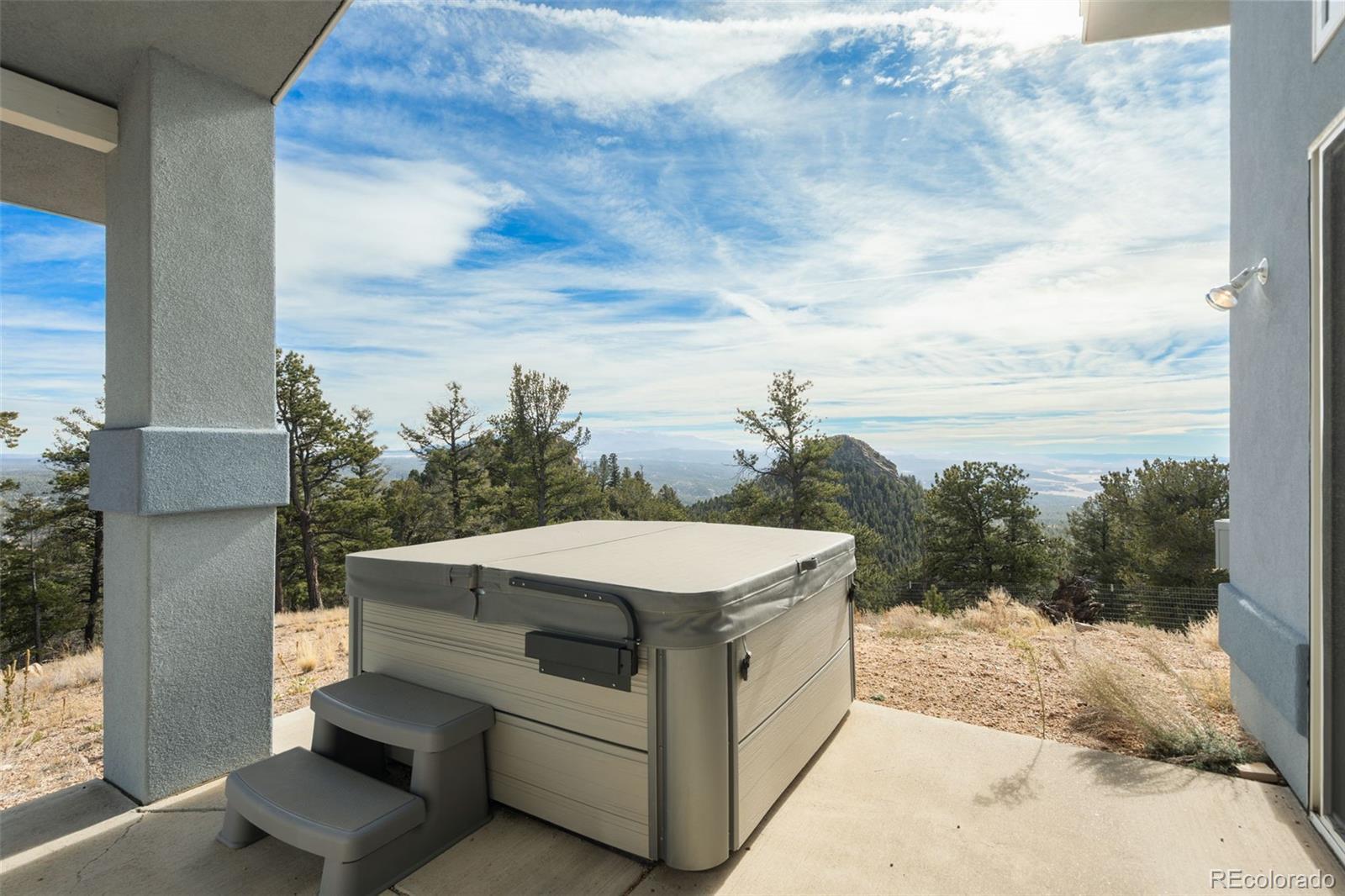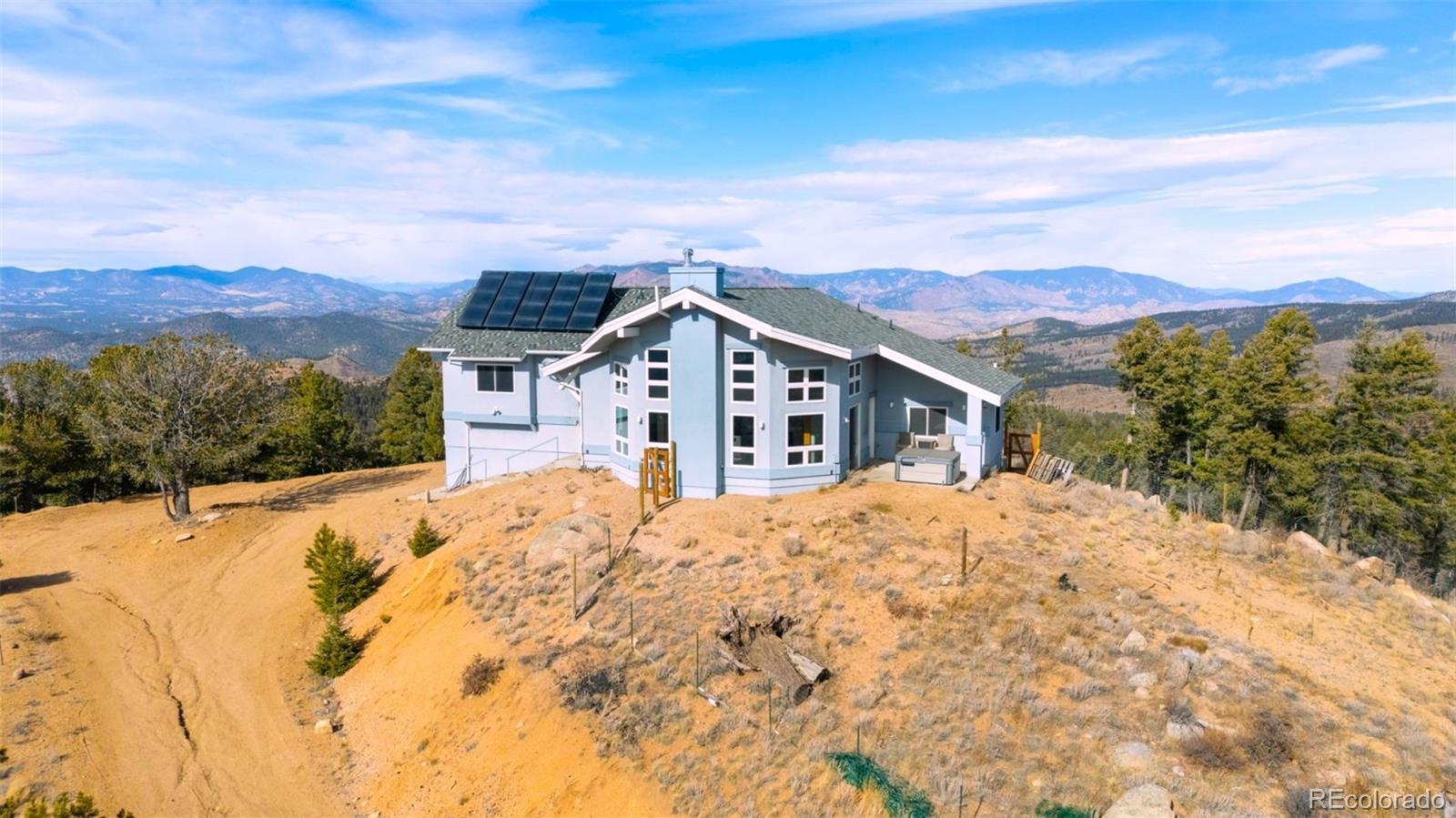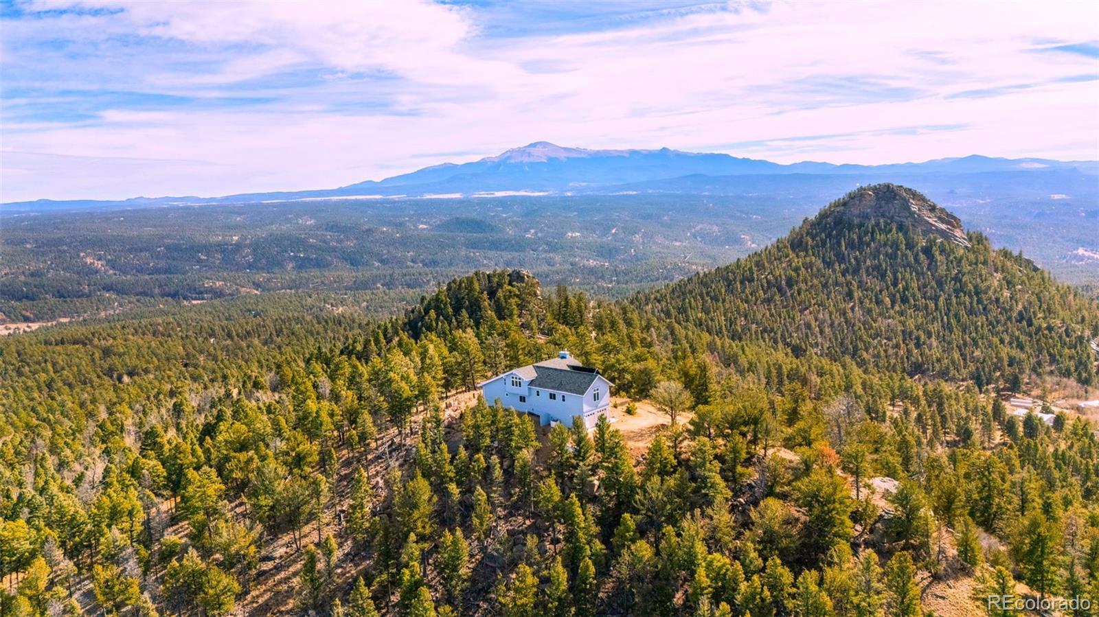 Colorado Living at its best, enjoy the high life at 9400 ft+ elevation, one of the highest points in the area! 360 degrees of spectacular views to include Crystal Peak and Pikes Peak! 14.71 Acres to enjoy the outdoors and 90 minutes from some premier ski resorts. Wood burning fireplace in the Great Room with tremendous natural light from the south facing wall of windows with endless views. The upper master bedroom has a 5-piece en-suite bath, walk in closet, and vaulted ceiling. The other 2 bedrooms are on the main level, with a full bath on the main level as well. Upstairs is a large Family room, 1/2 bath, and a space that could be used as an office that overlooks the Great room and has built in bookshelves. Walk out from the main level to the Hot Tub with tremendous views! There is an electric gate at the driveway entry, kind of your own fortress at the top of the mountain. 2 car garage with 8' garage doors. Active Solar radiant home heating and water heating saves a lot on propane costs. There is a propane boiler to supplement and backup the solar heating, the propane tank is owned. RV parking with septic hookups. New Roof 3/12/2025, class IV hail impact resistant shingle, saves on insurance. Ask your lender about significant Community Reinvestment Act incentives. Million-dollar views for much less, Come see this beautiful home today!