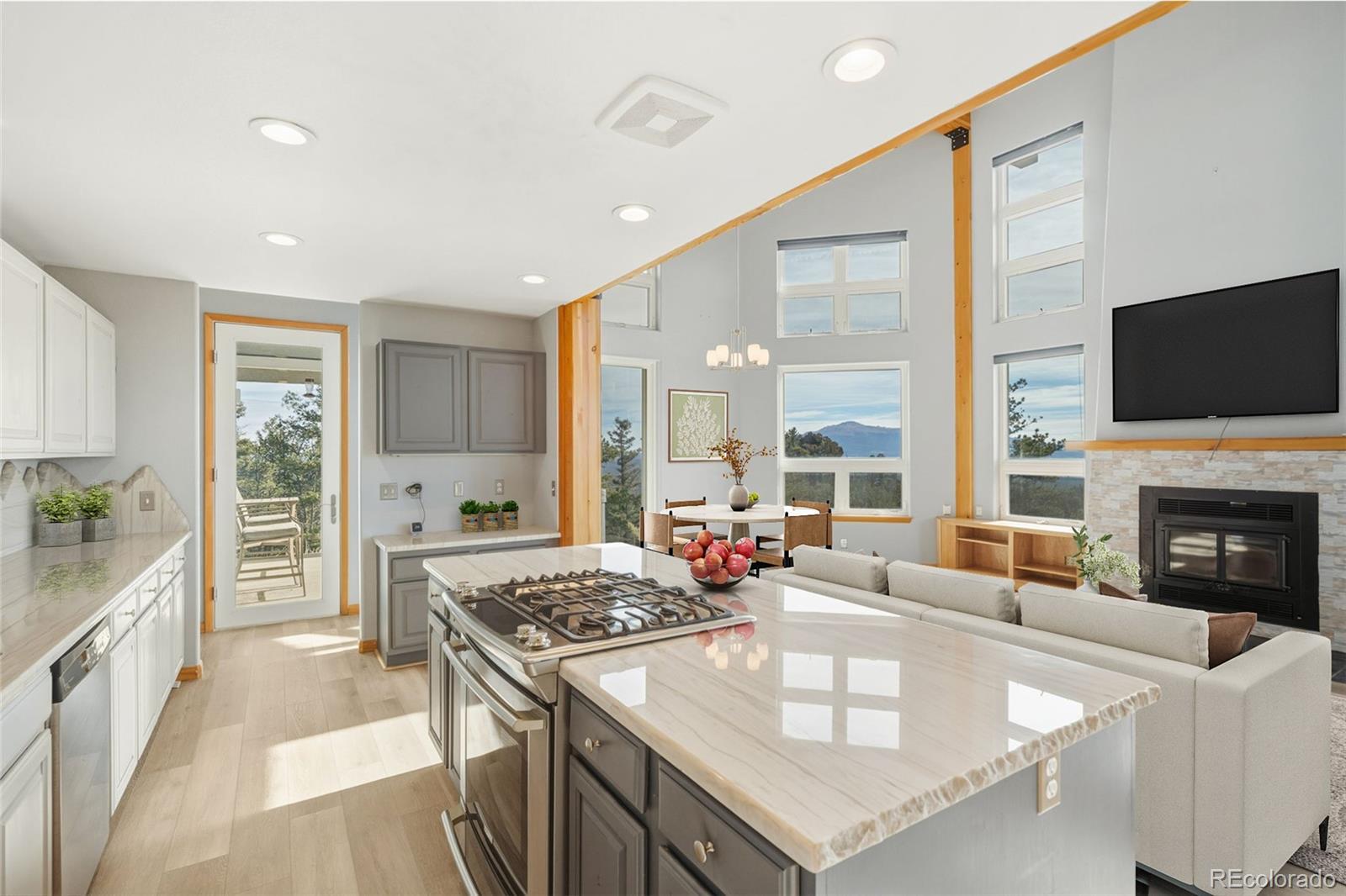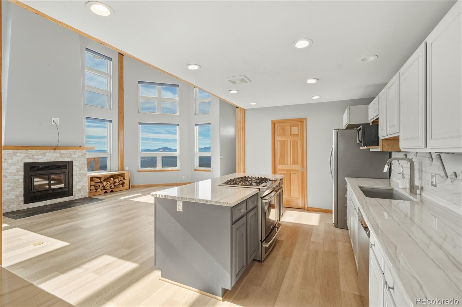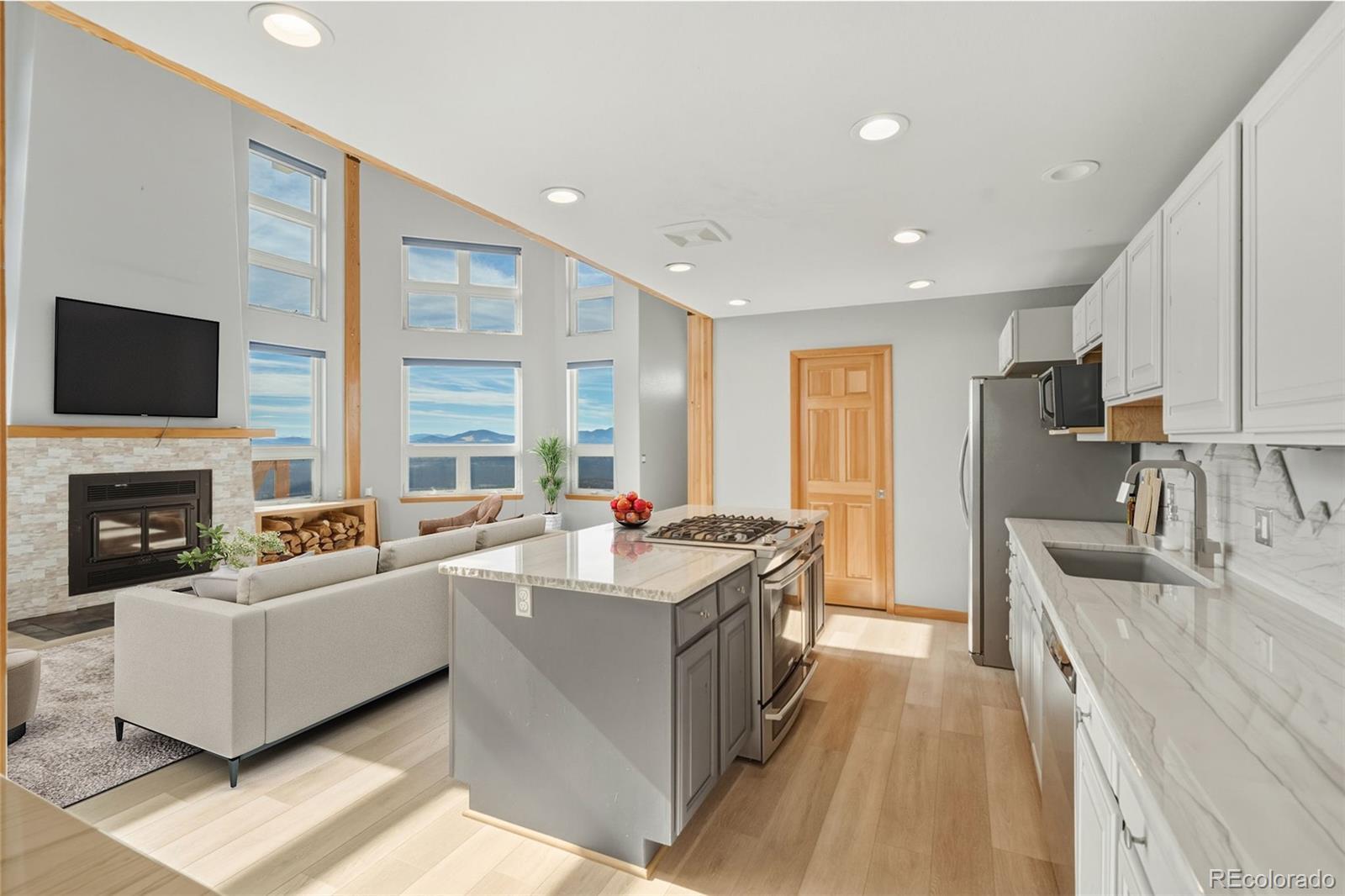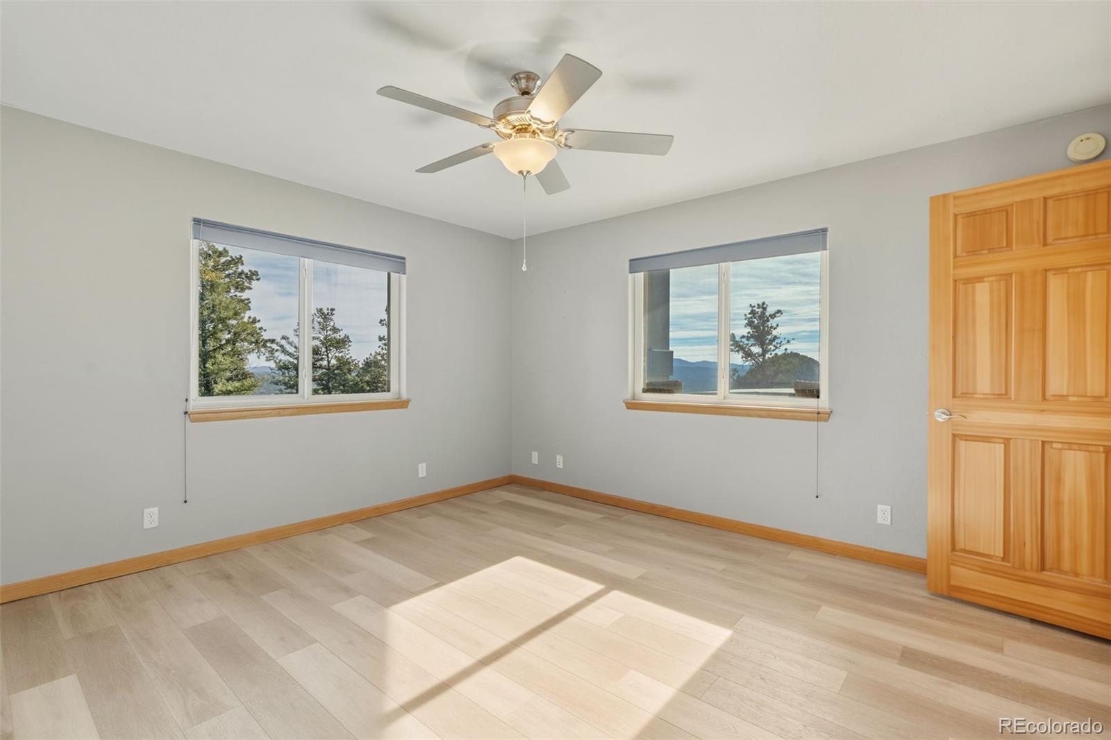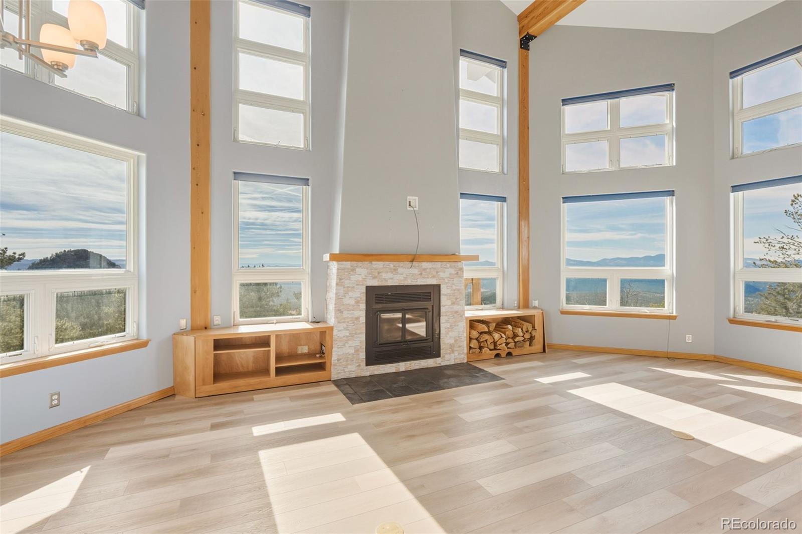 Colorado Living at its best, enjoy the high life at 9400 ft+ elevation, one of the highest points in the area! 360 degrees of spectacular views to include Crystal Peak and Pikes Peak! 14.71 Acres to enjoy the outdoors and 90 minutes from some premier ski resorts. Wood burning fireplace in the Great Room with tremendous natural light from the south facing wall of windows with endless views. The upper master bedroom has a 5-piece en-suite bath, walk in closet, and vaulted ceiling. The other 2 bedrooms are on the main level, with a full bath on the main level as well. Upstairs is a large Family room, 1/2 bath, and a space that could be used as an office that overlooks the Great room and has built in bookshelves. Walk out from the main level to the Hot Tub with tremendous views! There is an electric gate at the driveway entry, kind of your own fortress at the top of the mountain. 2 car garage with 8' garage doors. Active Solar radiant home heating and water heating saves a lot on propane costs. There is a propane boiler to supplement and backup the solar heating, the propane tank is owned. RV parking with septic hookups. New Roof 3/12/2025, class IV hail impact resistant shingle, saves on insurance. Ask your lender about significant Community Reinvestment Act incentives. Million-dollar views for much less, Come see this beautiful home today!