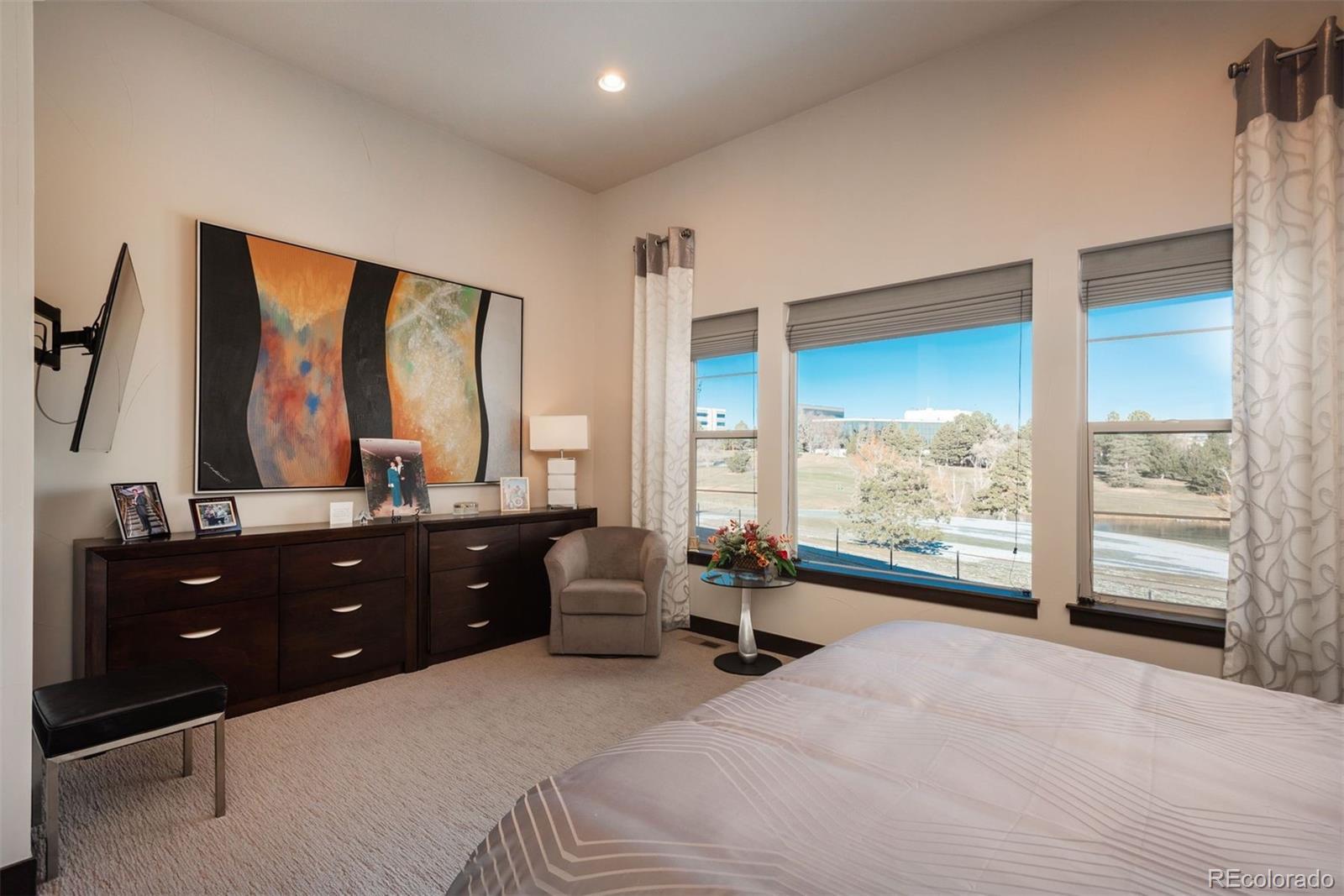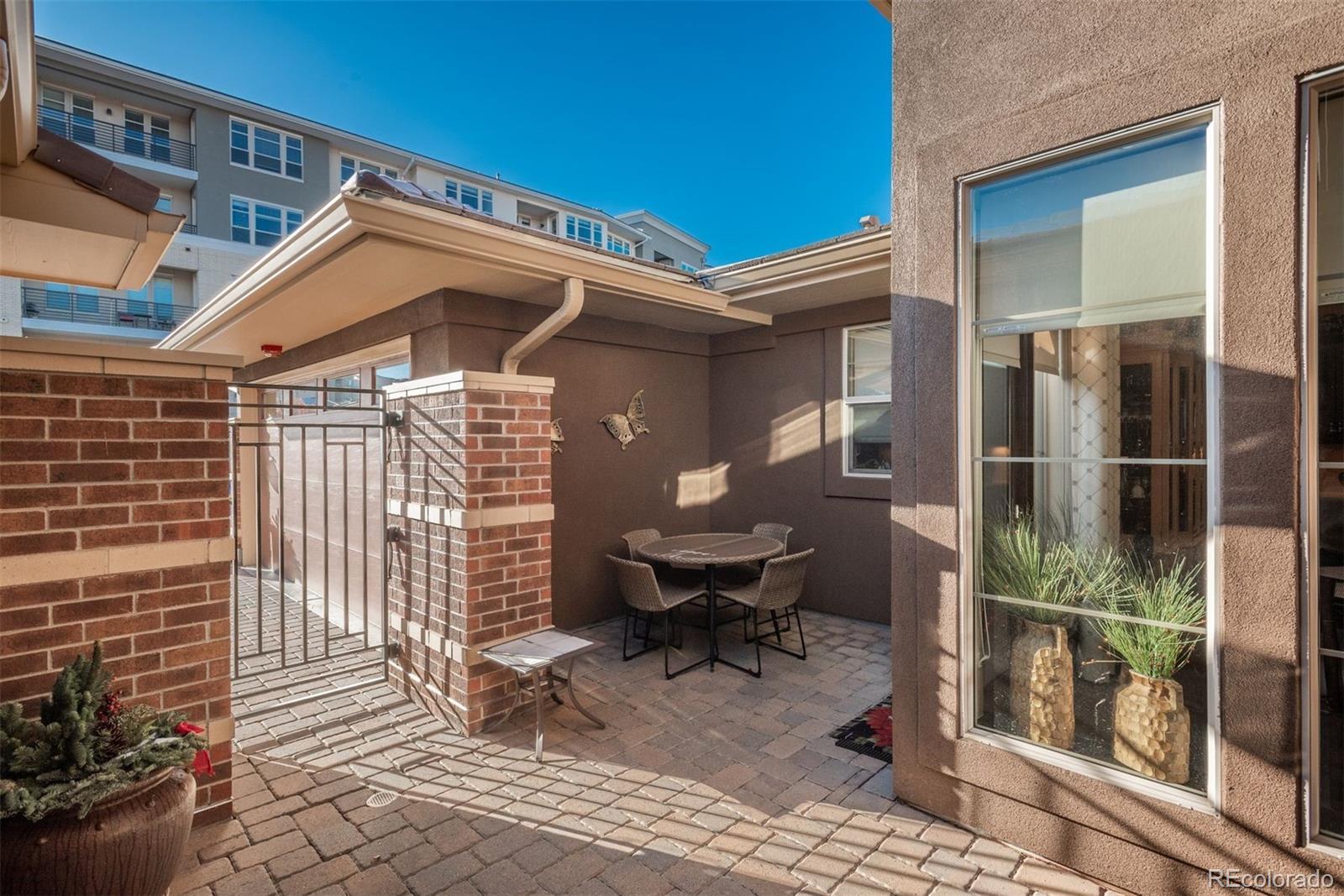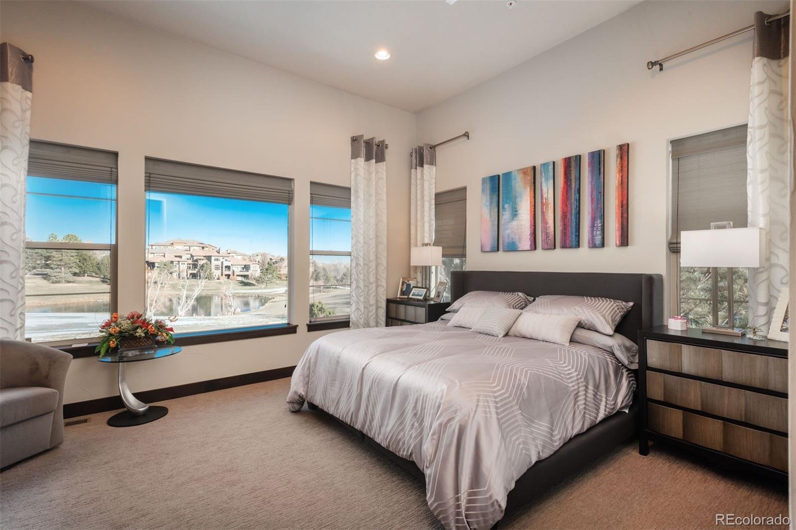 Welcome to this one of a kind, lock and leave home in the sought after gated community of Villas at Vallagio III. This former model home stands apart from every other ranch in Inverness, offering an additional 1,700 total sqft. With 3 beds, 4 baths, main floor office & a 3 car fully finished & insulated garage with epoxy floors & shelving, this home is loaded with upgrades including a built-in sound system, suede granite counters, & high end stainless steel appliances. The moment you enter through the private courtyard, you are welcomed by soaring 14 foot ceilings, an open floorplan, & wood floors that flow throughout the main living areas. The chef inspired kitchen features a large center island & exceptional cabinet space, opening seamlessly to the dining & family rooms for effortless entertaining. Nearly every room captures stunning views of a lake & the second fairway of the semi-private Inverness Golf Course, which can also be enjoyed from the covered deck or four-season patio below. The expansive primary suite offers a large picture window framing the golf course & lake views, along with a spa like bath featuring an oversized shower, soaking tub, & a custom walk-in closet. The fully finished walkout basement is an entertainer’s dream with a full wet bar, wine fridge, dishwasher, & space for a future wine room. Two additional bedrooms provide ideal guest accommodations; one designed as a second primary with an en-suite bath, the other adjacent to a three quarter bath. In addition to the upstairs laundry room a second full size washer & dryer set is also located in the basement. Restaurants, light rail are within walking distance & Park Meadows Mall is a short drive. Residents of Vallagio get a discount on social & golf memberships available at the nearby Hilton providing indoor/outdoor pool, pickleball, tennis, golf, gym, spa & restaurants. This exceptional home blends luxury, comfort, & unbeatable views in one of the south metros most desirable communities.