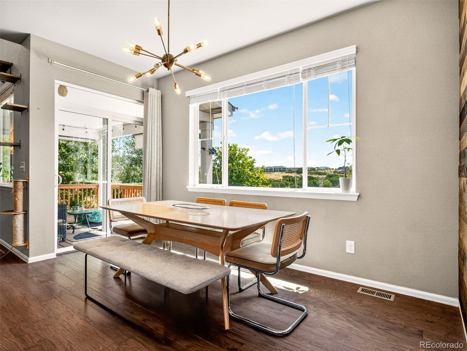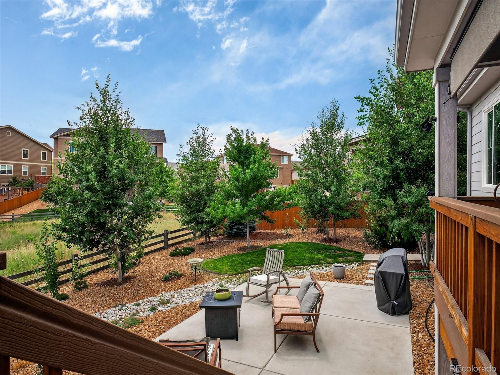Welcome to your ideal sanctuary in one of Castle Rock’s most popular open space communities! This beautiful 2-story, 3-bedroom, 4-bathroom DR Horton-built home offers breathtaking open-space views with visits from local wildlife right beyond your fence! A large second living area in the partially finished basement, plus modern upgrades including quartz countertops, elevated light fixtures, hardwood throughout the main floor and impressive vaulted ceilings! This home is just minutes from shopping, dining, and trails and located directly across from the Terrain Swim Club and Dog Bone Park. Step into a gourmet kitchen designed for both everyday living and entertaining—featuring engineered hardwood floors, a spacious island, quartz countertops, stainless steel appliances (all included!), and a walk-in pantry. The open-concept main level flows seamlessly from kitchen to living area and out to a covered deck—the perfect place to relax and soak in the serene open-space views. *The bedroom on the main level is non-conforming. Upstairs, retreat to the primary suite complete with a 5-piece ensuite bath and a generous walk-in closet. Two additional bedrooms offer comfortable space for family or guests. The garden-level basement invites natural light and endless possibilities for future expansion. Additional highlights include: a partially finished second basement living space offers a bonus living area for loads of room for entertaining with natural light and room to expand. 3-car garage with built-ins and bike storage, backyard facing open space with privacy and views. Access to the community pool, clubhouse, trails, and playground. All this in a prime location—just minutes from local schools, hiking trails, parks, and Castle Rock Adventist Hospital.