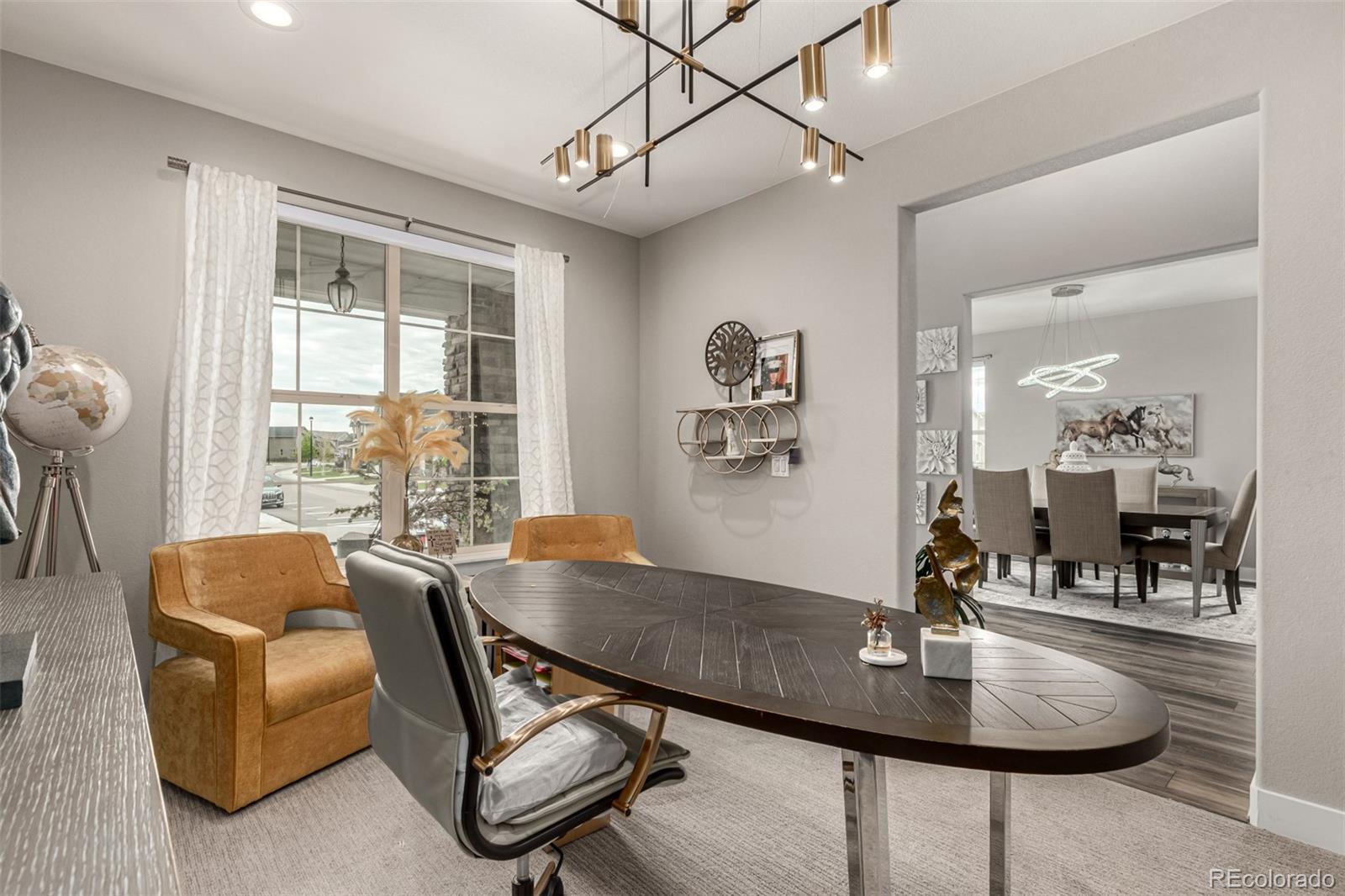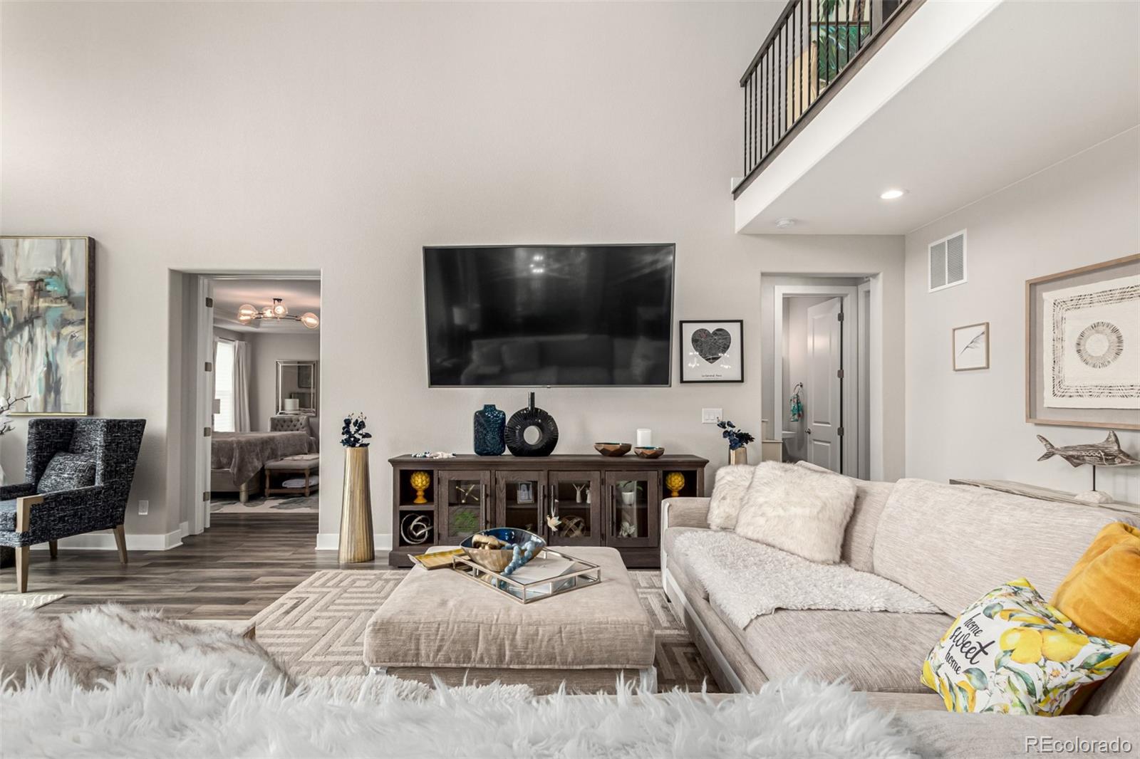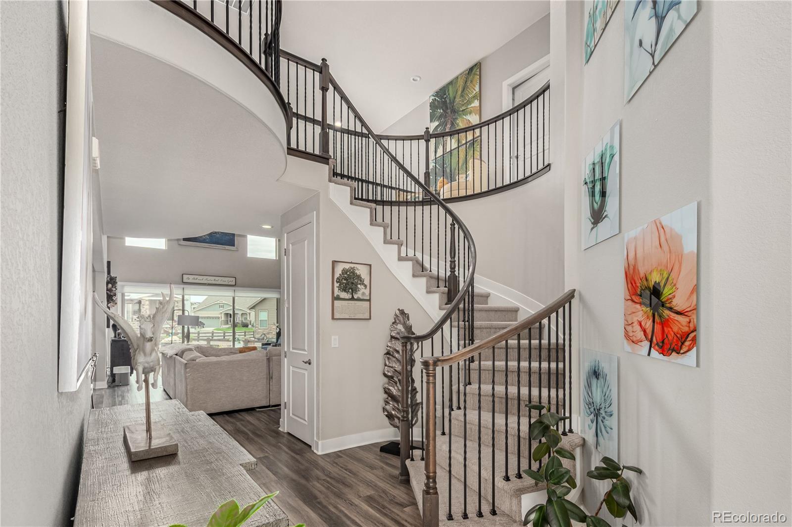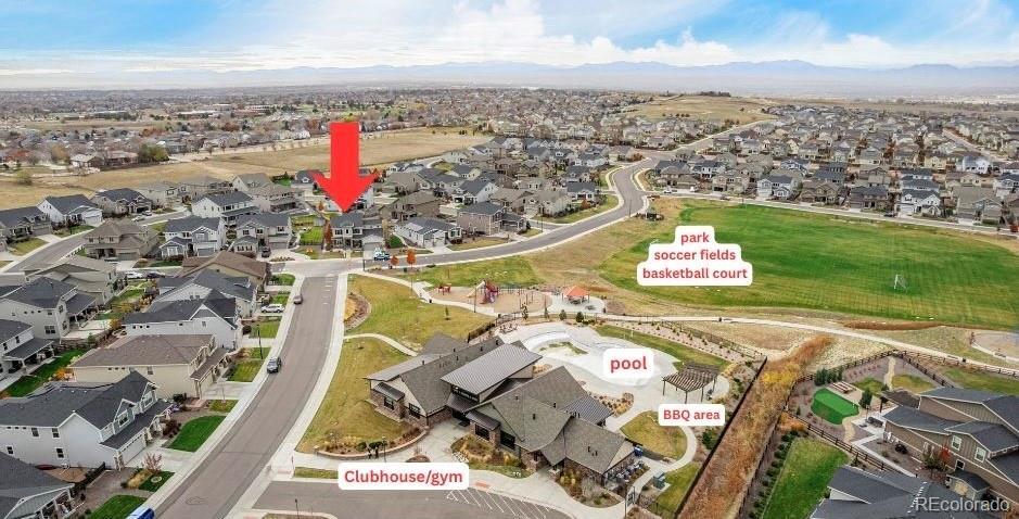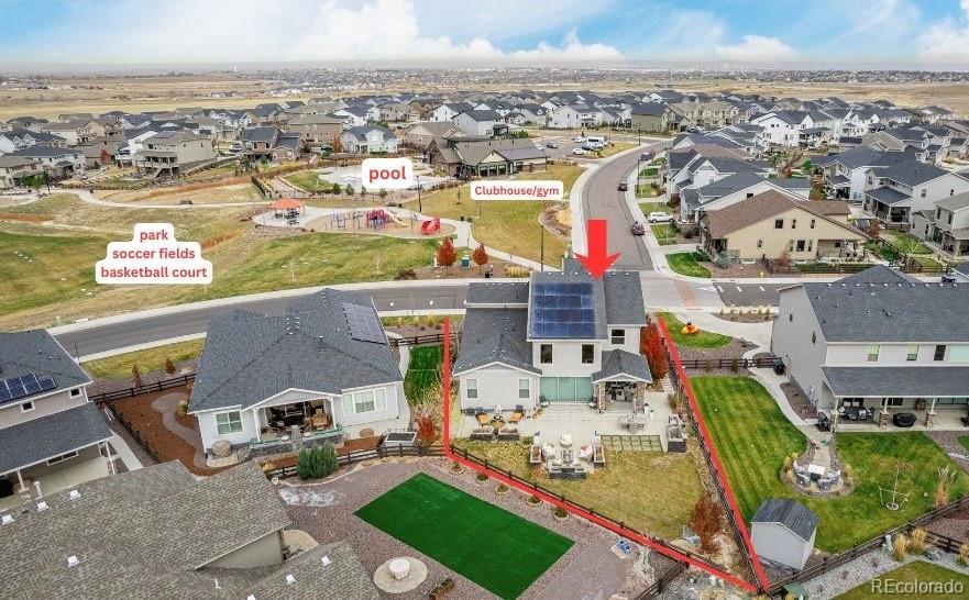 One of the few Thornton communities with a pool, gym, basketball court, parks, soccer field and more! This stunning Toll Brothers home is loaded with upgrades (over $100,000!) and comes with the unicorn feature everyone wants… a main-floor primary suite! Sitting on a large, park-facing lot just steps from the community pool, this home serves up prime location, beautiful curb appeal, and a huge backyard built for Colorado living-- complete with two outdoor patios, and dreamy professional landscaping. Walk inside to soaring vaulted ceilings and curved staircase, a bright front office, and a chic formal dining room with a butler’s pantry. The curved staircase makes a statement, but the real showstopper is the massive 30-ft sliding glass door that erases the line between indoors and outdoors. Hello, sunshine and indoor-outdoor flow! The kitchen? Absolute chef-core. Enjoy upgraded stainless appliances, a gas cooktop, double wall ovens, quartz counters, a walk-in pantry, custom cabinetry, and a center island perfect for breakfast, homework, or snack-tasting sessions. Need a quiet workspace or a creative hideaway? The main-level den has your back. Upstairs, the loft becomes your built-in cozy corner — ideal for reading, gaming, or sipping something warm while pretending you don’t have laundry to fold. Your main-floor primary suite feels like a private retreat with its spa-inspired bath featuring a soaking tub, double sinks, glass shower, walk-in closet, and luxe tile. Upstairs, every bedroom connects to a bathroom, making mornings smooth and drama-free. The huge basement unlocks endless possibilities: movie theater, game room, gym, hobby zone, guest quarters—whatever your life needs, this space can handle. This home also has solar, saving hundreds of dollars a month in electric bills! This home blends luxury, comfort, and function in all the right ways—come see why everyone loves living in this gorgeous Thornton community.
