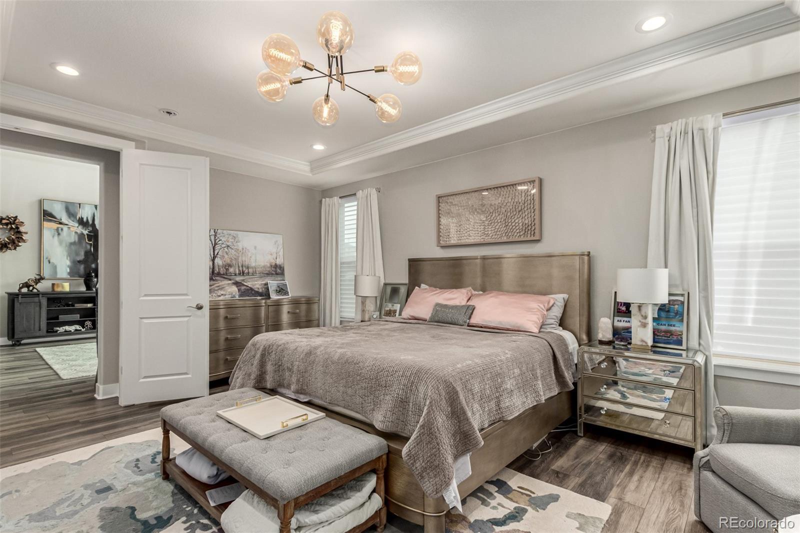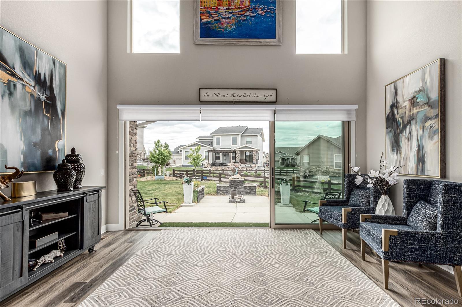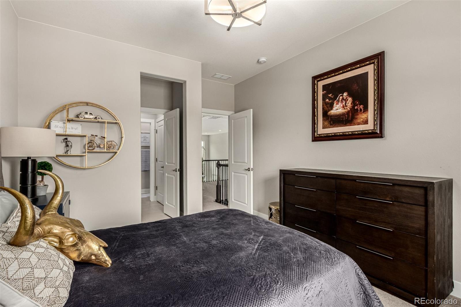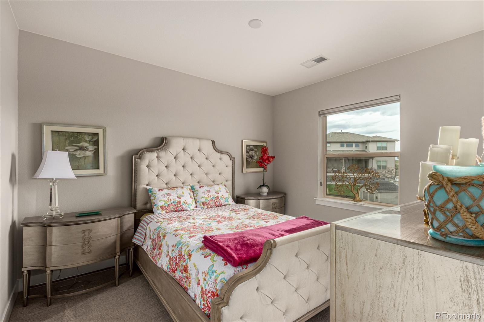 One of the few Thornton communities with a pool, gym, basketball court, parks, soccer field and more! This stunning Toll Brothers home is loaded with upgrades (over $100,000!) and comes with the unicorn feature everyone wants… a main-floor primary suite! Sitting on a large, park-facing lot just steps from the community pool, this home serves up prime location, beautiful curb appeal, and a huge backyard built for Colorado living-- complete with two outdoor patios, and dreamy professional landscaping. Walk inside to soaring vaulted ceilings and curved staircase, a bright front office, and a chic formal dining room with a butler’s pantry. The curved staircase makes a statement, but the real showstopper is the massive 30-ft sliding glass door that erases the line between indoors and outdoors. Hello, sunshine and indoor-outdoor flow! The kitchen? Absolute chef-core. Enjoy upgraded stainless appliances, a gas cooktop, double wall ovens, quartz counters, a walk-in pantry, custom cabinetry, and a center island perfect for breakfast, homework, or snack-tasting sessions. Need a quiet workspace or a creative hideaway? The main-level den has your back. Upstairs, the loft becomes your built-in cozy corner — ideal for reading, gaming, or sipping something warm while pretending you don’t have laundry to fold. Your main-floor primary suite feels like a private retreat with its spa-inspired bath featuring a soaking tub, double sinks, glass shower, walk-in closet, and luxe tile. Upstairs, every bedroom connects to a bathroom, making mornings smooth and drama-free. The huge basement unlocks endless possibilities: movie theater, game room, gym, hobby zone, guest quarters—whatever your life needs, this space can handle. This home also has solar, saving hundreds of dollars a month in electric bills! This home blends luxury, comfort, and function in all the right ways—come see why everyone loves living in this gorgeous Thornton community.