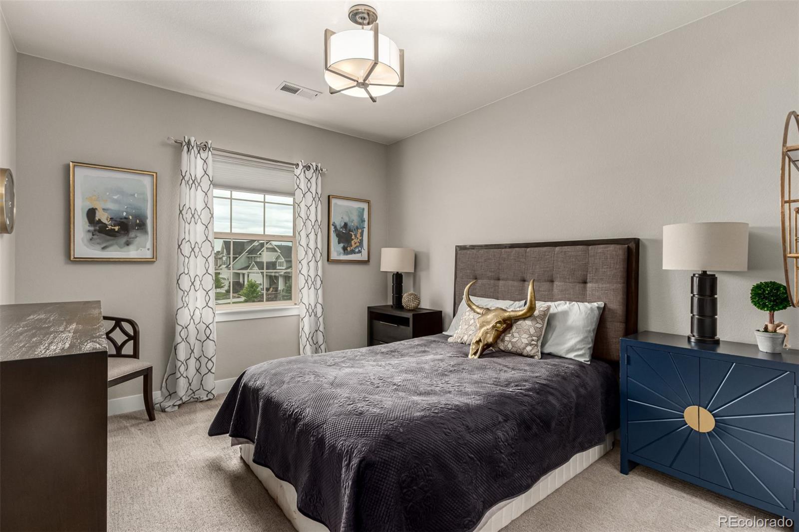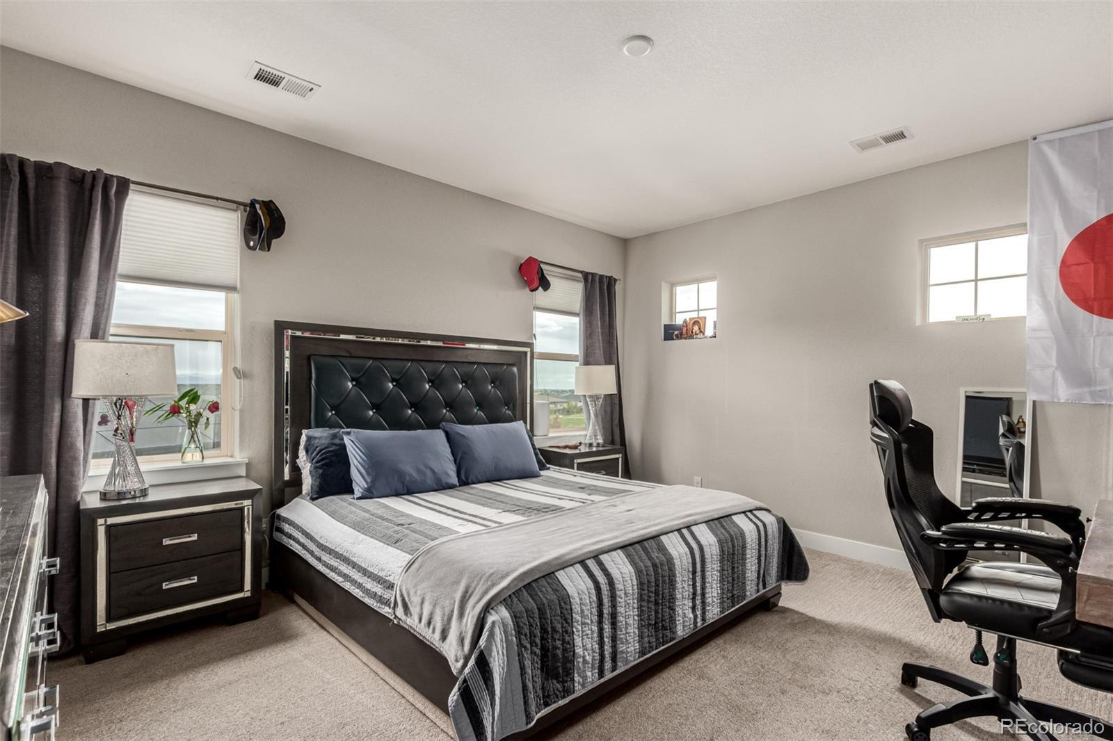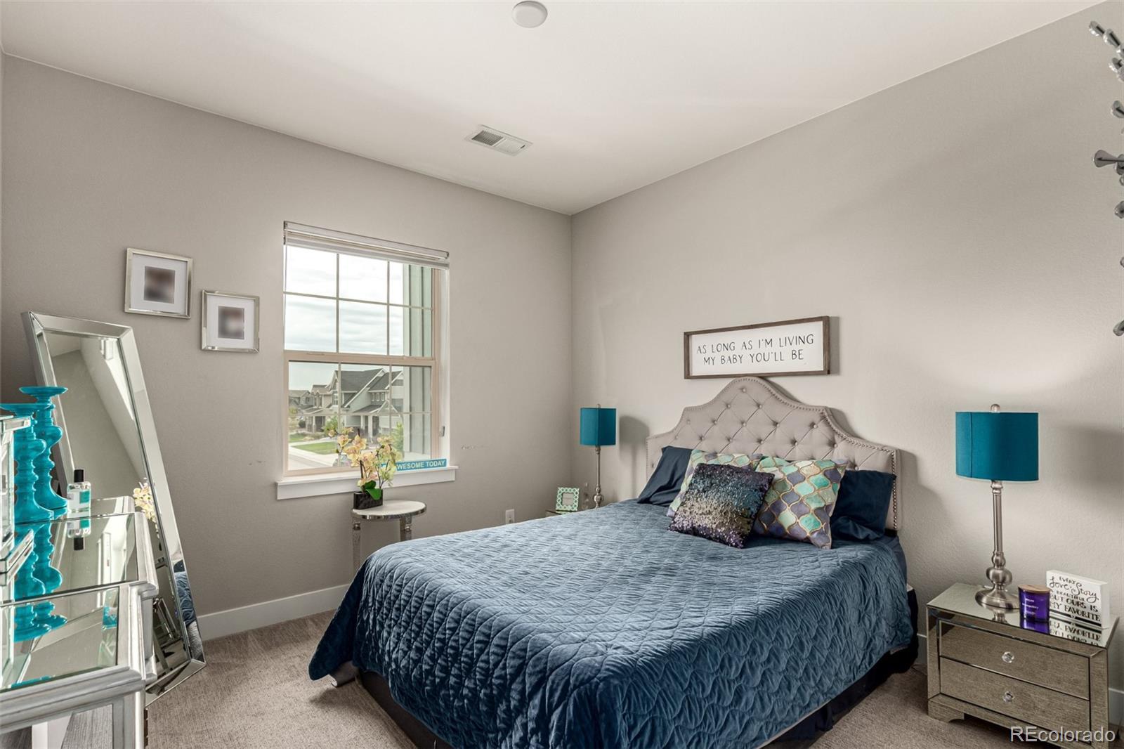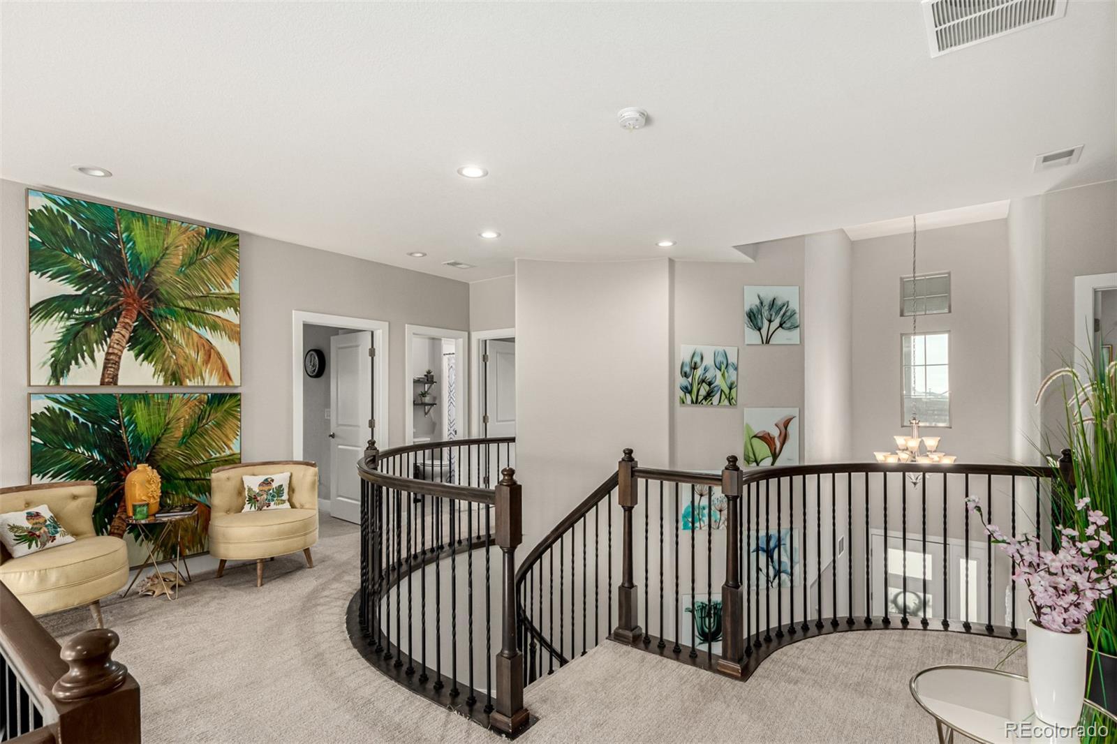 One of the few Thornton communities with a pool, gym, basketball court, parks, soccer field and more! This stunning Toll Brothers home is loaded with upgrades (over $100,000!) and comes with the unicorn feature everyone wants… a main-floor primary suite! Sitting on a large, park-facing lot just steps from the community pool, this home serves up prime location, beautiful curb appeal, and a huge backyard built for Colorado living-- complete with two outdoor patios, and dreamy professional landscaping. Walk inside to soaring vaulted ceilings and curved staircase, a bright front office, and a chic formal dining room with a butler’s pantry. The curved staircase makes a statement, but the real showstopper is the massive 30-ft sliding glass door that erases the line between indoors and outdoors. Hello, sunshine and indoor-outdoor flow! The kitchen? Absolute chef-core. Enjoy upgraded stainless appliances, a gas cooktop, double wall ovens, quartz counters, a walk-in pantry, custom cabinetry, and a center island perfect for breakfast, homework, or snack-tasting sessions. Need a quiet workspace or a creative hideaway? The main-level den has your back. Upstairs, the loft becomes your built-in cozy corner — ideal for reading, gaming, or sipping something warm while pretending you don’t have laundry to fold. Your main-floor primary suite feels like a private retreat with its spa-inspired bath featuring a soaking tub, double sinks, glass shower, walk-in closet, and luxe tile. Upstairs, every bedroom connects to a bathroom, making mornings smooth and drama-free. The huge basement unlocks endless possibilities: movie theater, game room, gym, hobby zone, guest quarters—whatever your life needs, this space can handle. This home also has solar, saving hundreds of dollars a month in electric bills! This home blends luxury, comfort, and function in all the right ways—come see why everyone loves living in this gorgeous Thornton community.