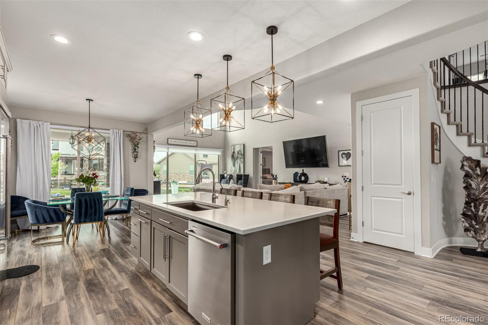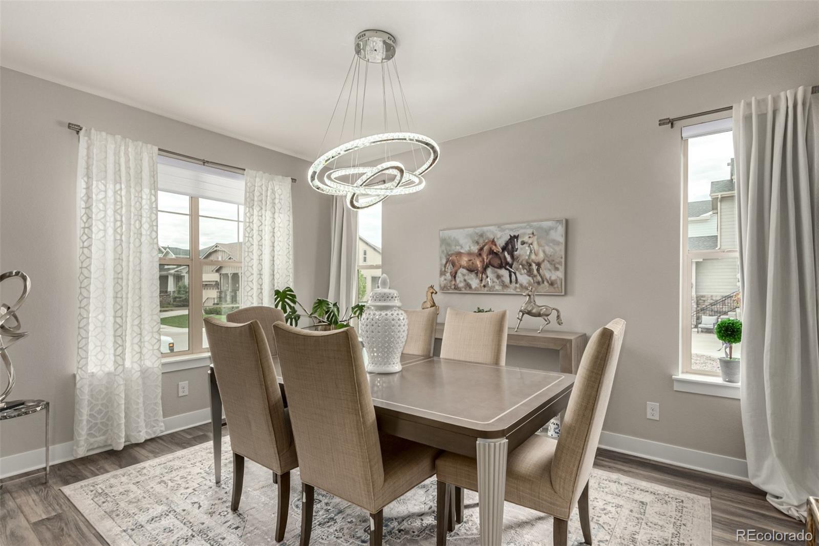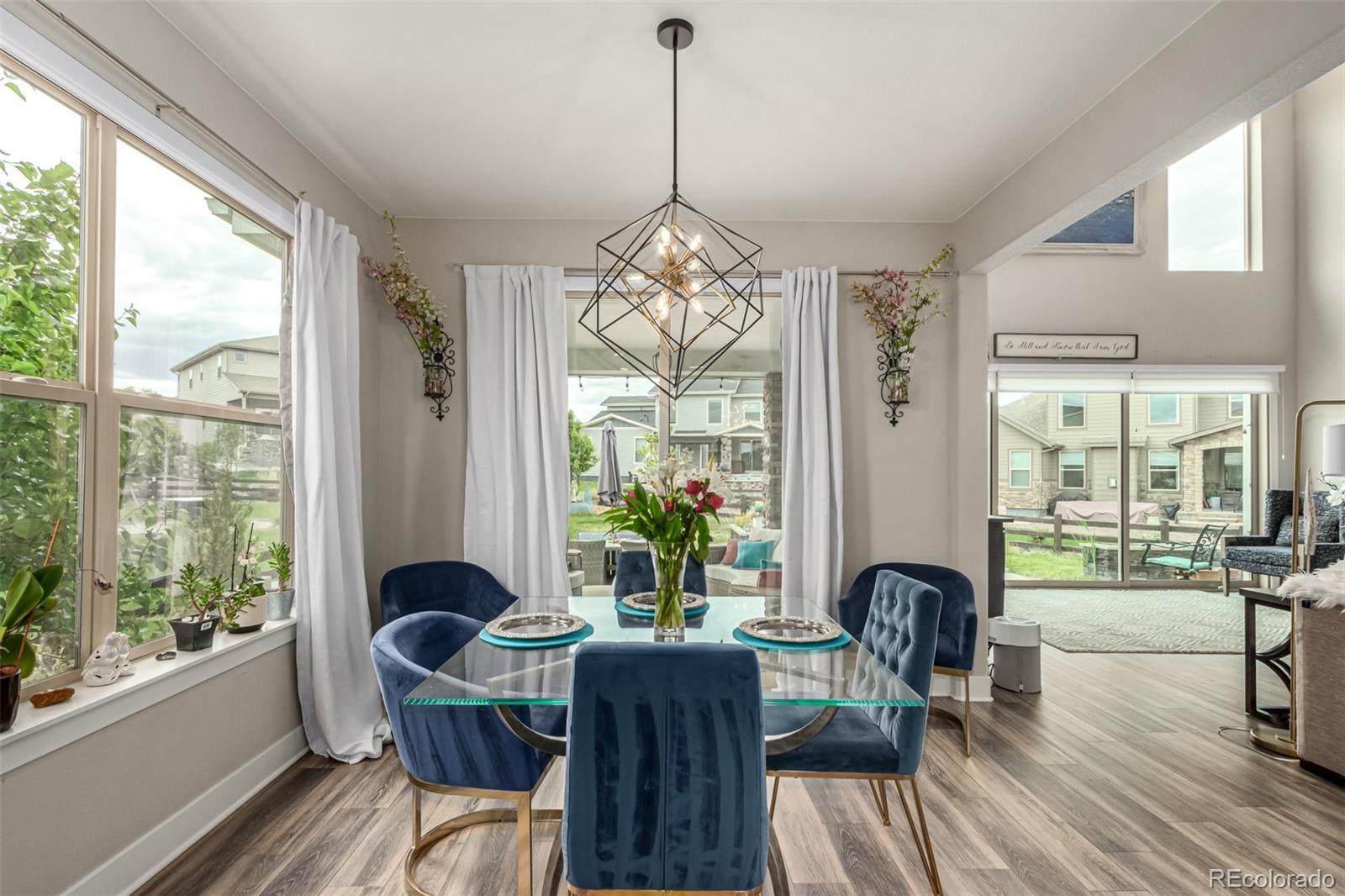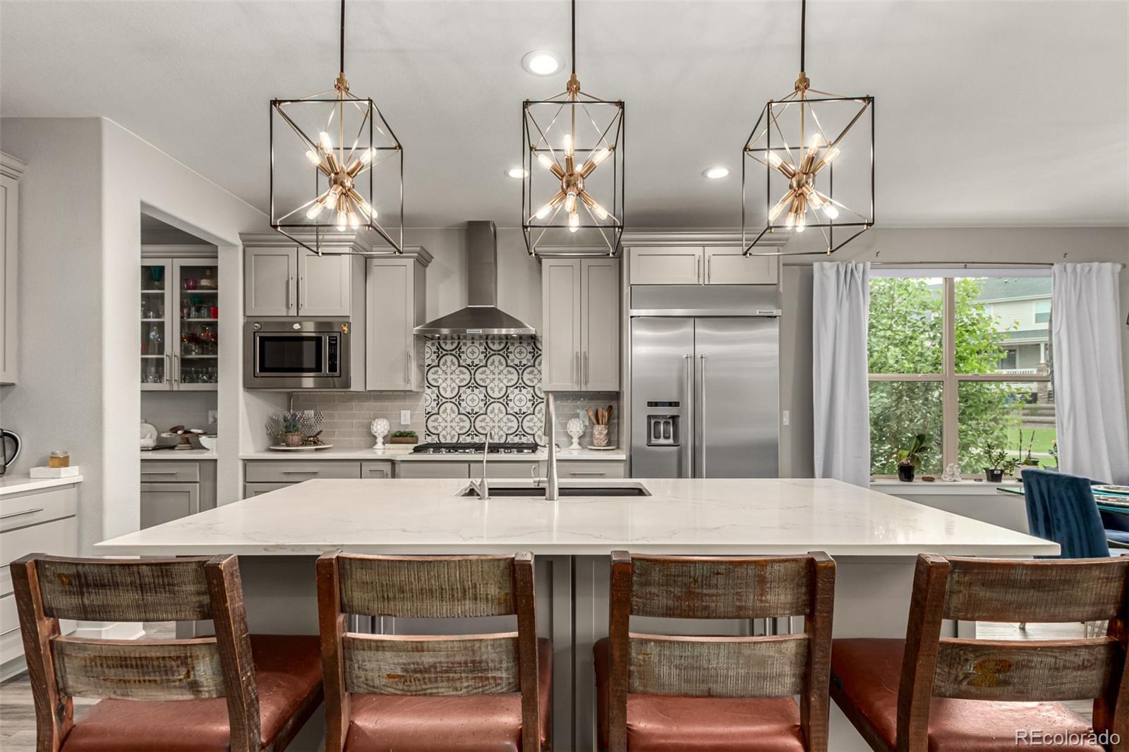 One of the few Thornton communities with a pool, gym, basketball court, parks, soccer field and more! This stunning Toll Brothers home is loaded with upgrades (over $100,000!) and comes with the unicorn feature everyone wants… a main-floor primary suite! Sitting on a large, park-facing lot just steps from the community pool, this home serves up prime location, beautiful curb appeal, and a huge backyard built for Colorado living-- complete with two outdoor patios, and dreamy professional landscaping. Walk inside to soaring vaulted ceilings and curved staircase, a bright front office, and a chic formal dining room with a butler’s pantry. The curved staircase makes a statement, but the real showstopper is the massive 30-ft sliding glass door that erases the line between indoors and outdoors. Hello, sunshine and indoor-outdoor flow! The kitchen? Absolute chef-core. Enjoy upgraded stainless appliances, a gas cooktop, double wall ovens, quartz counters, a walk-in pantry, custom cabinetry, and a center island perfect for breakfast, homework, or snack-tasting sessions. Need a quiet workspace or a creative hideaway? The main-level den has your back. Upstairs, the loft becomes your built-in cozy corner — ideal for reading, gaming, or sipping something warm while pretending you don’t have laundry to fold. Your main-floor primary suite feels like a private retreat with its spa-inspired bath featuring a soaking tub, double sinks, glass shower, walk-in closet, and luxe tile. Upstairs, every bedroom connects to a bathroom, making mornings smooth and drama-free. The huge basement unlocks endless possibilities: movie theater, game room, gym, hobby zone, guest quarters—whatever your life needs, this space can handle. This home also has solar, saving hundreds of dollars a month in electric bills! This home blends luxury, comfort, and function in all the right ways—come see why everyone loves living in this gorgeous Thornton community.