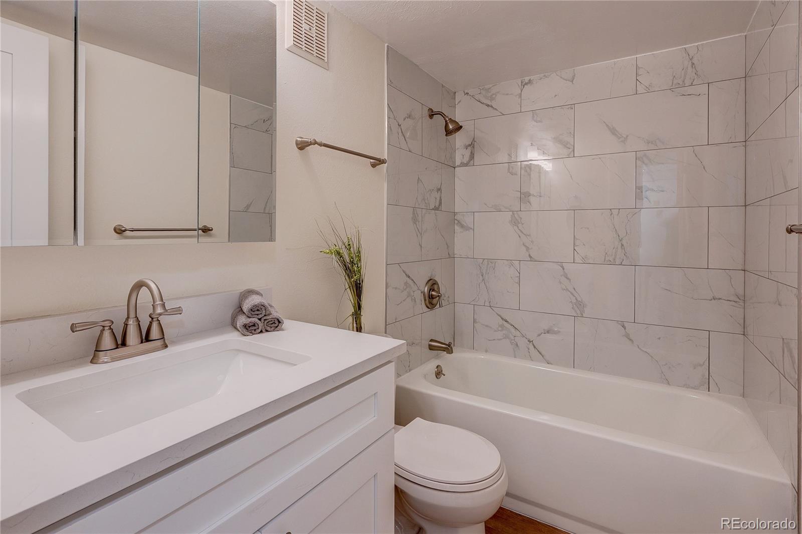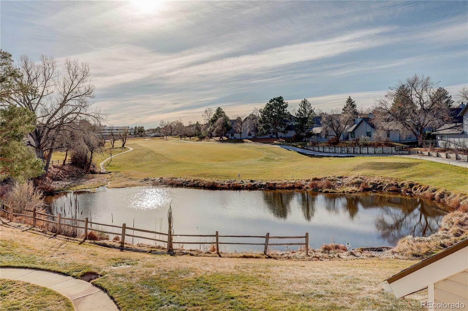 A Christmas gift you don't want to miss! Unwrap a home totally remodeled with a fantastic golf course location along the 11th tee box/fairway at Heather Ridge Golf Course. Strawberry II. From new windows and slider doors to quartz counter-tops, all new cabinets in a 100% remodeled kitchen and bathrooms and elsewhere. New AC and three-year old furnace and 1-year old water heater. All new upgraded kitchen appliances, new electric fireplace in existing wood burning fireplace; fresh new paint all walls-ceilings-closets and new doors and trim and handles; new natural wood laminate floors and staircase steps throughout. All the work done with a keen eye for style, quality, and long-term value. You won't have a thing to do except enjoy it! New storage closet in primary bedroom for extra space that others don't have. Primary bedroom it open and overlooks the main level fireplace living area. It also has a private walk-out balcony overlooking the golf course. All new tile fireplace with built-in TV cable outlet along with new adjacent all white cabinets and shelves. Staged so you don't have to image how great this home is for you. Enjoy the vista of looking southeast from your front patio at the rolling golf course and open space. There's also a pond but fishing not allowed (ha ha). The owner has spent over $65,000 doing it right for the lucky buyer of this unit. Located in Strawberry II of the Heather Ridge Metro District that owns and operates the public golf course and clubhouse with Noonan's restaurant...a great public watering hole! Join others for dinner, watching the games, or relaxing after a round of golf. Must be a 1031 Exchange at no buyer's expense. Close to many food stores, shopping, major roadways, Cherry Creek Reservoir Park. Cherry Creek Schools. Must be a 1031 Exchange.