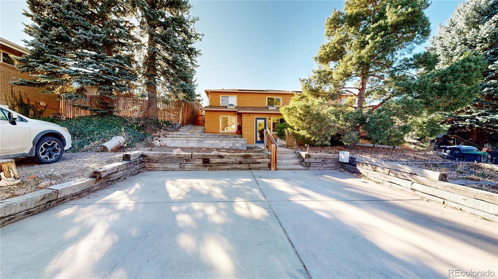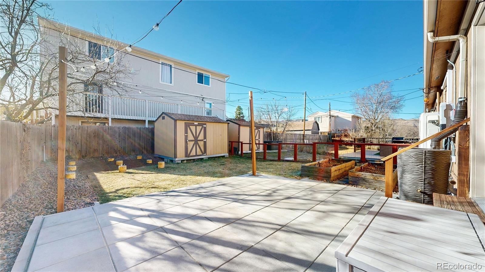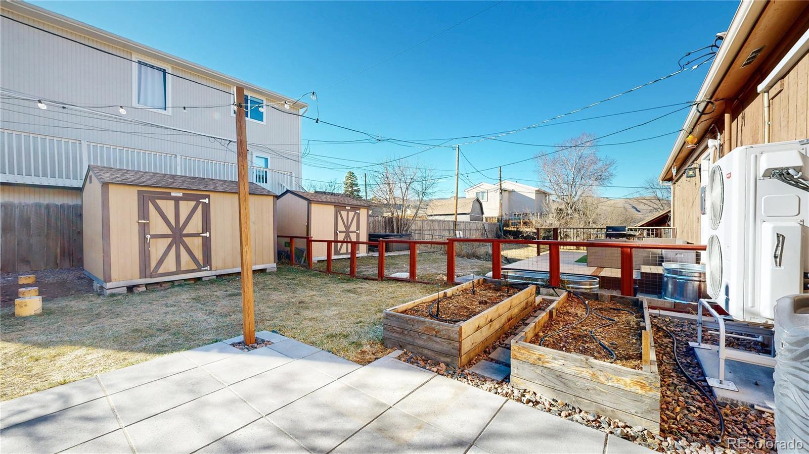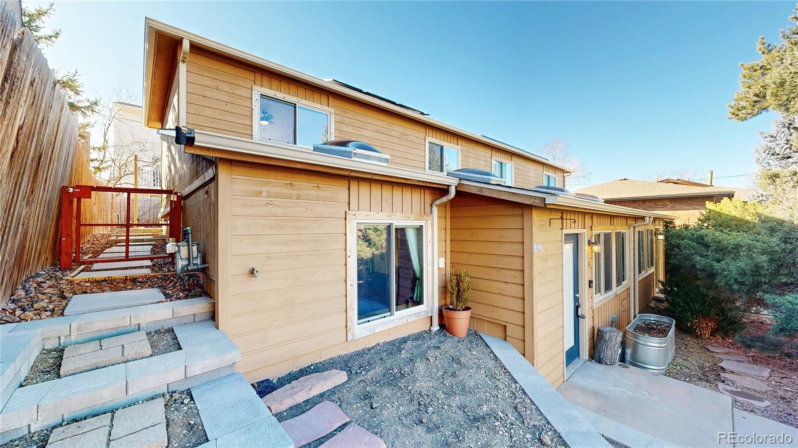 Low maintenance living meets prime location in Golden! Over $100,000 has been thoughtfully invested in this completely turnkey home over the last few years - including fully paid off $25,000 solar panels for ultra low utility bills. Sun filled interiors with vaulted ceilings and new laminate floors welcome you into a spacious open floor plan anchored by a completely renovated kitchen featuring pristine butcher block countertops, soft close cabinetry, a roll out pantry, and all new stainless steel appliances, including an induction cooktop with vented hood. The main level primary bedroom offers a walk in closet and direct access to a full bath. Upstairs, you’ll find two generously sized bedrooms and a recently remodeled full bathroom with a stylish fluted vanity. Step outside to a newly installed paver patio in the fully fenced backyard complete with raised garden beds, a storage shed, and views of the mountains surrounding downtown Golden, including the famous Golden "M"! Enjoy convenient trailhead access to South Table Mountain just steps away for hiking & mountain biking. Additional upgrades include mini split air conditioning in every room, a Navien tankless water heater, new doors and new double pane windows, fully remodeled upstairs bath, solar panels, front landscaping, skylights, plumbing updates, and a 2017 roof. Enjoy no HOA, two off-street parking spaces, and a Level 1 EV charger. A 14 month Blue Ribbon Home Warranty is included for additional ease of ownership. Conveniently located just minutes from downtown Golden, School of Mines, the restaurants and breweries on S Golden Road - all with easy access to the I70 mountain access corridor and Denver, this truly is as turnkey as it gets for easy and comfortable Golden living!