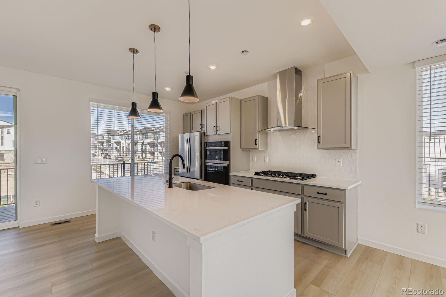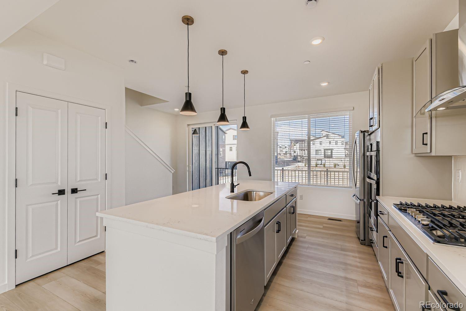 Welcome to 16598 Peak Street, Broomfield, CO—a modern 3-bedroom, 3.5-bath, 3-story townhome in the desirable Parkside West at Baseline community. This home is complete and ready for a quick move-in before the New Year. The spacious floorplan features one bedroom on the main level and two bedrooms on the third floor, including the primary suite. The open-concept living area boasts a Luxury kitchen with White Sand Quartz countertops, Shale cabinets with matte black hardware, stainless steel Whirlpool appliances, and a sleek Whirlpool hood vent. Enjoy Colorado living on the expansive rooftop deck, perfect for entertaining and taking in evening sunsets. Located in the growing Baseline master-planned community, you’ll love the close proximity to I-25 and the future Center Street District, breaking ground early next year with restaurants, shops, community spaces, and a Whole Foods Market—all within walking distance once complete. Dream Finders Homes is offering excellent financing incentives to help buyers lower monthly payments. Luxury finishes, a rooftop deck, a prime Broomfield location, and move-in-ready convenience—this home has it all. Stop by our sales office at 1760 W 166th Ave today and let’s bring your dream home to life.