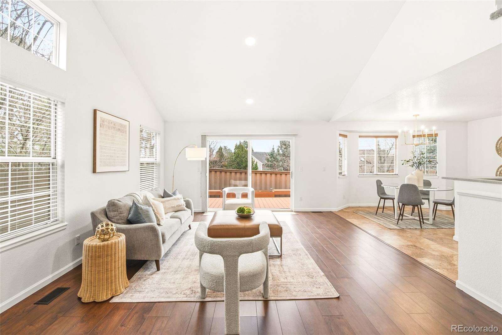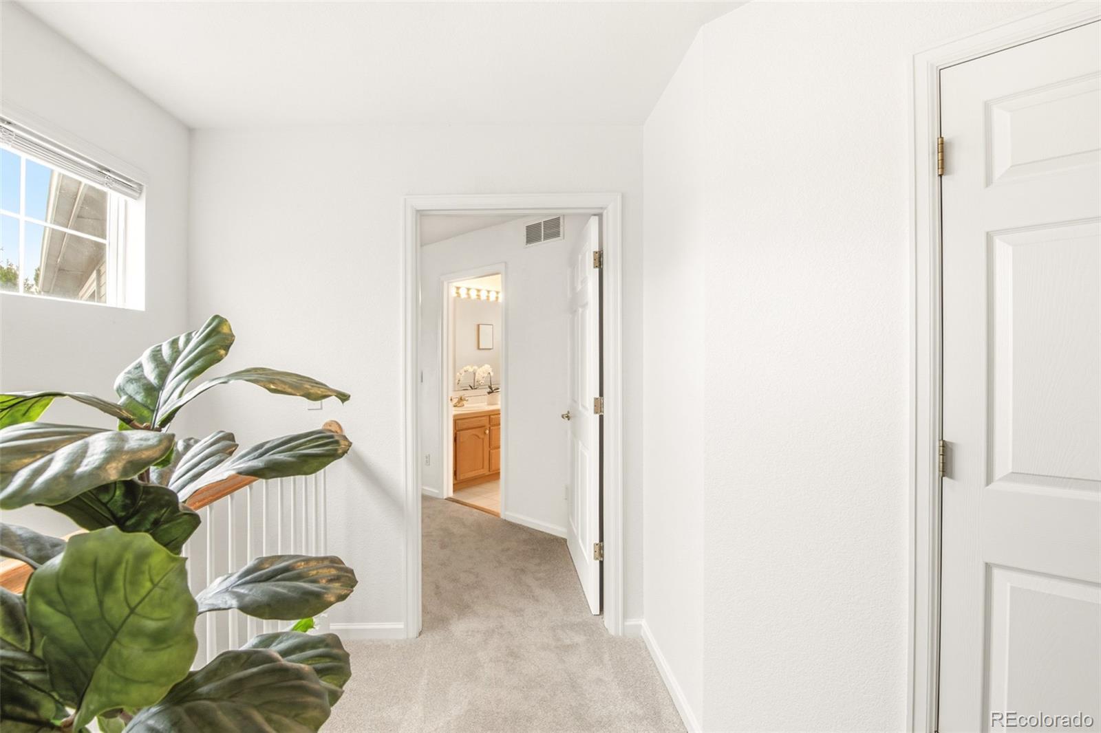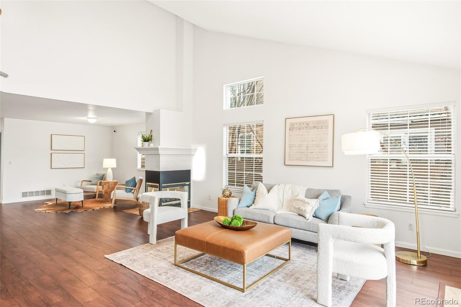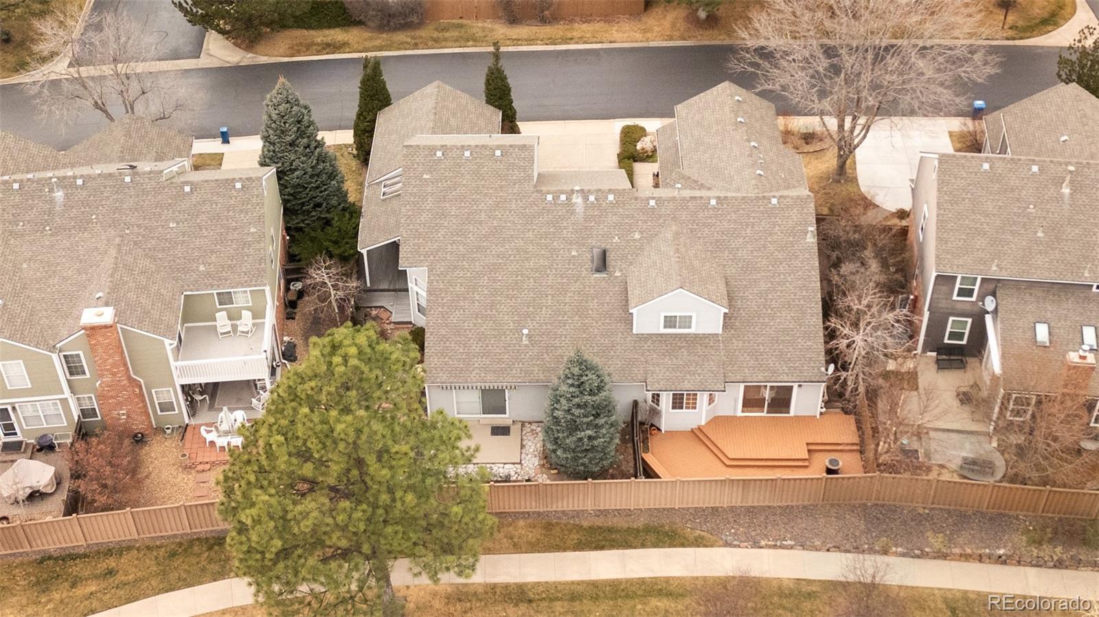 Welcome to this beautifully maintained residence in the highly desirable Hillcrest in Homestead Farms — a boutique enclave of only 123 homes. Thoughtful updates include fresh interior paint, new carpet and luxury vinyl in the main floor living space. The light-filled layout features a vaulted family room flowing into an adjacent living or dining space, separated by a cozy see-through fireplace—ideal for everyday living and entertaining. The eat-in kitchen offers generous cabinetry and opens to a newly refinished east-facing deck, perfect for morning coffee or dining al fresco. The main level includes a non-conforming bedroom (add a closet) or office, a nearby full bathroom, and a convenient laundry room. Multiple outdoor living areas create a unique lifestyle experience, including sunny lounging spaces with mature landscaping, a private outdoor firepit, a peaceful north garden retreat, and a covered front porch ideal for summer sunsets. Upstairs, a spacious open loft provides flexible living space. The large primary suite features a vaulted ceiling and a five-piece bath with jetted tub and walk-in closet. A secondary bedroom is served by a full hall bath. Additional highlights include a two-car attached garage and an unfinished basement with egress windows and rough-in plumbing, offering excellent storage or future expansion potential. A great turn-key property and lock-and-leave as the HOA covers front-yard maintenance, mowing, trimming, leaf raking, sidewalk snow removal — making this home low maintenance. Residents enjoy community amenities including a pool and greenbelts, plus top-rated Littleton schools. Ideally located near Willow Springs Open Space, Park Meadows, DTC, and endless hiking, biking, close to great golf courses, including South Suburban, Links, Lone Tree, Heritage Eagle Bend, and dining options — with easy access to the Rocky Mountains — this home embodies effortless luxury, everyday comfort, and a premier Colorado lifestyle.