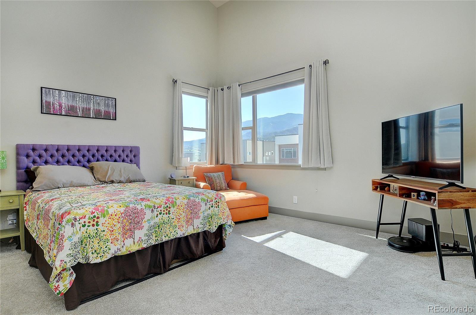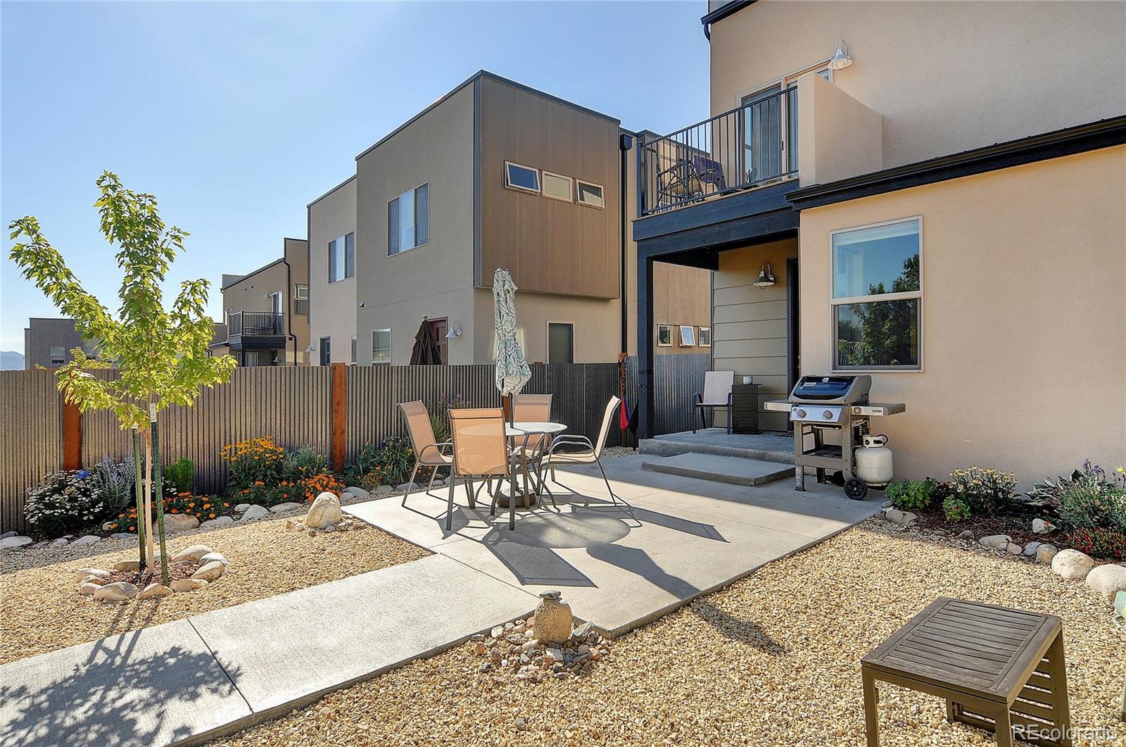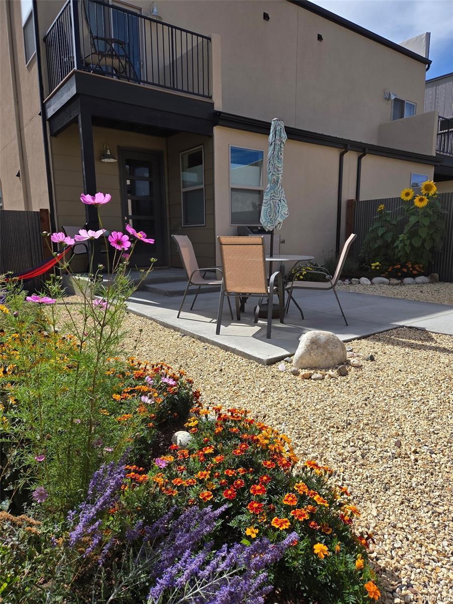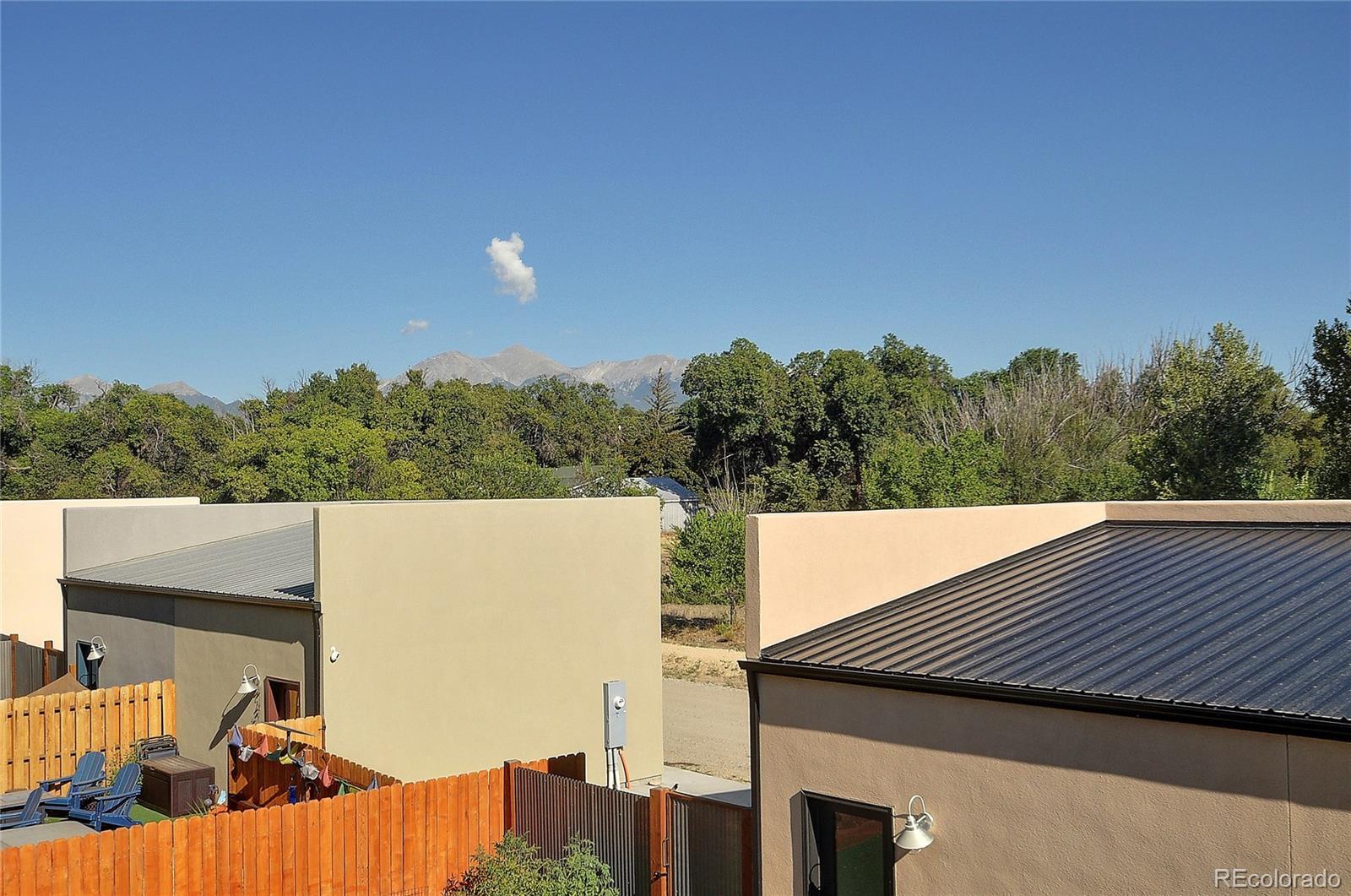 Furnished nearly new town home now available in Tailwind Village, Poncha Springs! This lovely home has had one owner and is not a rental -Just five miles west of Salida and 20 minutes from Monarch Mountain Ski Area, this town home is in an established neighborhood with beautiful park and playground. The unit offers a smart and open floor plan with mountain views to the south and north. One bedroom and 3/4 bath on the main level allows for flexibility. The open concept living and dining area is full of south-facing light and the airy kitchen has an abundance of cabinets and room for bar stool seating along the generous quartz counter. Upstairs you will find two en suite bedrooms, both offering premium blackout shades and ceiling fans. The primary bedroom features a soaring vaulted ceiling and walk-in closet. The second upstairs bedroom also offers a walk-in closet as well as a balcony to enjoy the views of Mt Shavano! Laundry is conveniently located upstairs by the two main bedrooms. The backyard is an oasis of beautifully established perennials on a drip system and a concrete patio for leisurely enjoyment. The garage allows for one car and there is an off-street parking place by the garage as well. The home is being sold furnished, if desired by buyer, and includes a radon mitigation system!