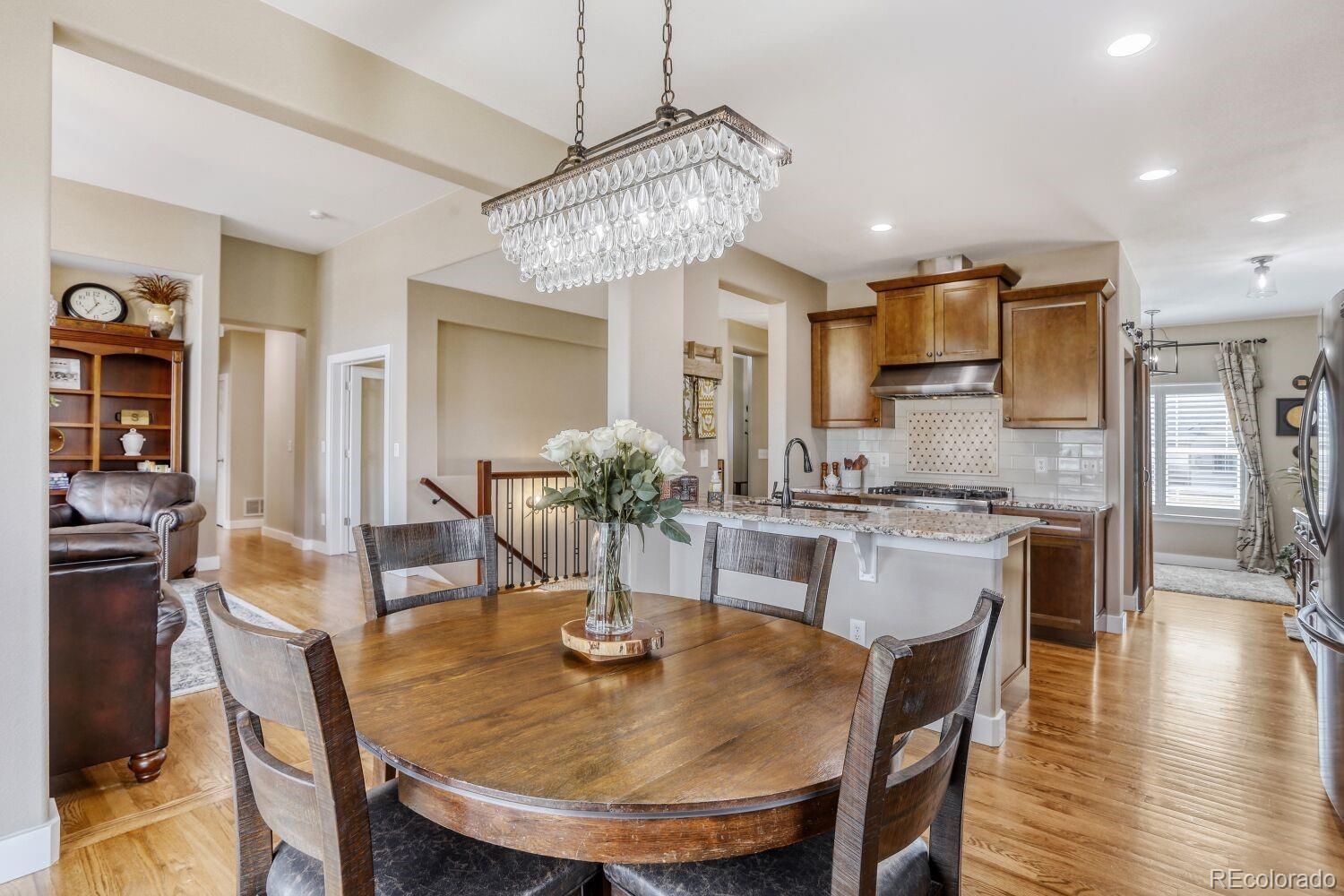 This home is designed for those who desire luxury living without compromising the space to pursue what they love. Welcome to 3545 Rinn Valley Drive, an exceptional 3,700+ sq ft corner-lot ranch nestled in the highly sought-after Rinn Valley Ranch neighborhood. Beautifully updated & meticulously maintained, this remarkable home redefines versatility, comfort, and craftsmanship. A rare & standout feature, the property offers unmatched heated & insulated garage capacity w/ an oversized 4 car attached garage, as well as a 2.5 detached garage. Ideal for car collectors, hobbyists, home-based businesses or anyone seeking the ultimate workshop retreat, this setup is truly one of a kind. Designed for effortless main-floor living, this garden-level ranch offers a spacious and private primary suite complete w/ a luxurious five-piece en suite bath featuring heated floors & a generous walk-in closet. The heart of the home is the thoughtfully updated kitchen, appointed w/ a gas stove, large island, granite countertops, walk-in pantry & a nearby space to retreat. The tastefully appointed great room is extentuiated w/ a gas fireplace —creating an ideal setting for both everyday living & entertaining. Filled w/ natural light, the dining area flows effortlessly to the expansive deck, overlooking the beautifully manicured, mature yard—perfect for enjoying Colorado’s indoor-outdoor lifestyle. Rounding out the main level is a dedicated spacious office & convenient laundry room. Every level of this home reflects pride of ownership. The finished garden-level basement offers 3 additional bedrooms, a spacious recreation room, an additional bonus room, a beautifully updated ¾ bath, and even a private sauna—providing flexible space for guests, family, or multi-generational living. Ideally located with easy access to I-25, 1 mile from the new HS, & roughly 30 min to Downtown Denver, Boulder & DIA. Don't miss your opportunity to have it ALL!!!