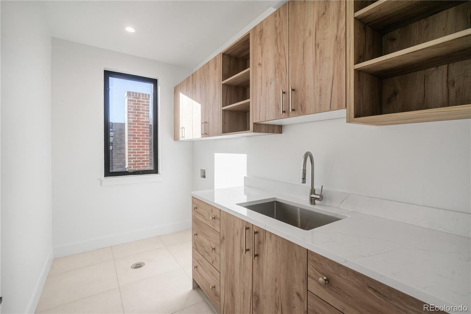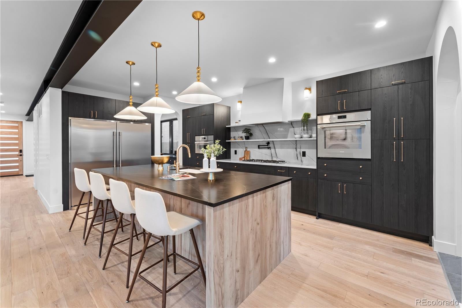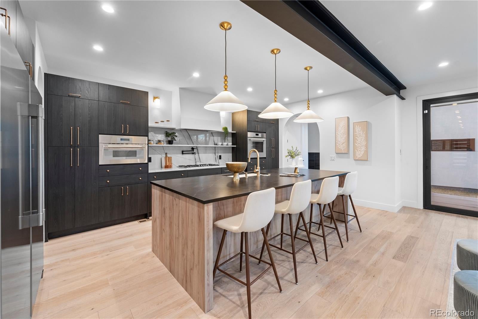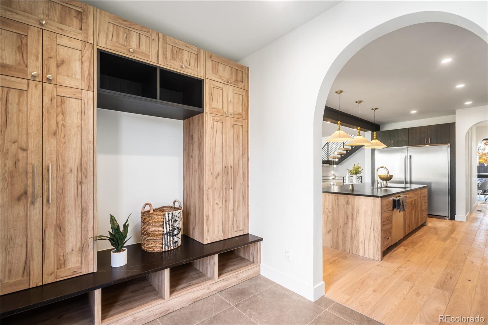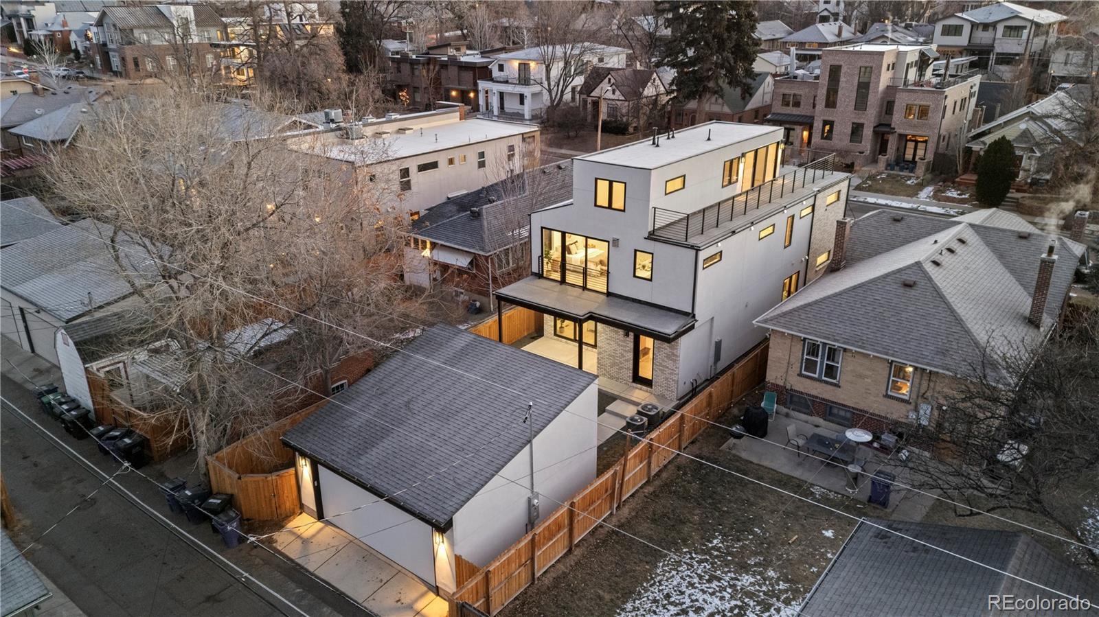 Welcome to this breathtaking 6bd/5ba single-family home located a block and a half away from Wash Park. Blending modern style with Scandinavian elegance, this offers 4,603 square feet of living space spread across four levels, plus a rooftop deck all connected by a custom metal spiral staircase. As you enter, the floor-to-ceiling Fibrex Anderson windows and Windor multi-slide patio doors bathe the engineered hardwood floor in natural light. The kitchen boasts stainless steel Thermador/Frigidaire appliances, custom floating slab shelves, custom American cabinetry, and 10’ island with extra storage. Surrounding you'll find a mudroom with a dog wash, a butler's pantry with unique arching details, and a large walk-in pantry. Upstairs, the primary suite features a cozy gas fireplace, his-and-hers closets, a bar nook, and a luxurious, Nordic-inspired bath with heated floors. The third floor offers a loft area with a wet bar and access to the expansive rooftop deck—perfect for entertaining, complete with engineering for a jacuzzi and plenty of space for guests to mingle. The finished basement has 10-foot ceilings, open space, and a large wet bar, ideal for hosting. The home features a solid brick exterior complemented by thermally modified, durable wood accents. Custom metal awnings and a unique metal wall incorporating a piece of the old railroad track from the under the street, thoughtfully embedded into the design, welcomes guests. Private backyard with large patio and abundant greenery creates a pleasant oasis. he insulated, drywalled 2-car garage includes an EV charger and room for additional overhead storage. 3-minute drive from Cherry Creek with easy access to I-25 and Downtown Denver. Every detail of this luxury custom home reflects exceptional craftsmanship, headed by a professional designer. Carrier AC, a tankless water heater. No HOA. PBG provides industry leading 2-year builder’s warranty and an 8-year structural warranty for added peace of mind.