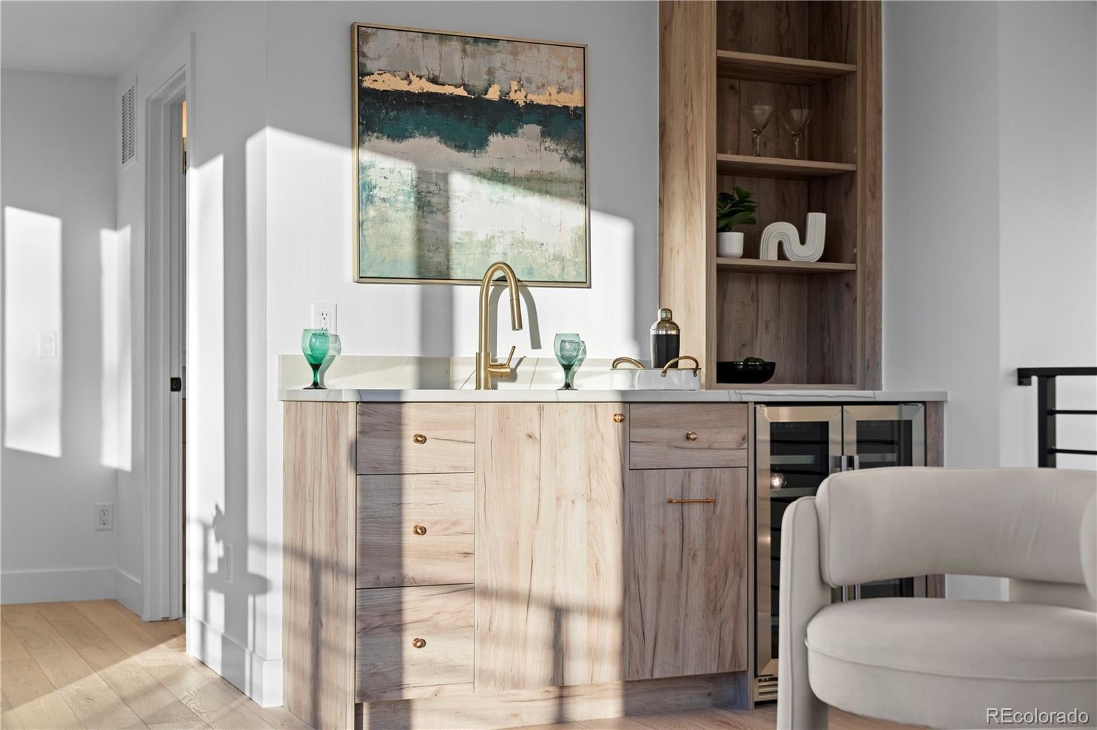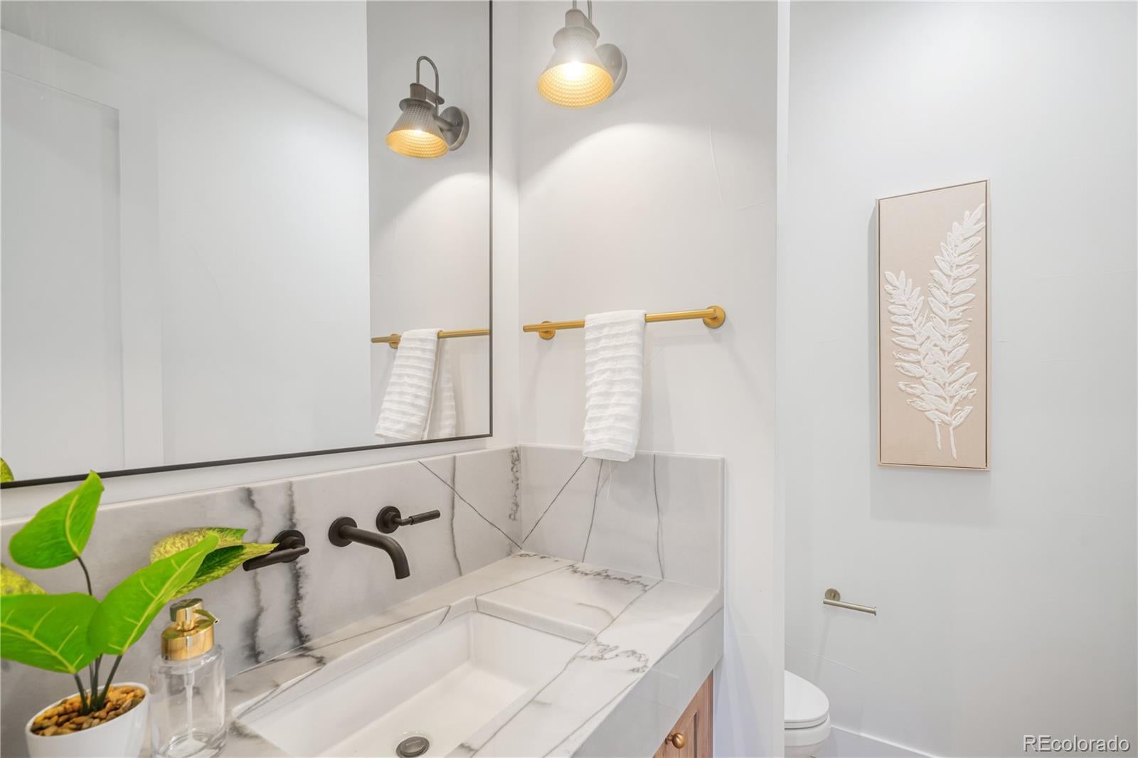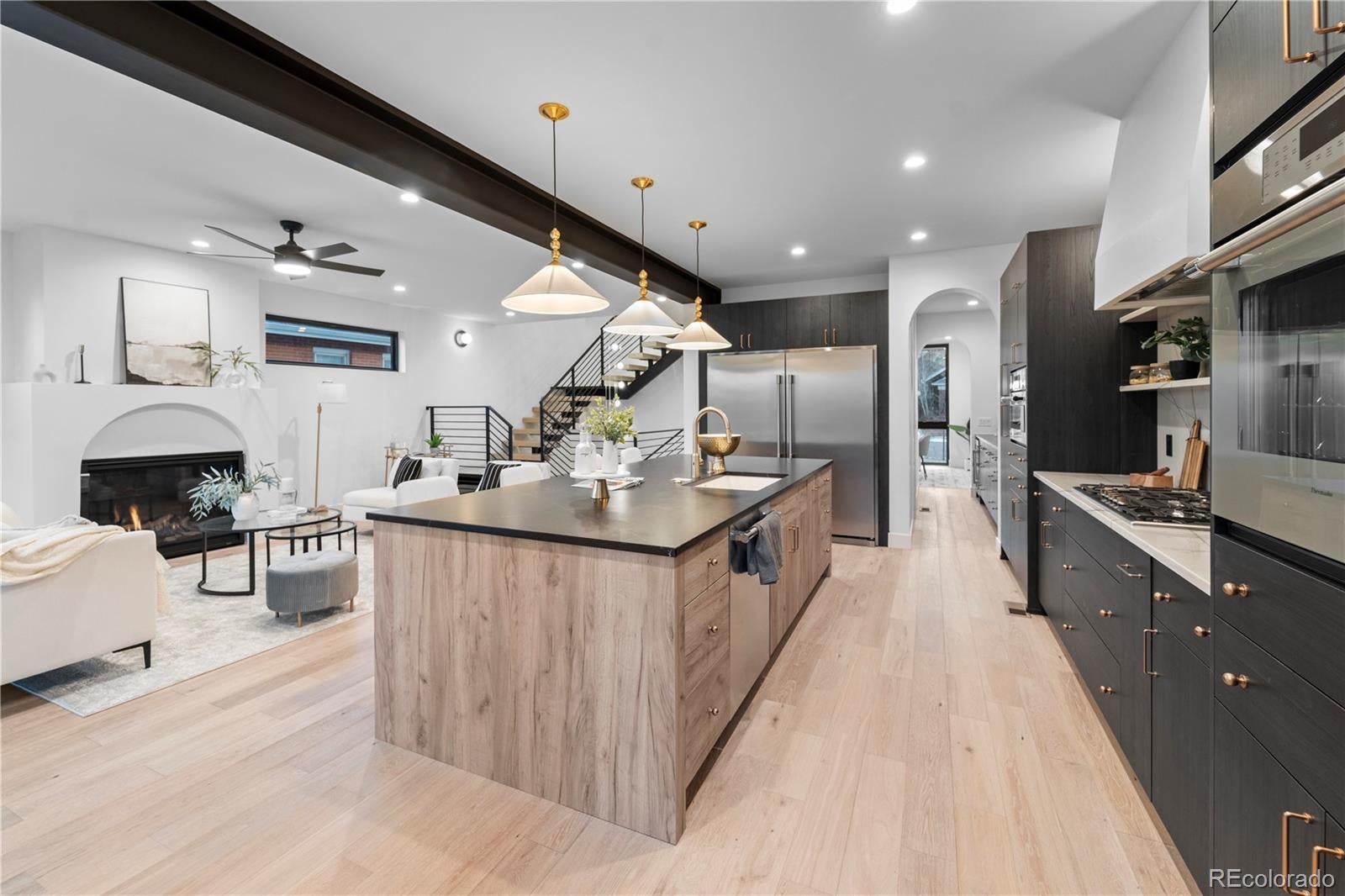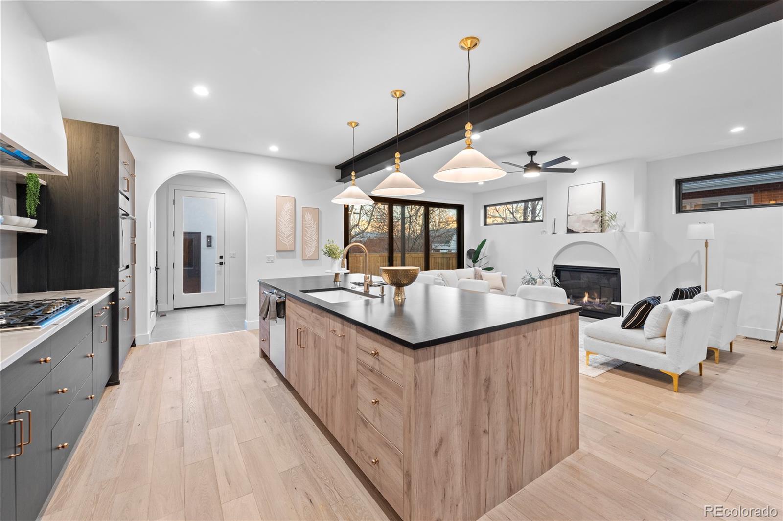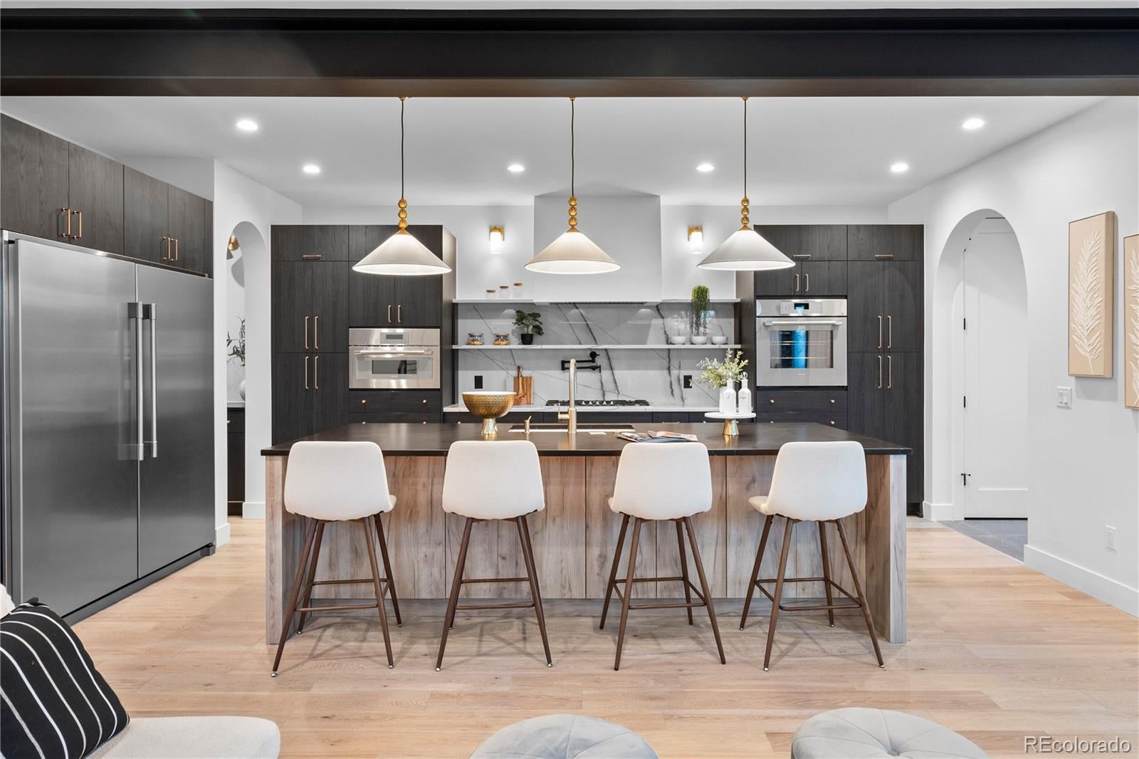 Welcome to this breathtaking 6bd/5ba single-family home located a block and a half away from Wash Park. Blending modern style with Scandinavian elegance, this offers 4,603 square feet of living space spread across four levels, plus a rooftop deck all connected by a custom metal spiral staircase. As you enter, the floor-to-ceiling Fibrex Anderson windows and Windor multi-slide patio doors bathe the engineered hardwood floor in natural light. The kitchen boasts stainless steel Thermador/Frigidaire appliances, custom floating slab shelves, custom American cabinetry, and 10’ island with extra storage. Surrounding you'll find a mudroom with a dog wash, a butler's pantry with unique arching details, and a large walk-in pantry. Upstairs, the primary suite features a cozy gas fireplace, his-and-hers closets, a bar nook, and a luxurious, Nordic-inspired bath with heated floors. The third floor offers a loft area with a wet bar and access to the expansive rooftop deck—perfect for entertaining, complete with engineering for a jacuzzi and plenty of space for guests to mingle. The finished basement has 10-foot ceilings, open space, and a large wet bar, ideal for hosting. The home features a solid brick exterior complemented by thermally modified, durable wood accents. Custom metal awnings and a unique metal wall incorporating a piece of the old railroad track from the under the street, thoughtfully embedded into the design, welcomes guests. Private backyard with large patio and abundant greenery creates a pleasant oasis. he insulated, drywalled 2-car garage includes an EV charger and room for additional overhead storage. 3-minute drive from Cherry Creek with easy access to I-25 and Downtown Denver. Every detail of this luxury custom home reflects exceptional craftsmanship, headed by a professional designer. Carrier AC, a tankless water heater. No HOA. PBG provides industry leading 2-year builder’s warranty and an 8-year structural warranty for added peace of mind.
