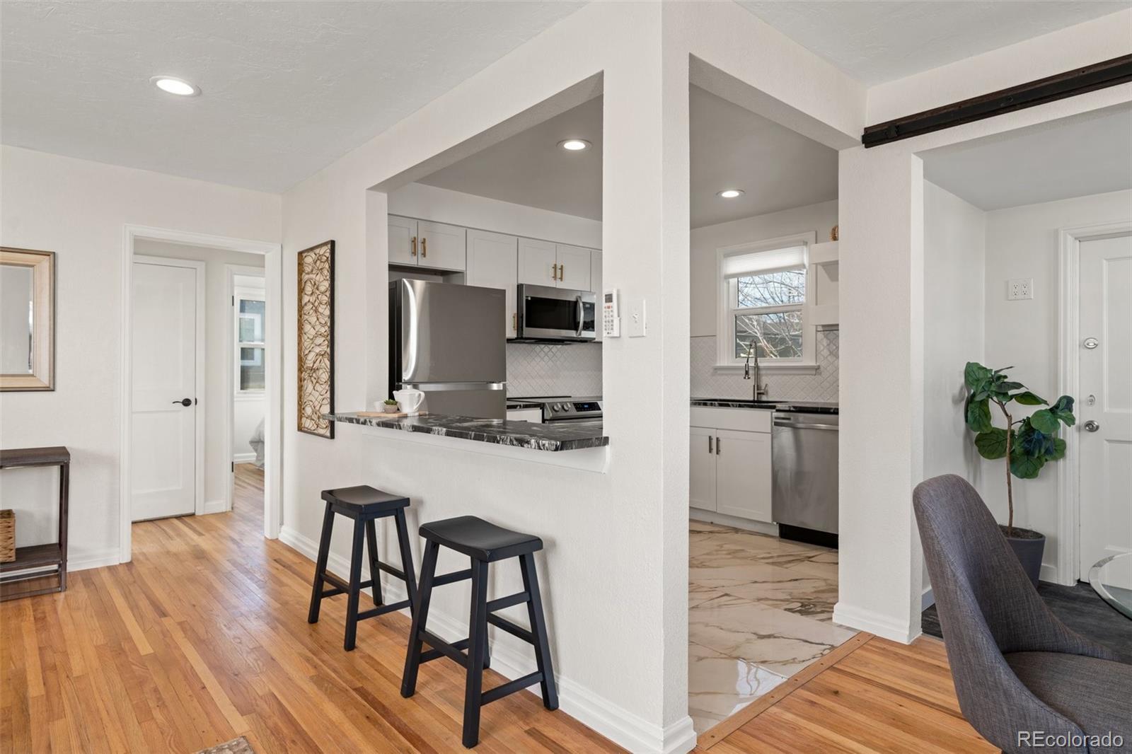 This property qualifies for a $5,000 Closing Cost Incentive offered by preferred lender as well as 100% financing with NO Mortgage Insurance. Contact Listing Agent for more information. Location, location, location! Do not miss this fully remodeled ranch style home with ATTACHED GARAGE, and a large private backyard located in the sought after Kensington neighborhood. Comes with newer front load LG Washer and Dryer!!! This GORGEOUS kitchen has been completely updated, with all new cabinets, open shelving, quartz counters, tile back splash, tile flooring, stainless steel appliances and the addition of a breakfast bar. The bathroom has new tile flooring, a new vanity and toilet, and new tub to ceiling subway tile. The hardwood flooring has been re-finished. Doors and hardware have all been replaced. Upgrades include a newer electric hot water heater, and remote control heat pump mini split system - which means you can control the temperature of each "zone" separately and quickly! Attached garage with alley access. Centrally located minutes from Downtown, Lowry, Cherry Creek, the Stanley Marketplace, & Rose Medical Center. Minutes away from grocery stores, pharmacy, Lucy Restaurant, El Tamarindo, QuinceEssential Coffee House, Ranch Hose Cafe, Knowledge Cafe, Pablo's Coffee House, Regal Bakery, Art Gym Cafe, U.S. Bank, Walgreens, King Soopers, and more. This is a must see!!