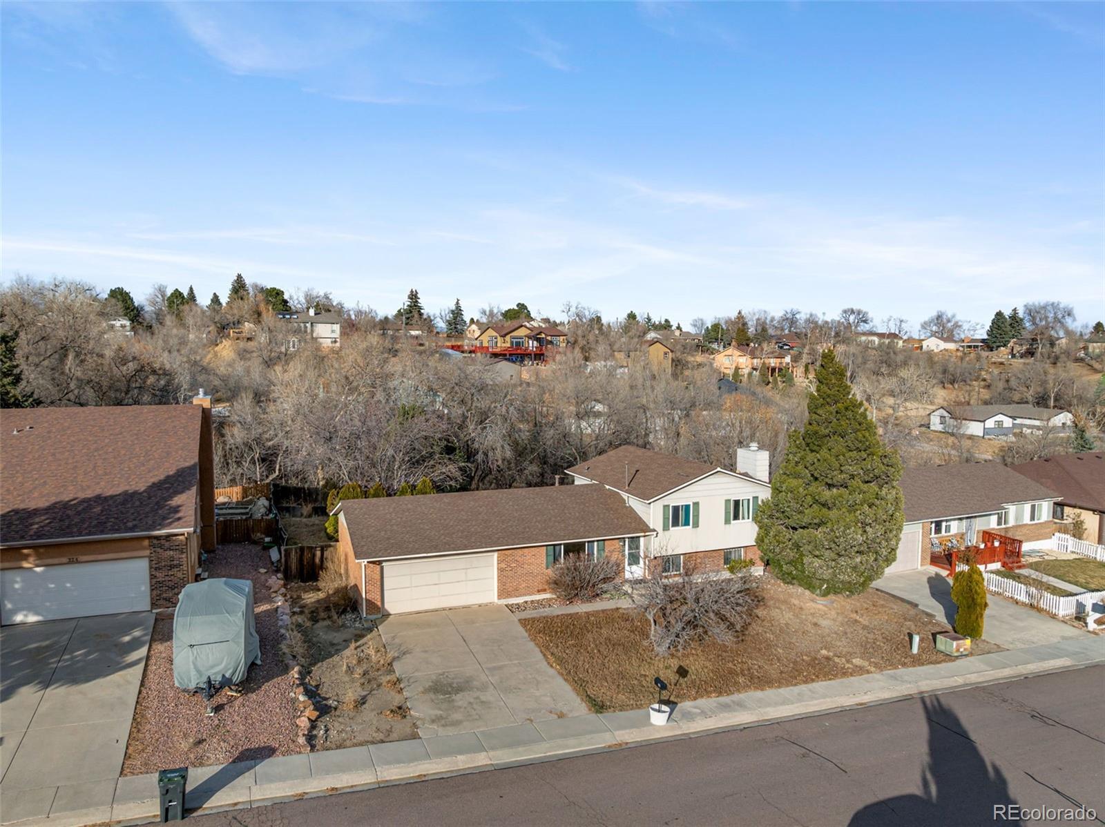 Welcome to this well-maintained home in beautiful Stratmoor Hills, perfectly positioned to capture stunning mountain views from the front and serene, wooded privacy in the backyard. Situated on a large, tree-filled lot, this property offers true Colorado living both inside and out. The bright and inviting main level features tile floors, granite tile countertops and maple kitchen cabinets in the kitchen, and upgraded carpet throughout. Natural light fills the space thanks to numerous windows, enhancing the warm and welcoming layout. Upstairs, you’ll find all three bedrooms along with two full bathrooms, offering convenience and separation from the main living areas. The spacious lower level provides exceptional versatility with a large secondary living area, cozy gas fireplace, 3/4 bath, and laundry space—perfect for guests, hobbies, or additional relaxation. With a newer furnace, well-preserved finishes, and a beautifully established neighborhood known for its tranquility and charm, this home is move-in ready and full of potential. Incredible location, close to Fort Carson, grocery stores, Target, restaurants, movie theater, the World Arena, and easy access to Academy and I25. Don’t miss your opportunity to own a lovely home in sought-after Stratmoor Hills!