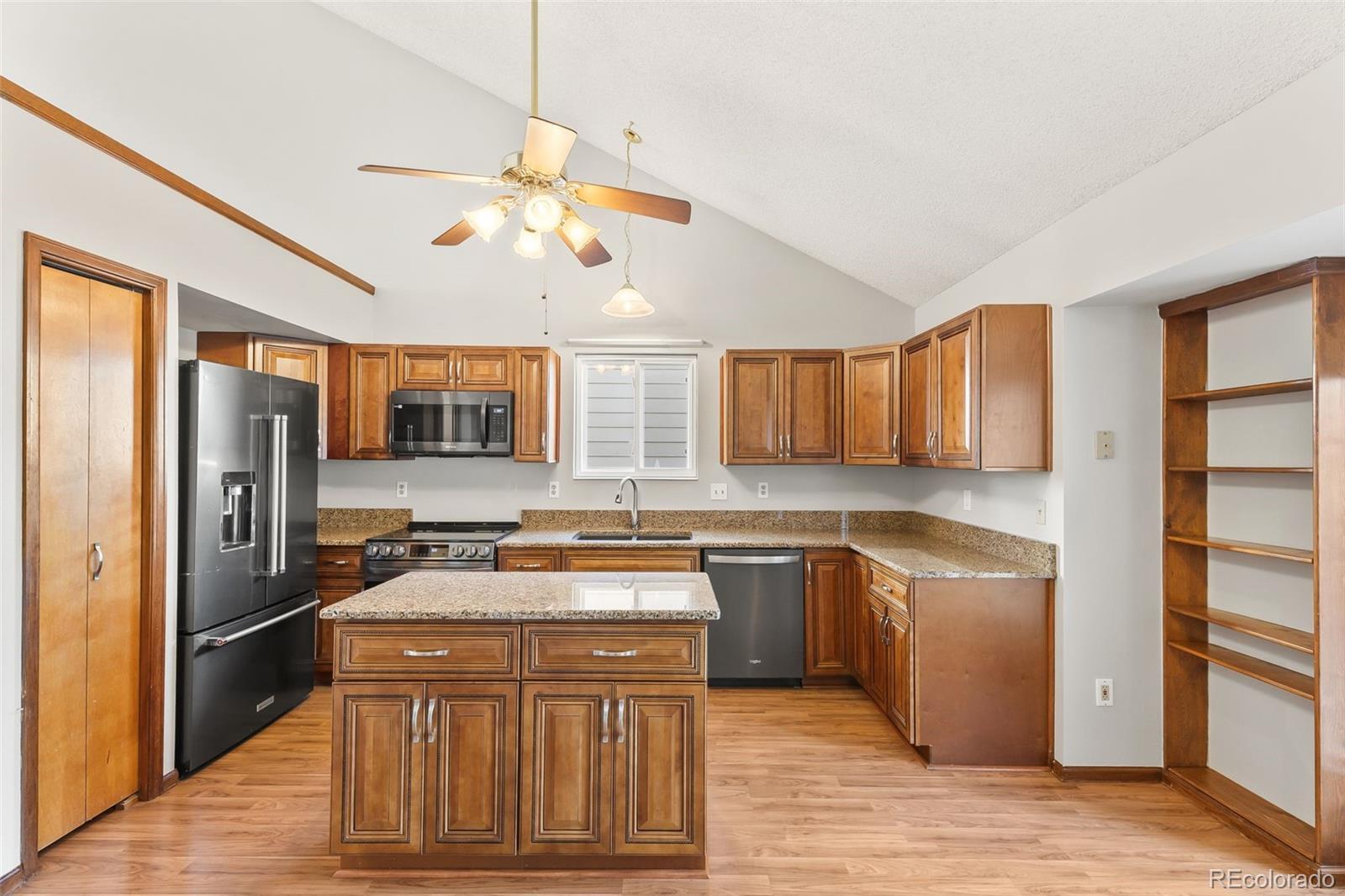Ceiling Fan(s), Eat-in Kitchen, Granite Counters, Kitchen Island, Open Floorplan, Pantry, Primary Suite, Smoke Free, Vaulted Ceiling(s), Walk-In Closet(s)