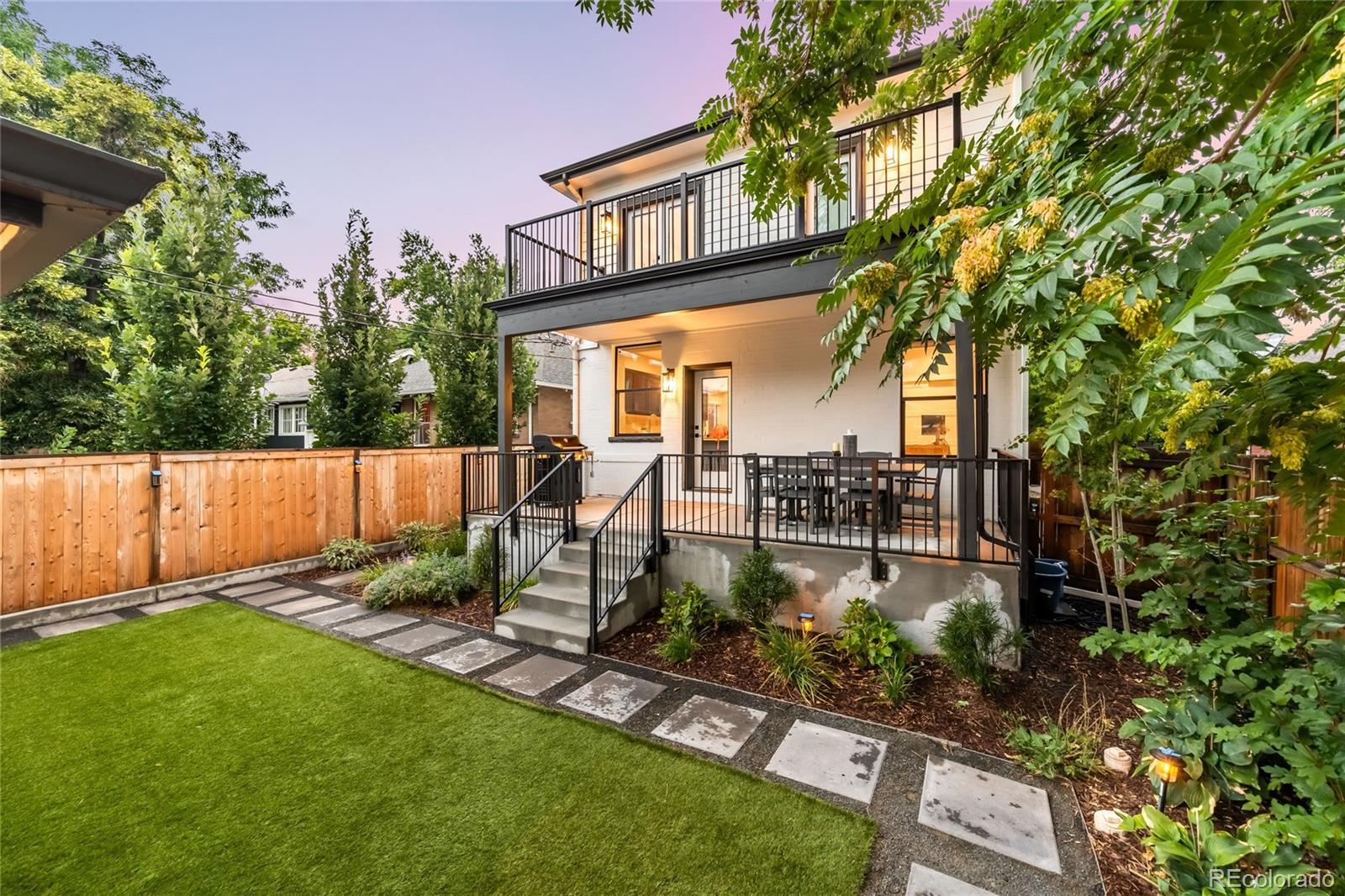 This pristine Congress Park masterpiece perfectly merges timeless charm and elegant modernity. Steeped in an enviable locale on a quiet block w/ easy access to Cherry Creek, City Park, Congress Park and 9+CO, this turnkey residence excites. Step onto a spacious front porch that lends a warm welcome into an open floorpan. Flooded with natural light and new windows, the living space has flawless livability with hardwood floors, luxury finishes and elevated design. This bright space joins together with a chef’s kitchen that features new shaker cabinets, SS appliances w/ gas range, quartz countertops w/ seating and a true pantry. Enjoy easy access from the kitchen and dining space to the flourishing covered patio, which is suitable for even the largest of gatherings. A sprawling back space is an entertainer's or gardener’s dream w/ additional lounge area, privacy fencing, outdoor TV, bistro lighting, mature trees and professional hardscape, plants and flowers. Back inside the home, retreat upstairs via the floating staircase to the primary suite that beckons peaceful rejuvenation with a welcoming balcony, custom frameless, walk-in shower, vast counter space and 2 custom walk-in closets that will comfortably fit the all-season wardrobes for two. The upper level features 2 additional bedrooms with custom closets, another chic bathroom and laundry. The lower level plays host to a large living space, a conforming bedroom, a full bathroom and storage closets. Relish in the convenience of all new systems, whole house blinds, new sewer line + roof, an abundance of privacy and an oversized 2-car garage. With access to all of your favorite parks, restaurants, bars, shops and renowned Teller Elementary school seconds away, this residence is an opportunity not to be missed.