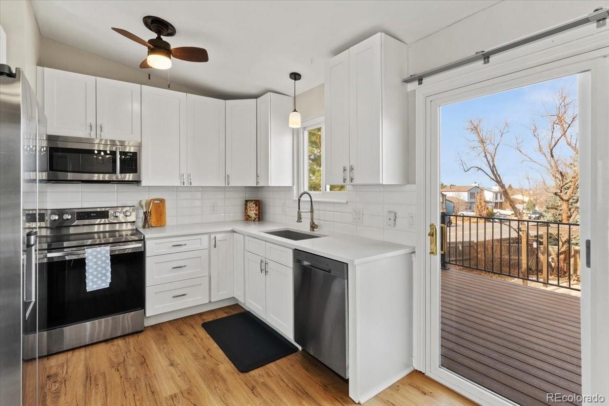Beautifully updated bi-level in Summer Valley! This 4-bedroom, 2-bath home features a modern kitchen, new flooring, fresh paint, and new carpet in the bedrooms. The roof was replaced just 2 years ago, and the xeriscaped front yard means easy maintenance. The backyard is designed for entertaining, with a brand new deck, dedicated fire pit, separate dining and grilling areas, sun-shade sail posts for comfort, and a handy shed for storage. Enjoy walking distance to Cherry Creek schools, with Summit Elementary just a quick stroll down the neighborhood path. Outdoor lovers will appreciate easy access to the Toll Gate bike path, Quincy Reservoir, and the local dog park. Large windows fill the home with natural light, creating a warm and inviting atmosphere throughout. This move-in ready home offers comfort, convenience, and a wonderful community!